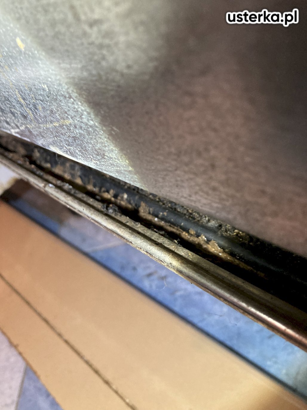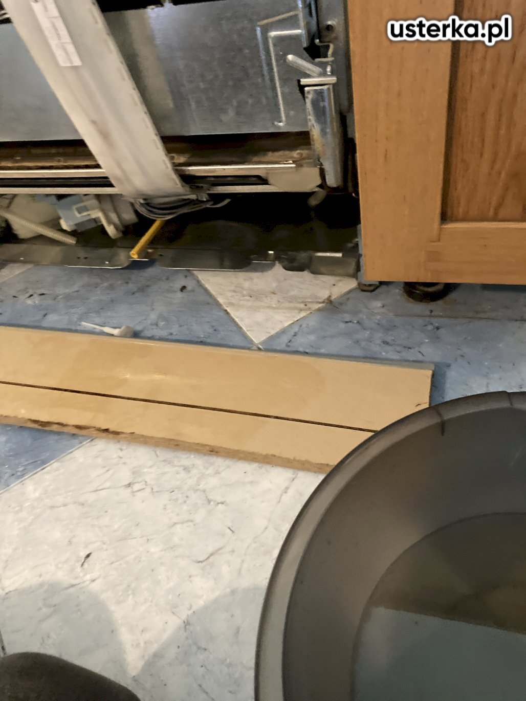 Położono silikon między blatem kuchennym a ścianą, przyklejono listwę podłogową oraz naprawiono mechanizm narożnika.