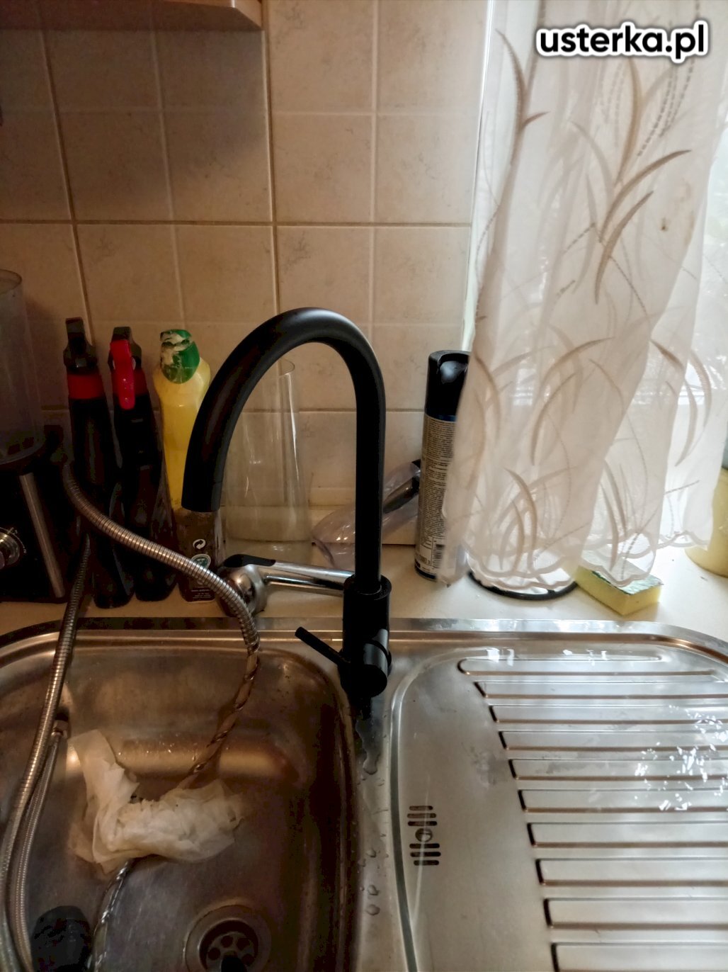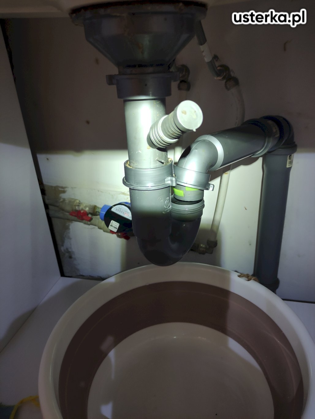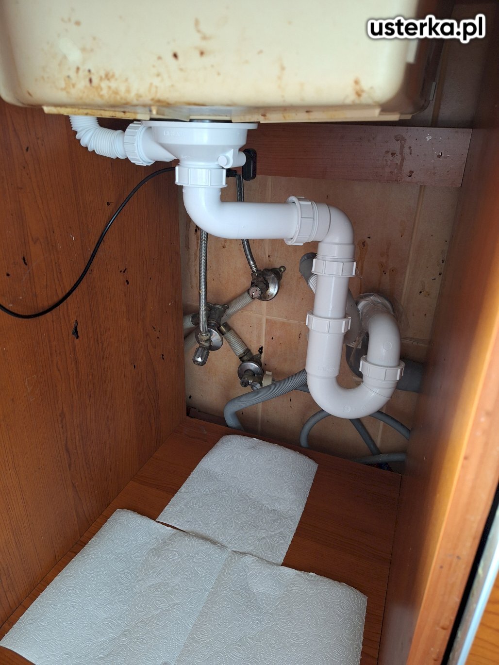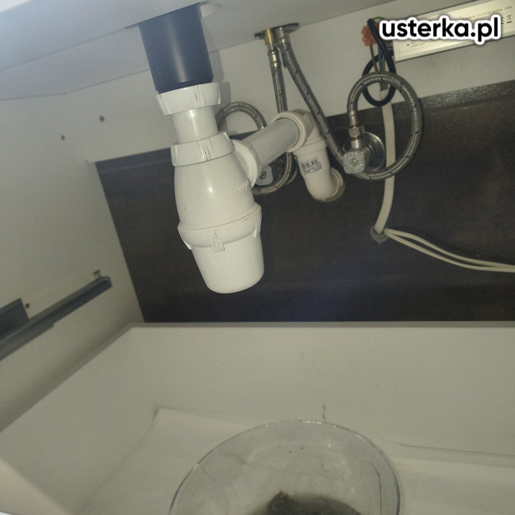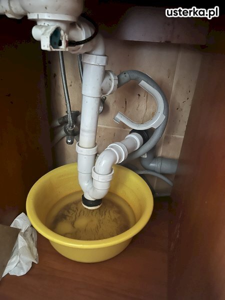Pod zlewem w kuchni występował wyciek z kolanka. Po wymianie uszczelki nieszczelność została usunięta.