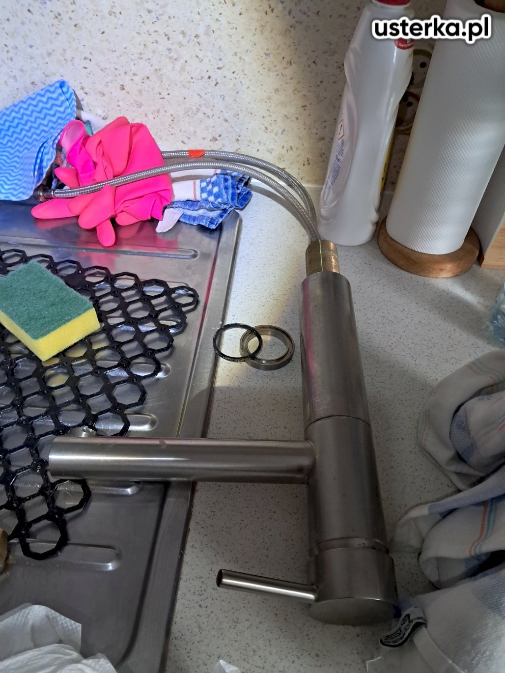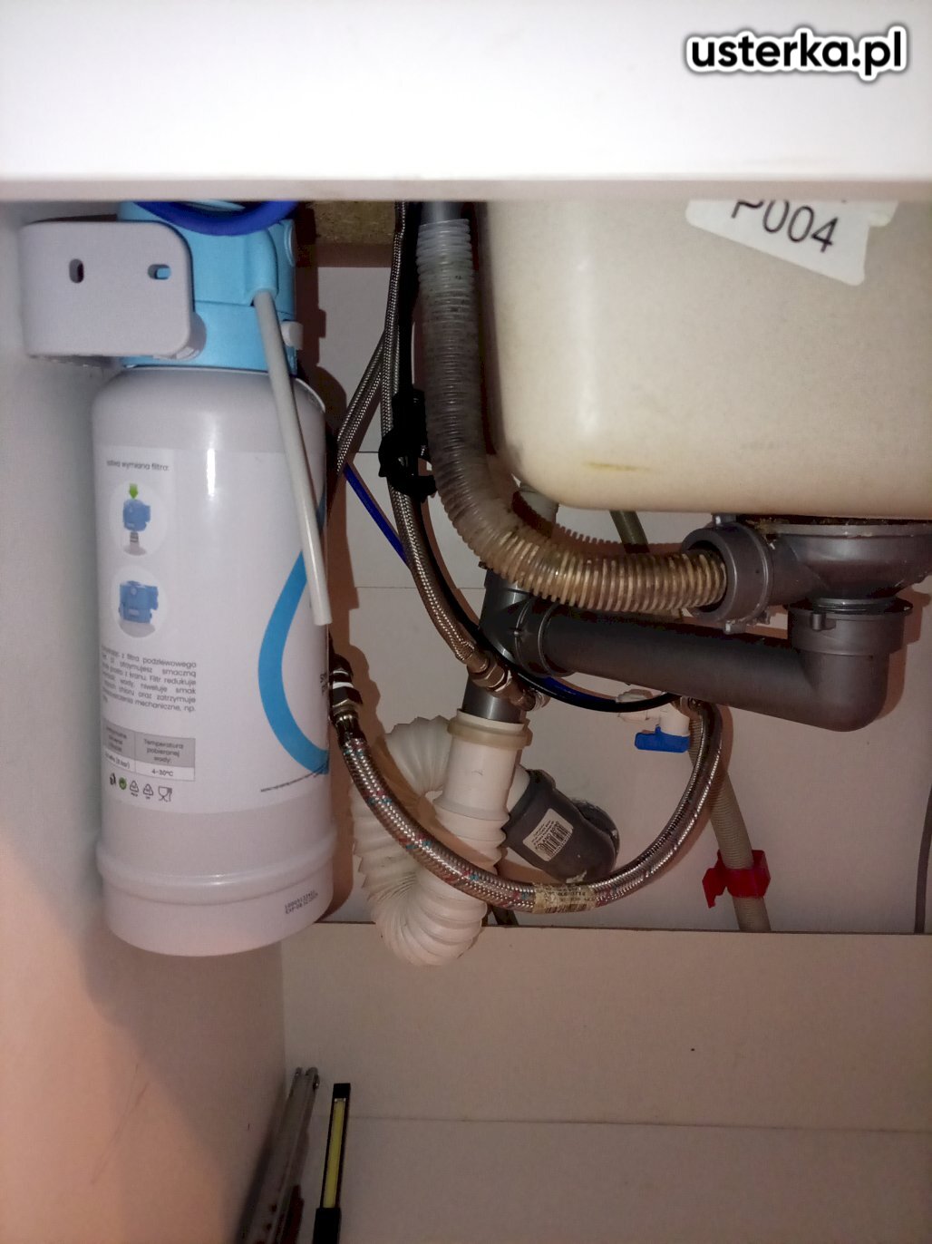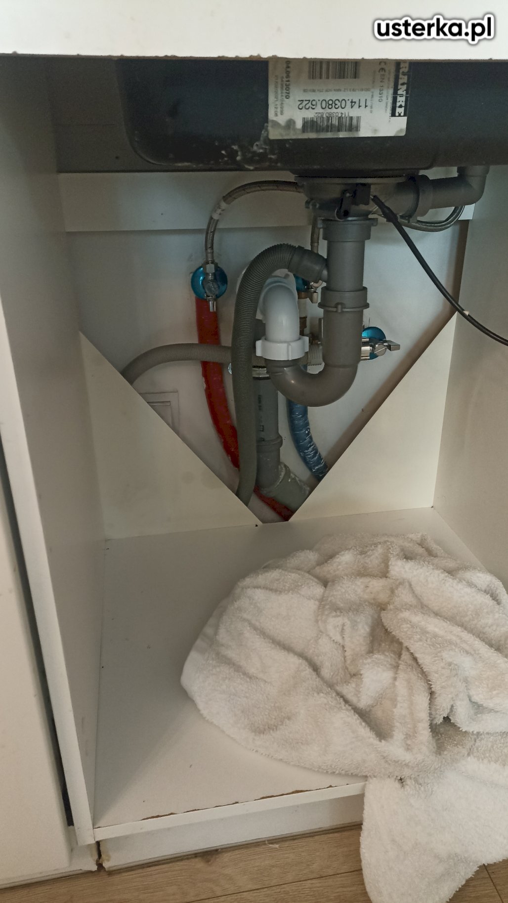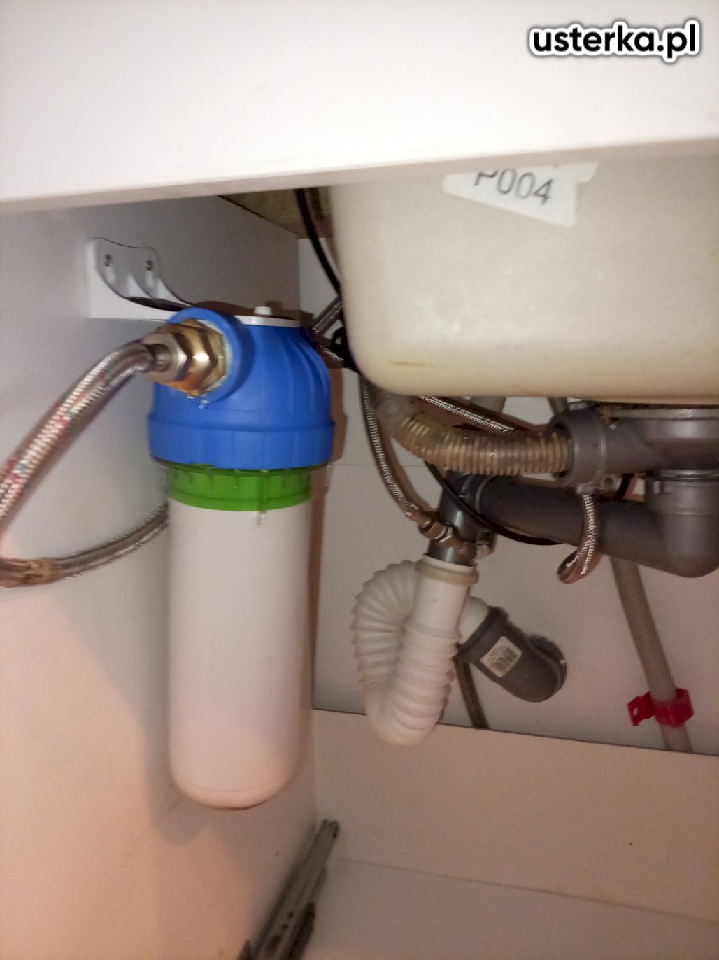 Pod zlewem w kuchni występował wyciek z kolanka. Po wymianie uszczelki nieszczelność została usunięta.