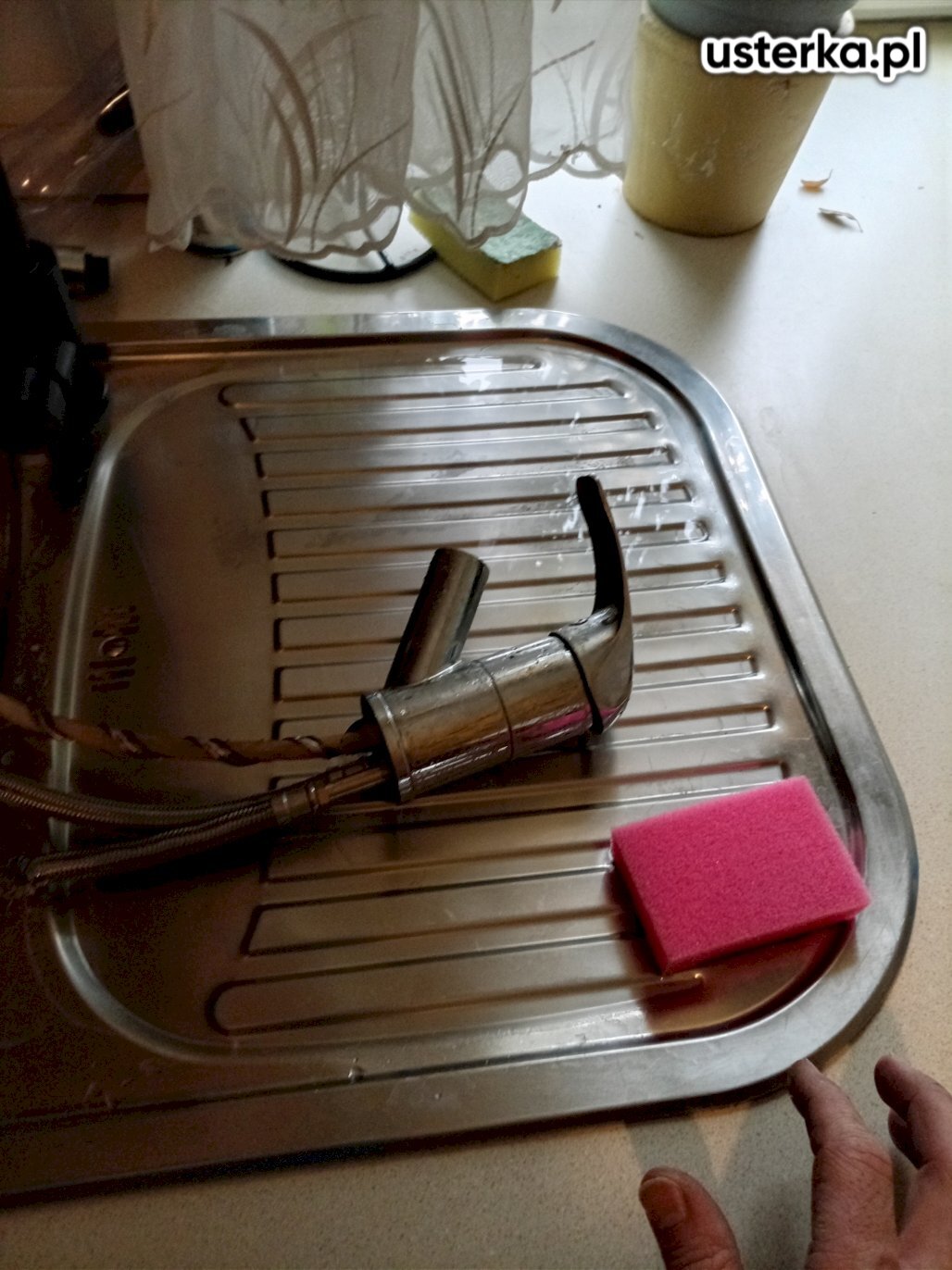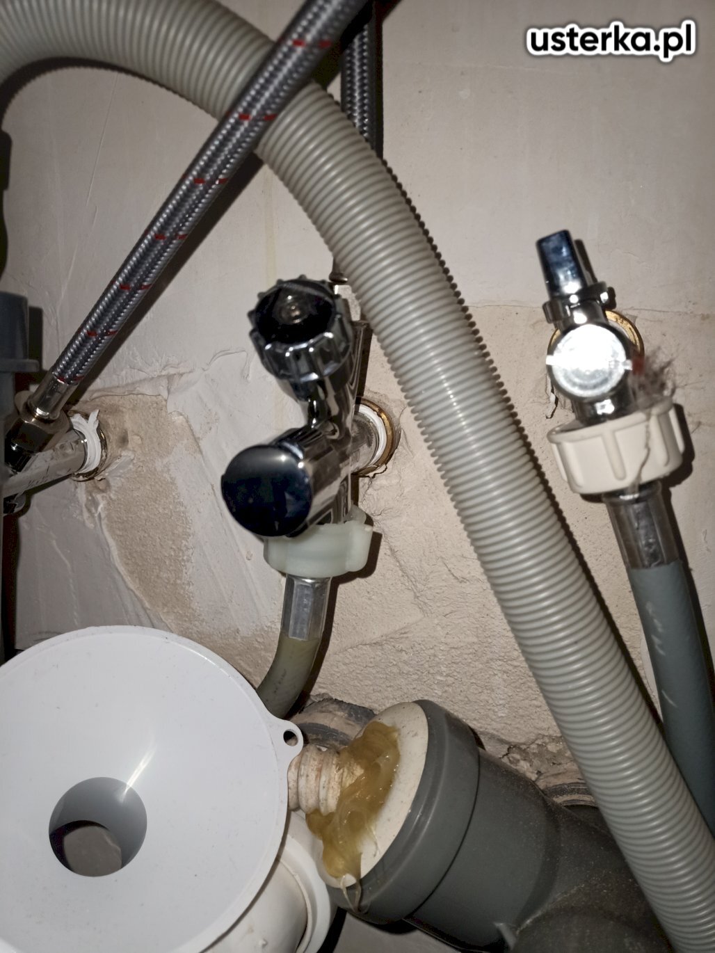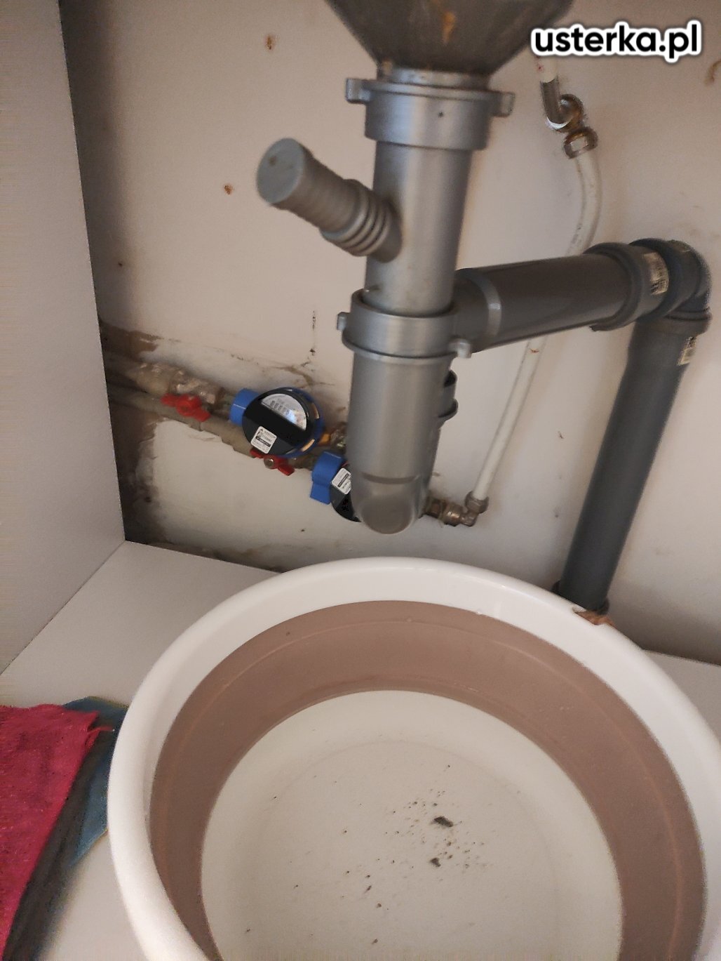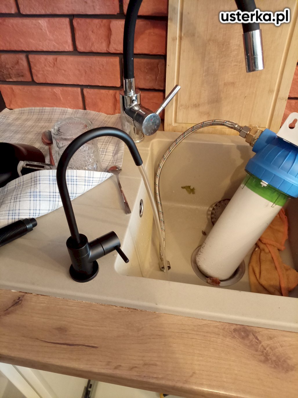 Pod zlewem w kuchni występował wyciek z kolanka. Po wymianie uszczelki nieszczelność została usunięta.