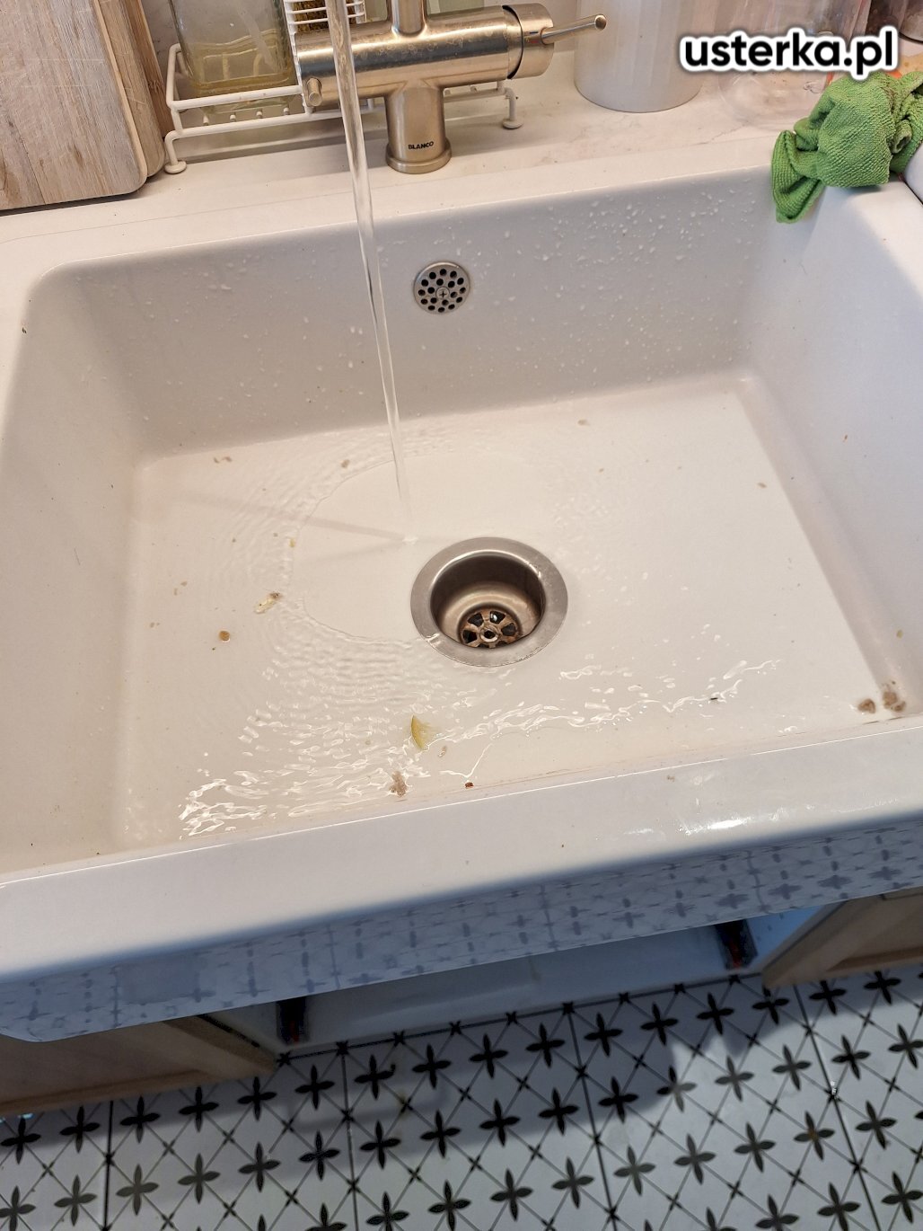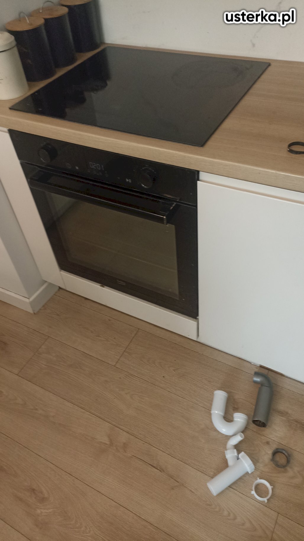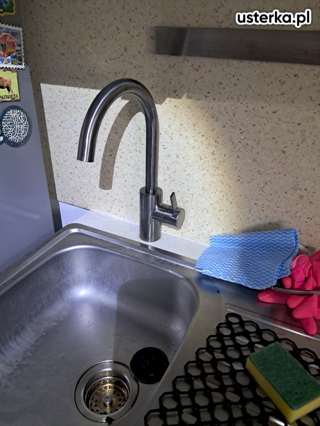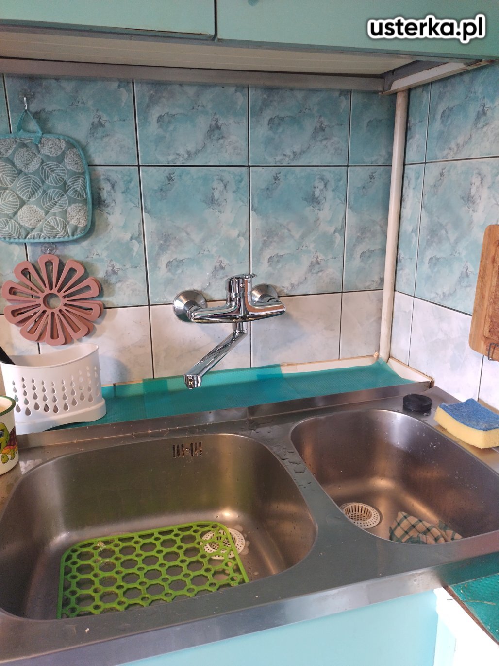 Pod zlewem w kuchni występował wyciek z kolanka. Po wymianie uszczelki nieszczelność została usunięta.