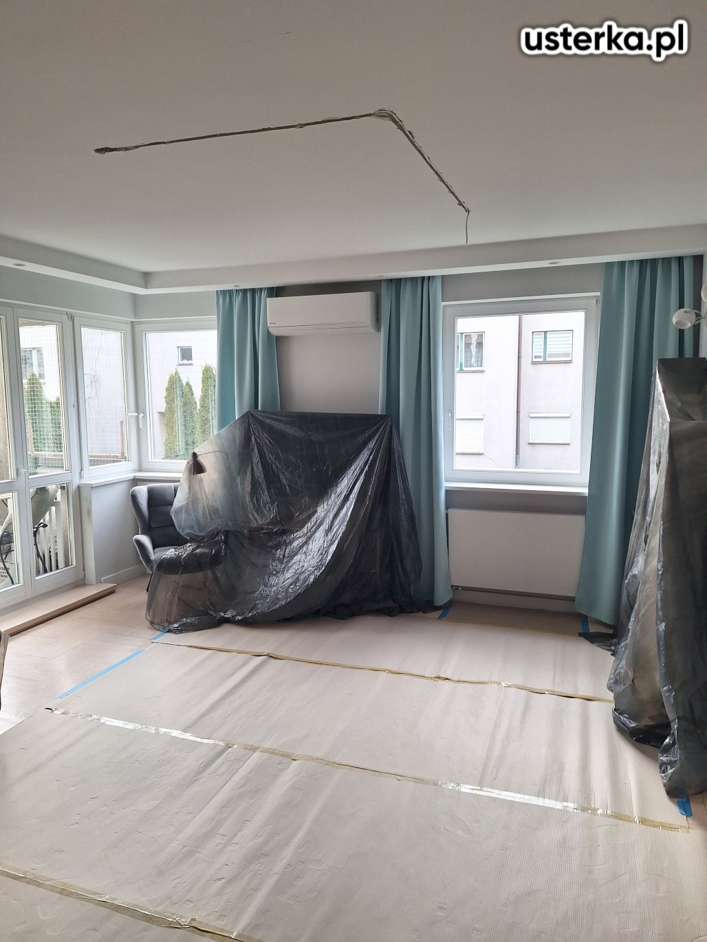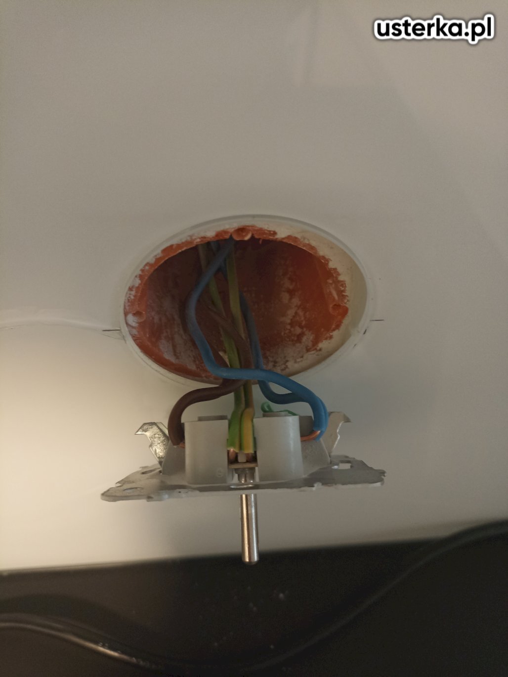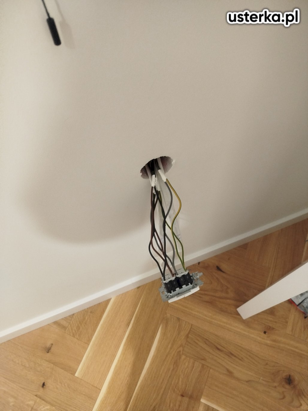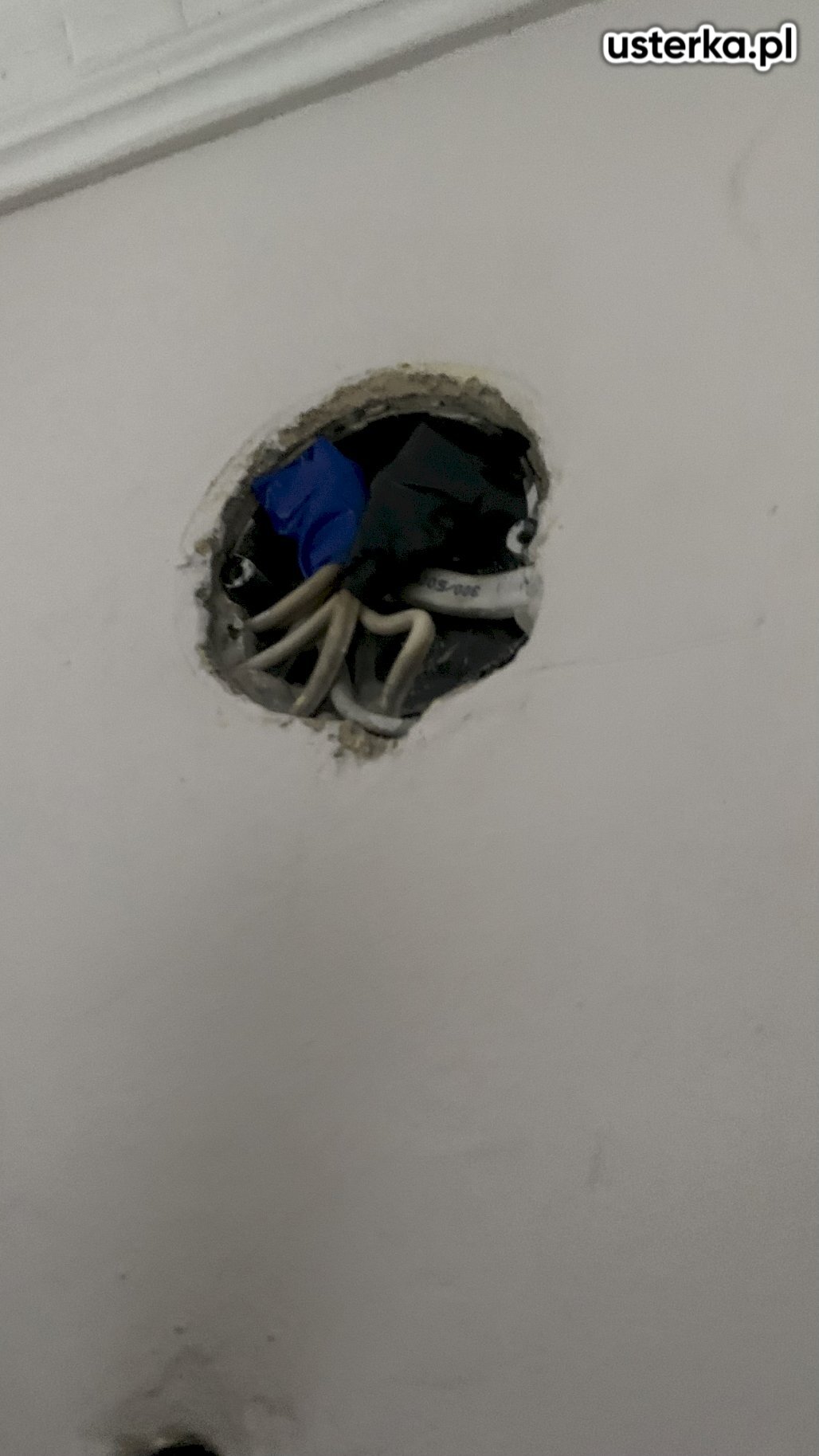 Wymieniono lampę sufitową oraz skuto nadmiar betonu przy suficie, aby umożliwić jej montaż.