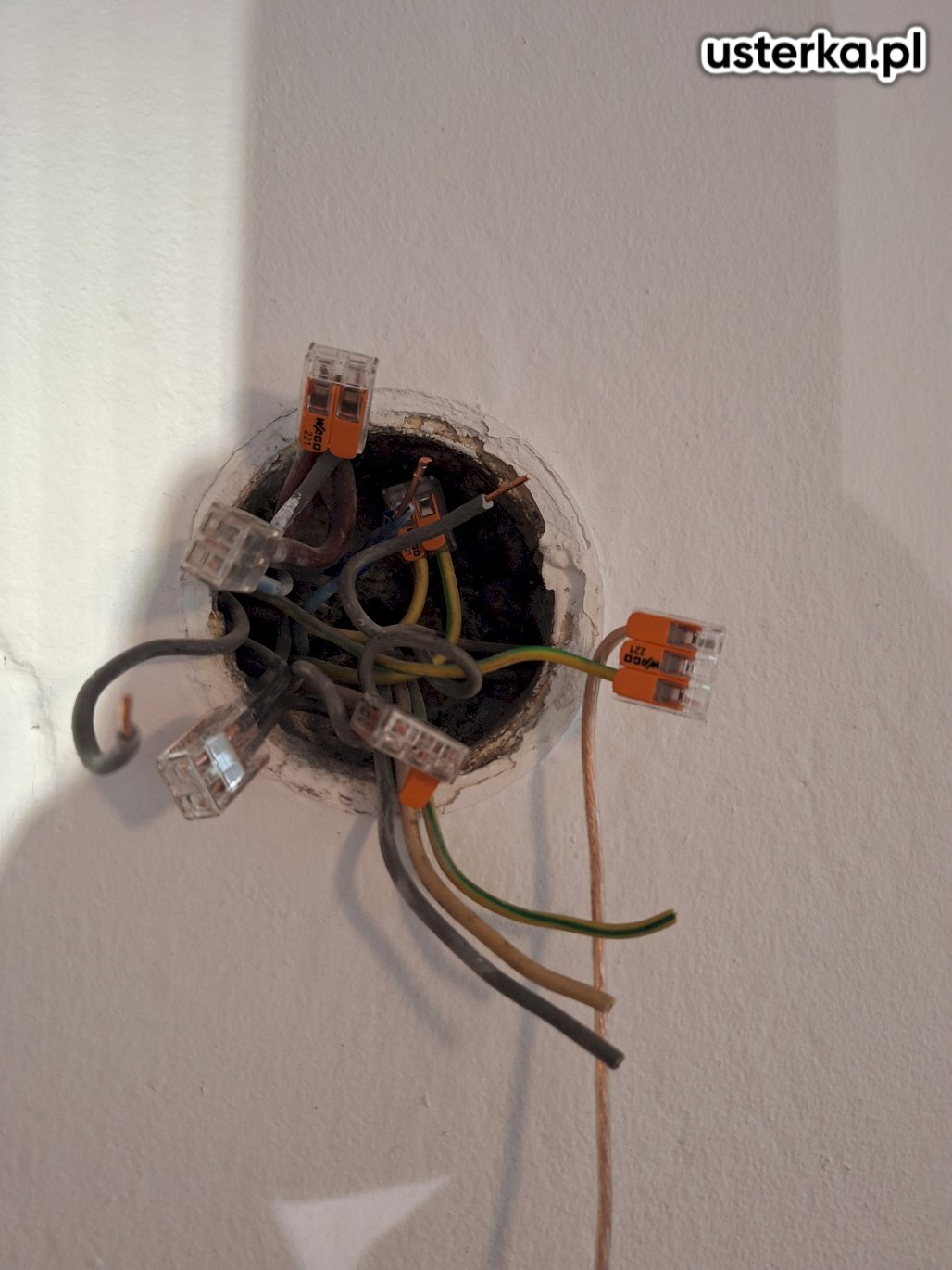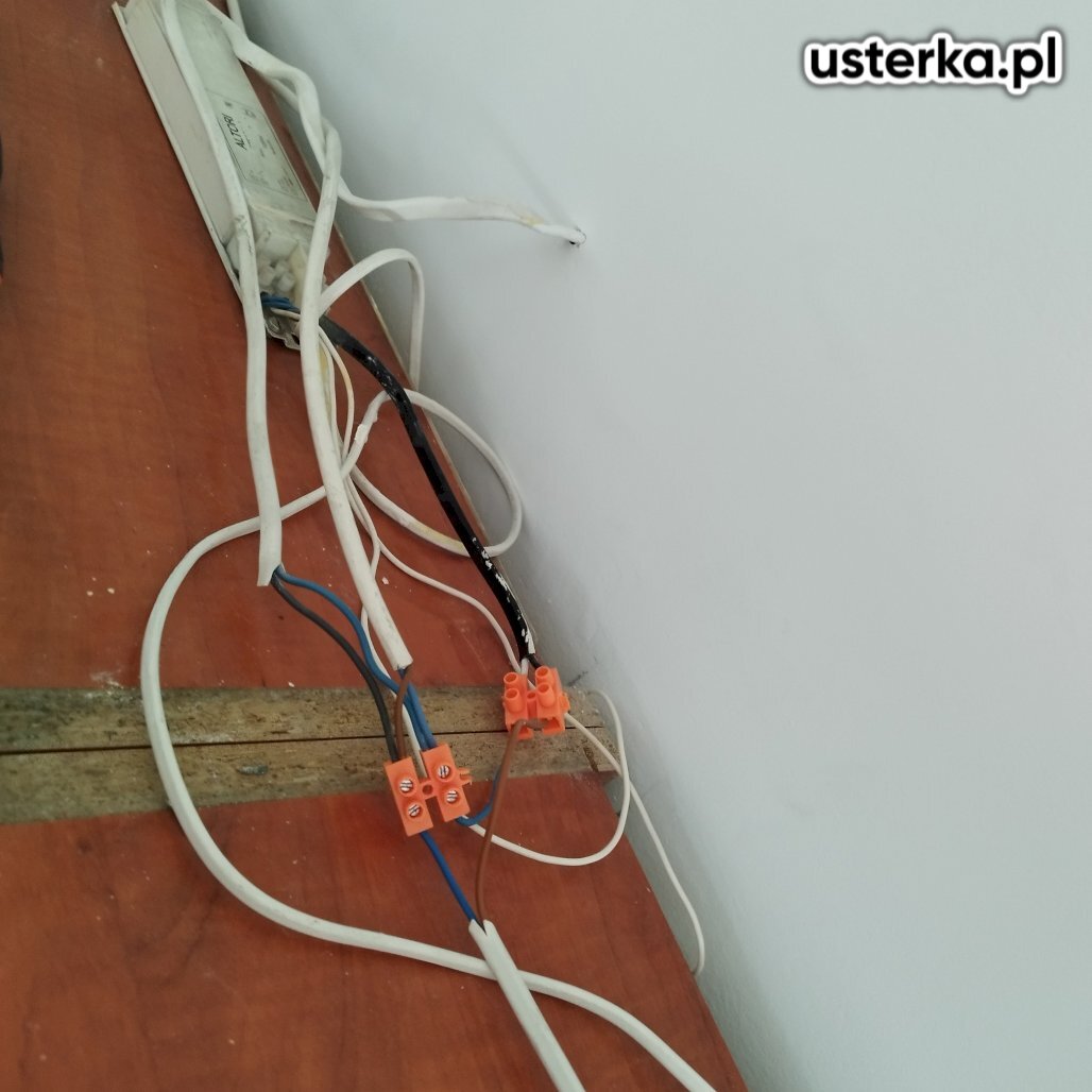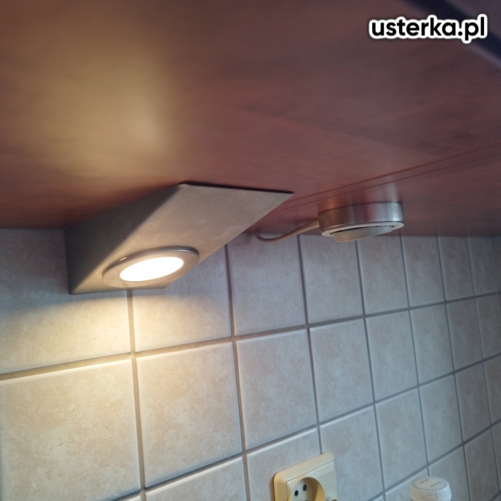Poprawiono połączenia lampek podszafkowych, które przestały działać po demontażu i ponownym montażu szafek kuchennych. Rozłączono istniejące połączenia, wymieniono kostki łączeniowe i wykonano prawidłowe podłączenie. Po wykonanych pracach oświetlenie działa prawidłowo.