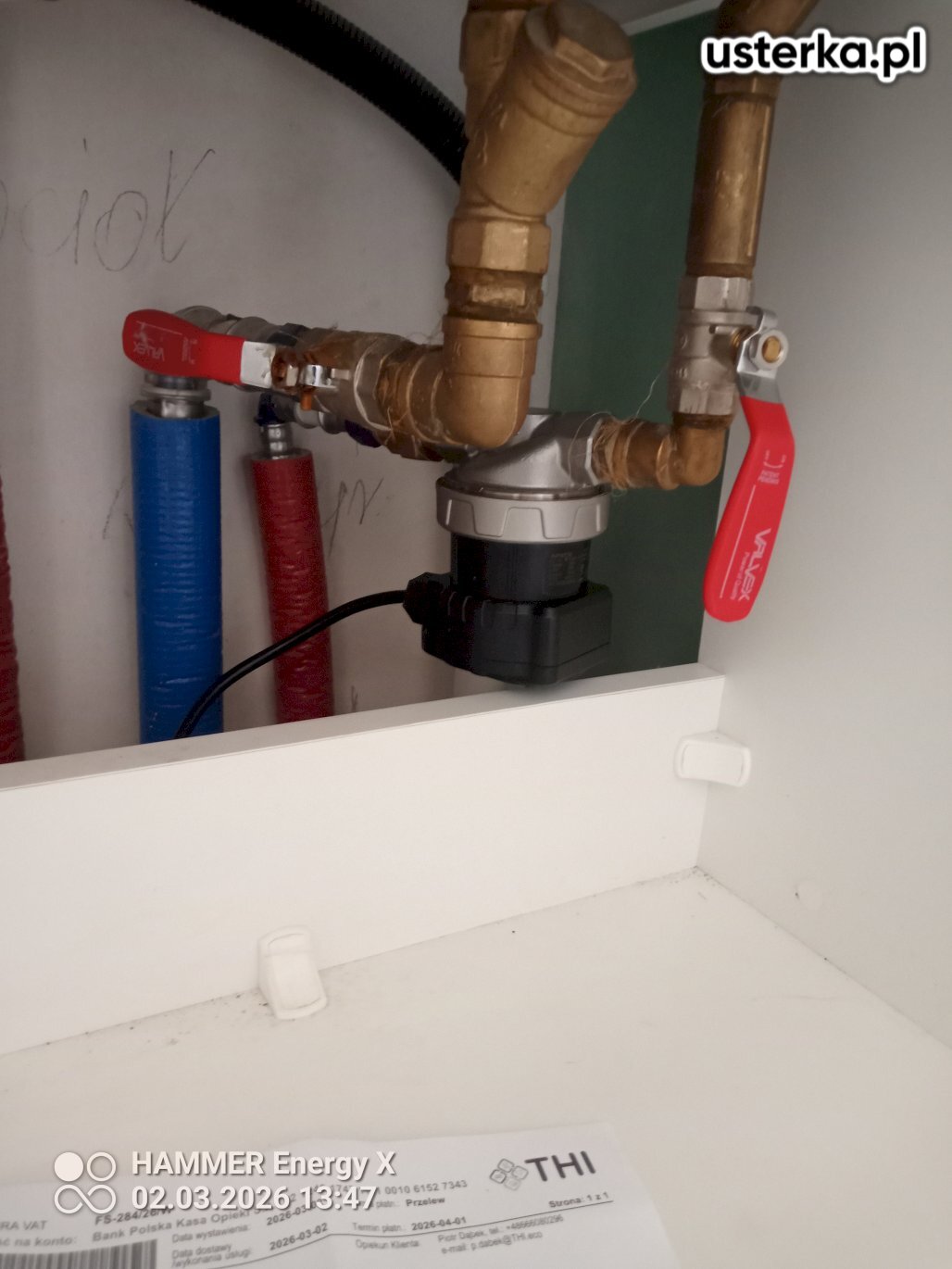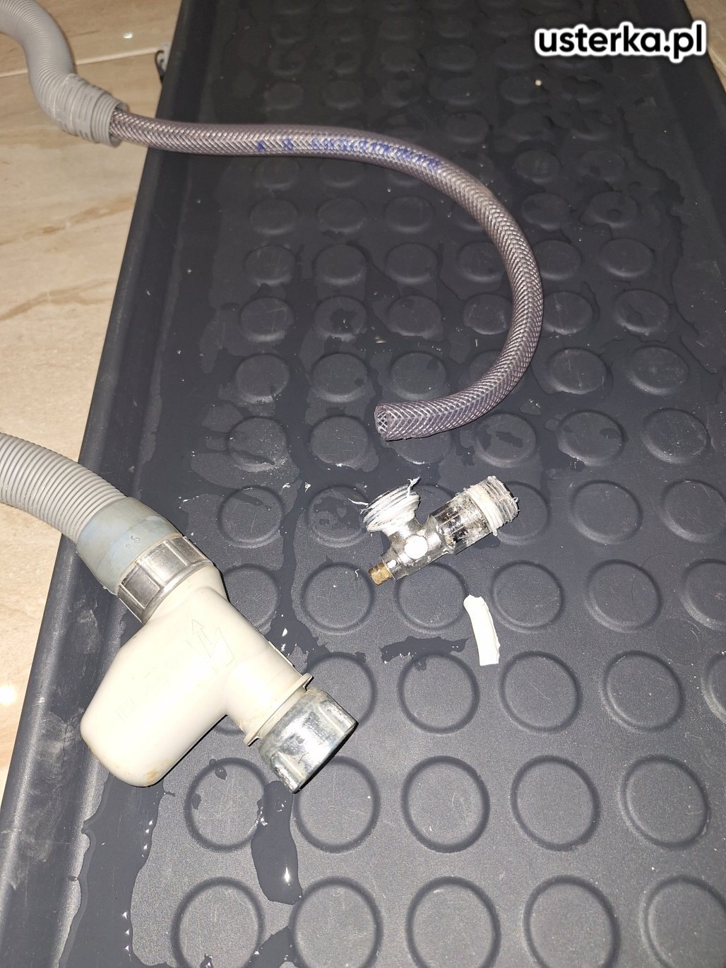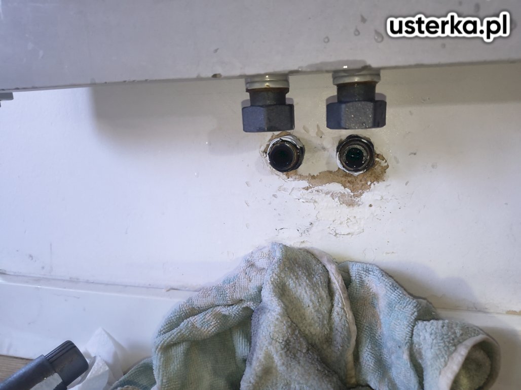Usunąłem wyciek wody przy połączeniach grzejnika, wymieniając wszystkie uszczelki. Instalacja działa prawidłowo.
