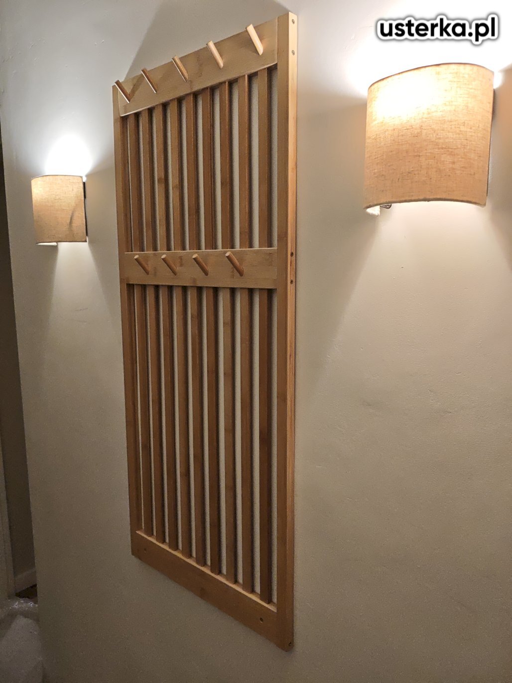 Wykonałem naprawę mocowania lampy oraz montaż nowej lampy, zamocowałem listwę z wieszakami do ściany z płyt gipsowo-kartonowych przy użyciu odpowiednich kołków, skręciłem i przymocowałem regał do ściany, a także naprawiłem mechanizm wysuwania szuflady.