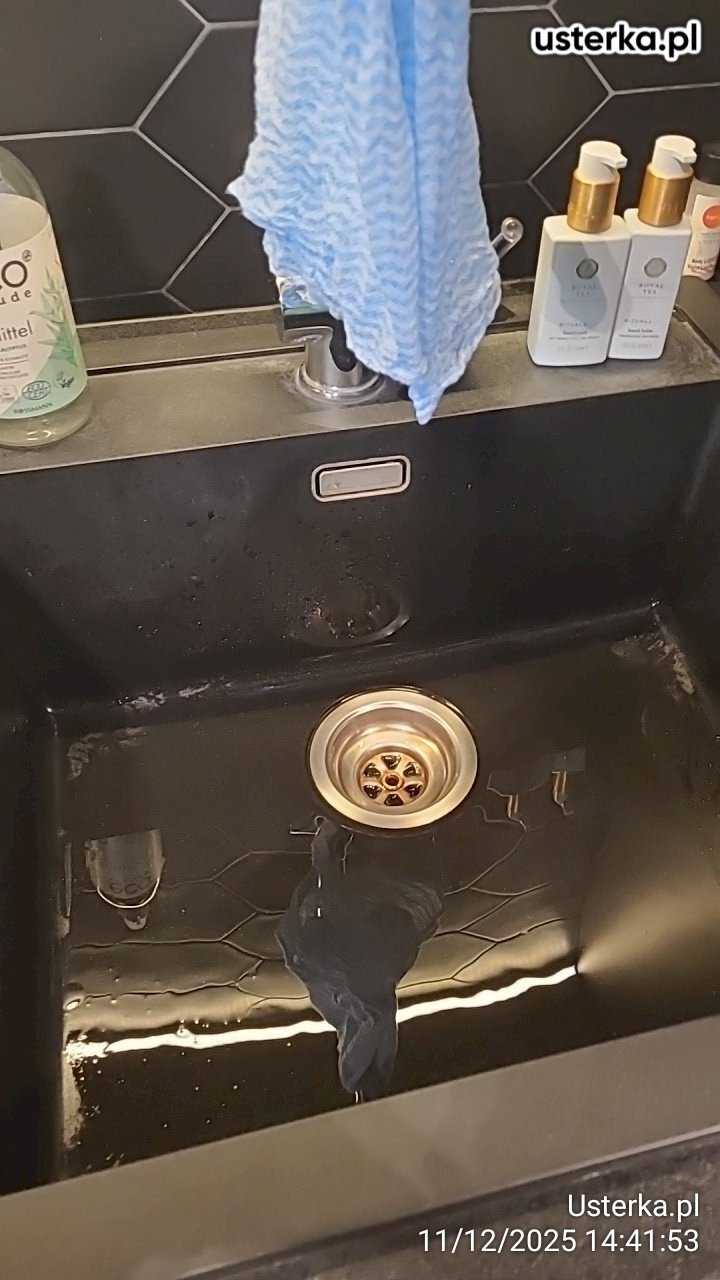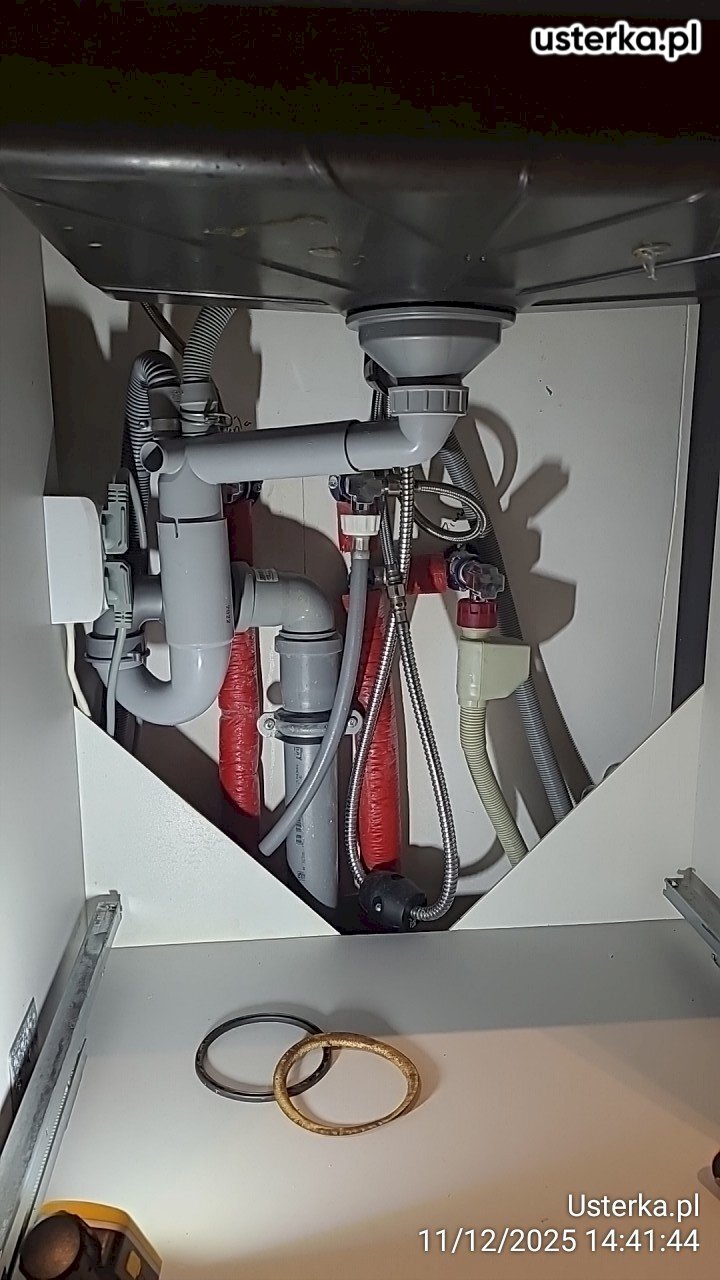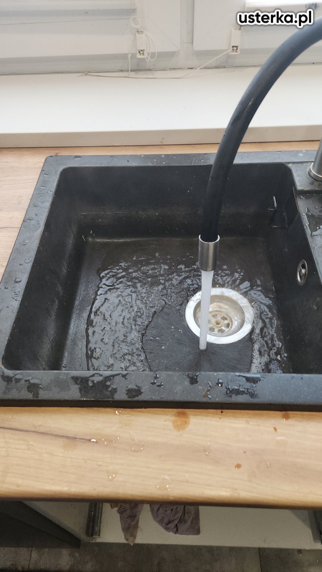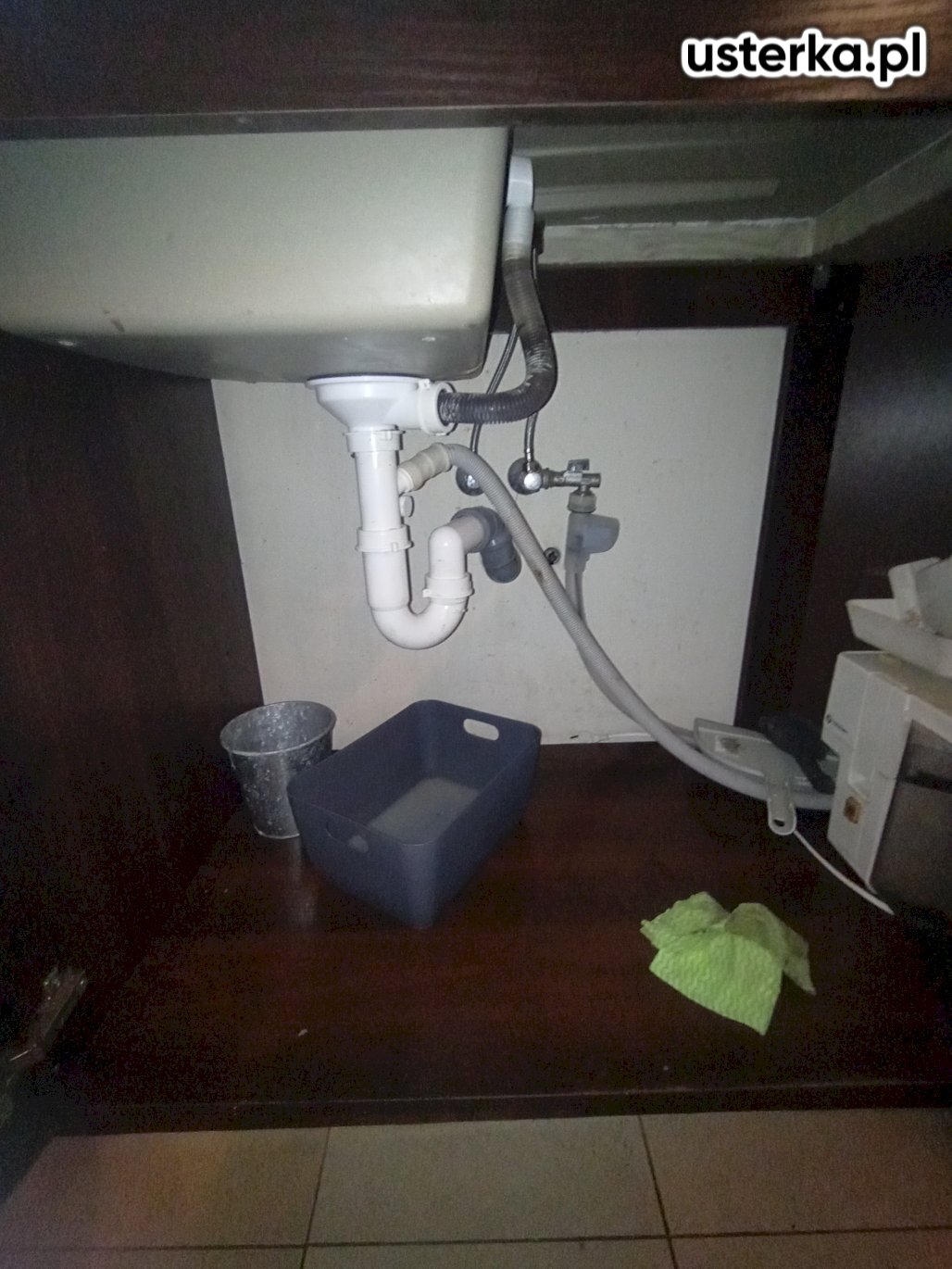 Udrożnienie rury kanalizacyjnej w kuchni, przy zlewie.