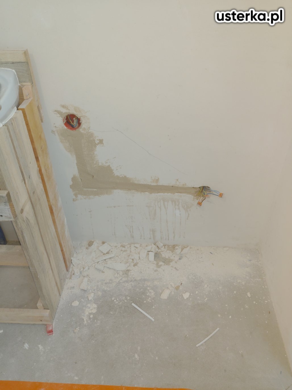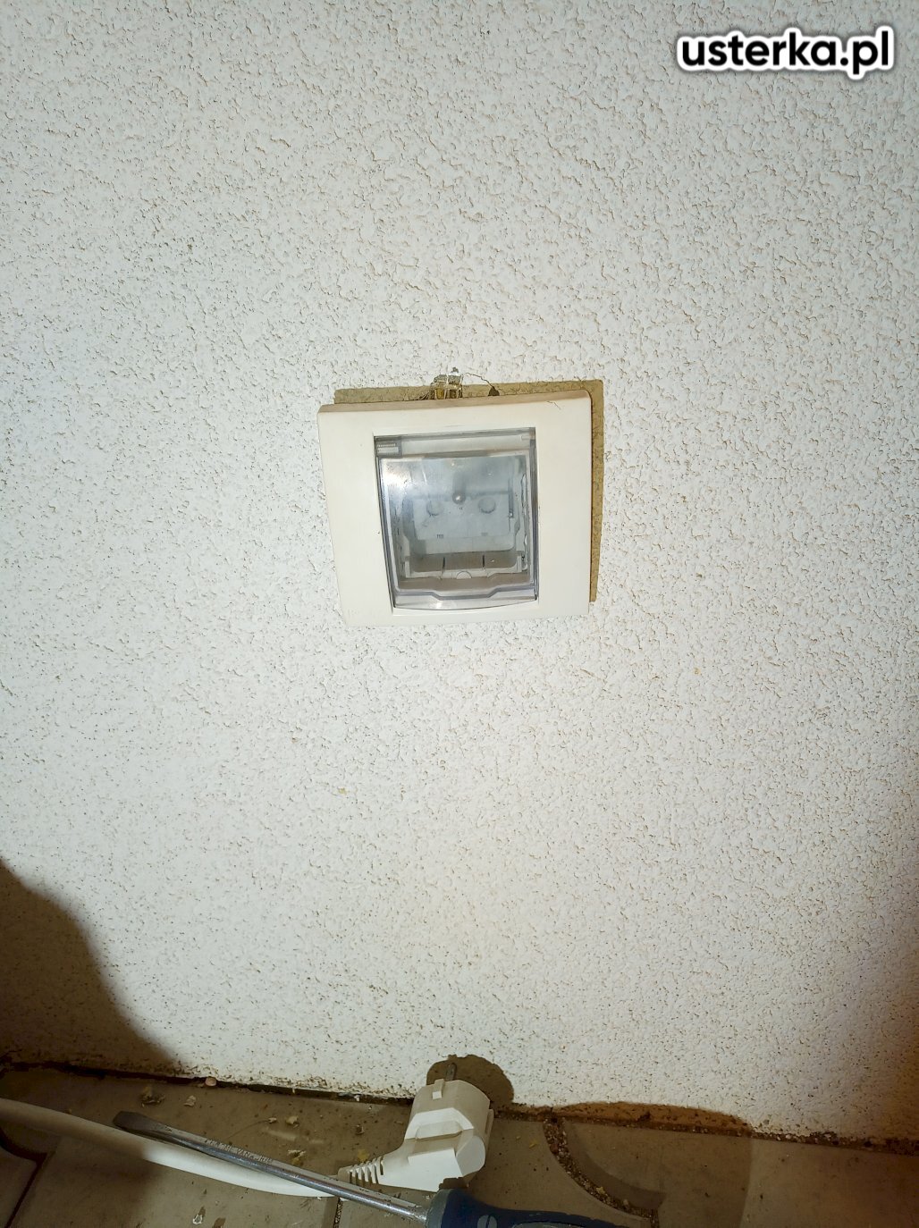 Wymieniłem dwa gniazdka elektryczne i dwa włączniki oświetlenia zakupione przez klienta, naprawiłem mocowanie deski sedesowej oraz wyregulowałem zawiasy szafki łazienkowej.