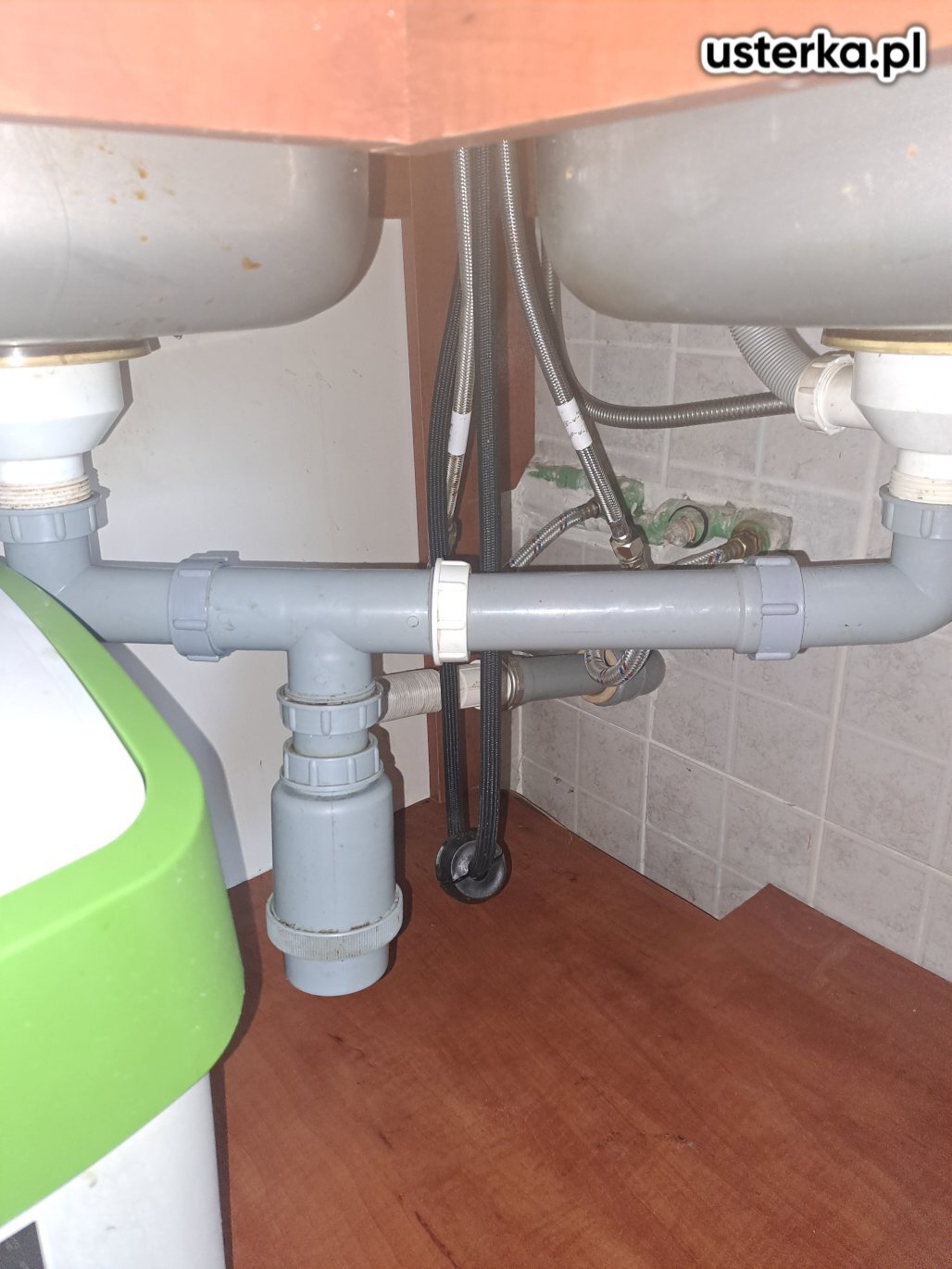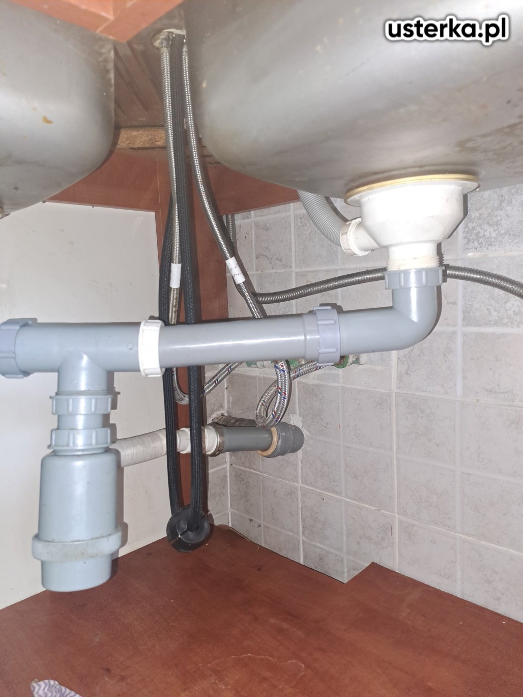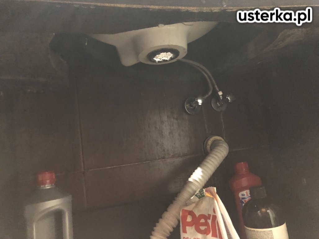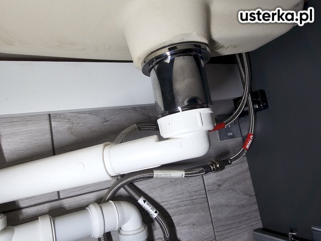 Przyczyną nieszczelności instalacji była uszczelka wypchnięta do rury syfonu. Po ponownym montażu wyciek nie występuje. Syfon kwalifikuje się jednak do wymiany ze względu na zużycie oraz zbyt krótko docięte rurki, które mogą się łatwo rozszczelnić np. wskutek uderzenia koszem na śmieci.