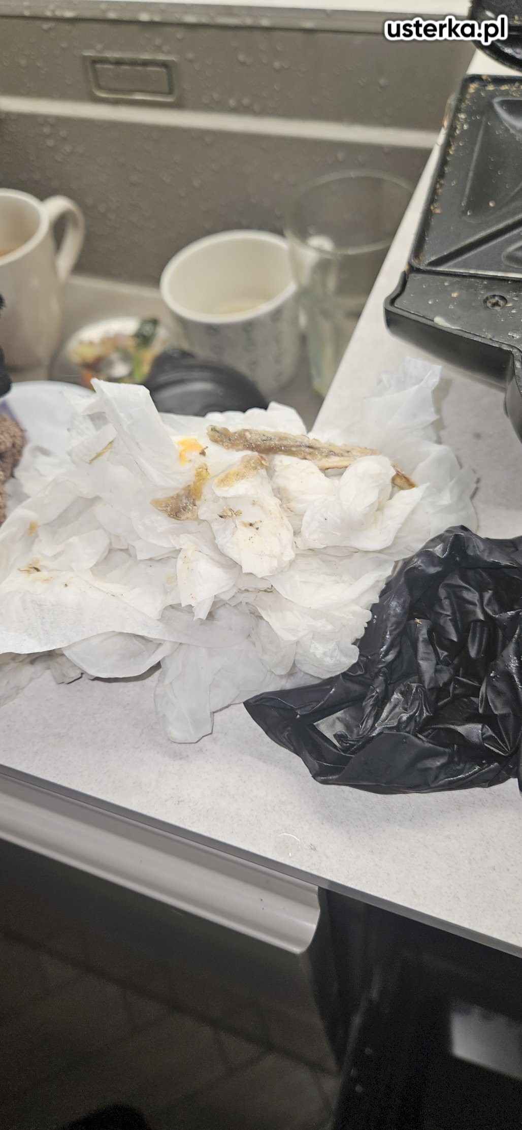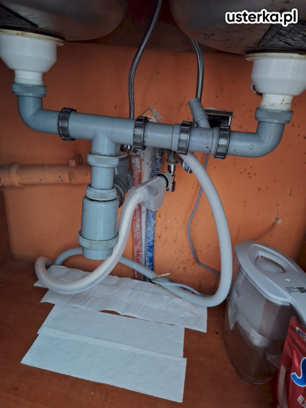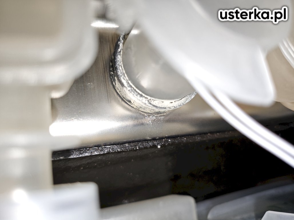 Przyczyną nieszczelności instalacji była uszczelka wypchnięta do rury syfonu. Po ponownym montażu wyciek nie występuje. Syfon kwalifikuje się jednak do wymiany ze względu na zużycie oraz zbyt krótko docięte rurki, które mogą się łatwo rozszczelnić np. wskutek uderzenia koszem na śmieci.