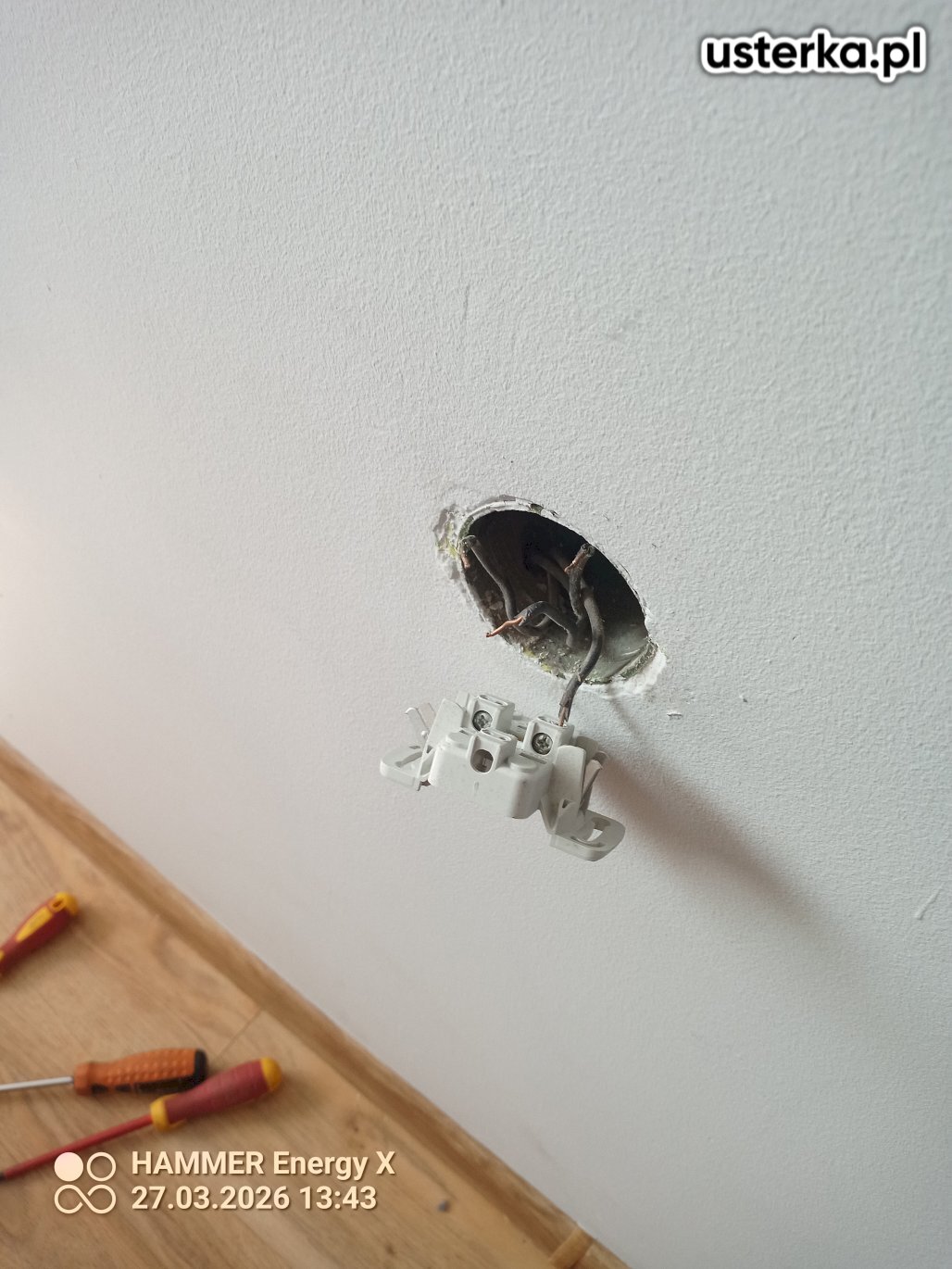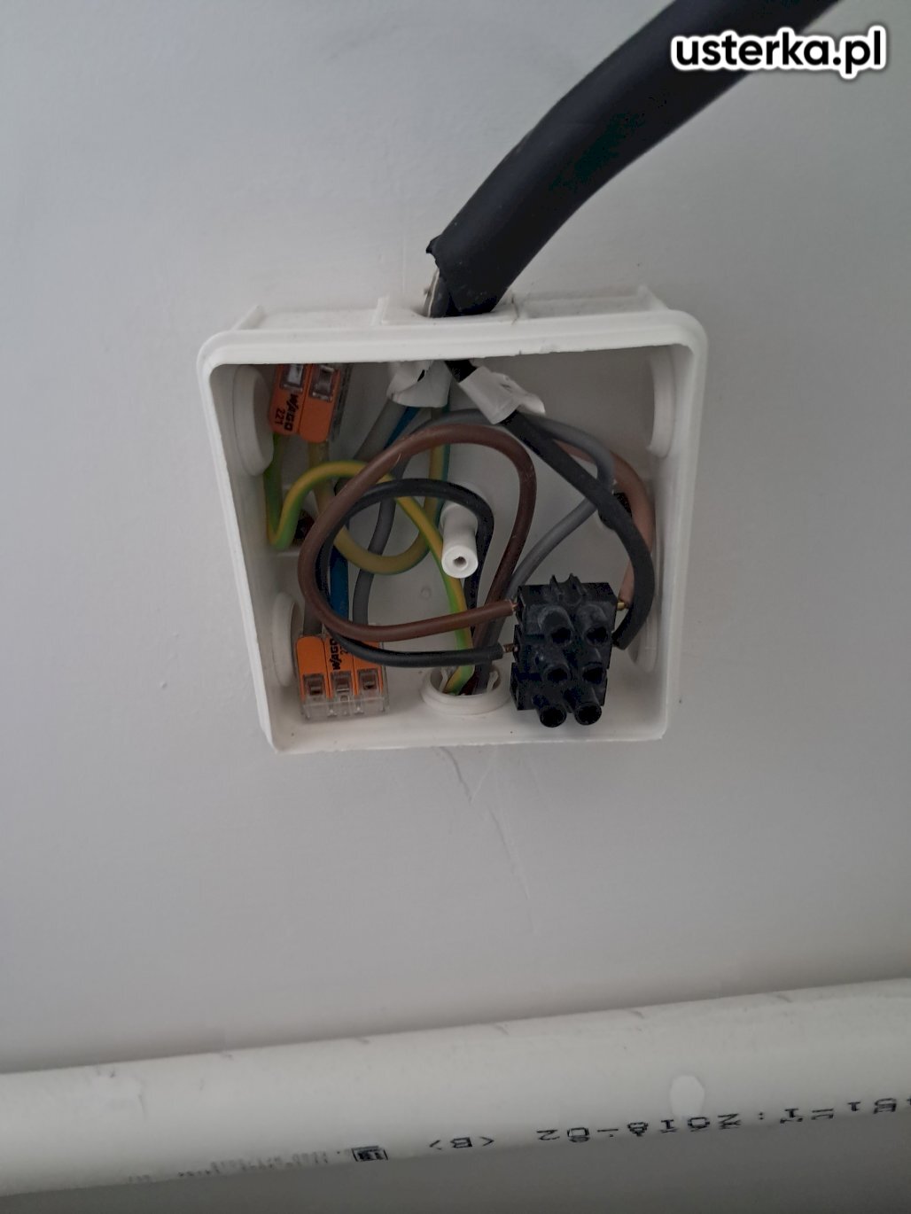 Zamontowano puszkę elektryczną, wymieniono bezpiecznik oraz zamontowano dwa gniazdka.