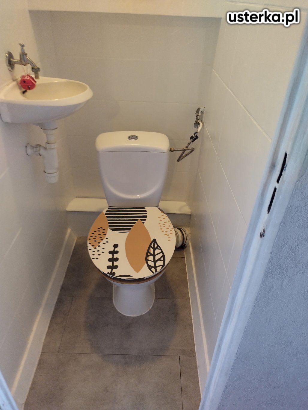 Zamontowano deskę sedesową z wolnym opadaniem oraz zawieszono dwa obrazy.