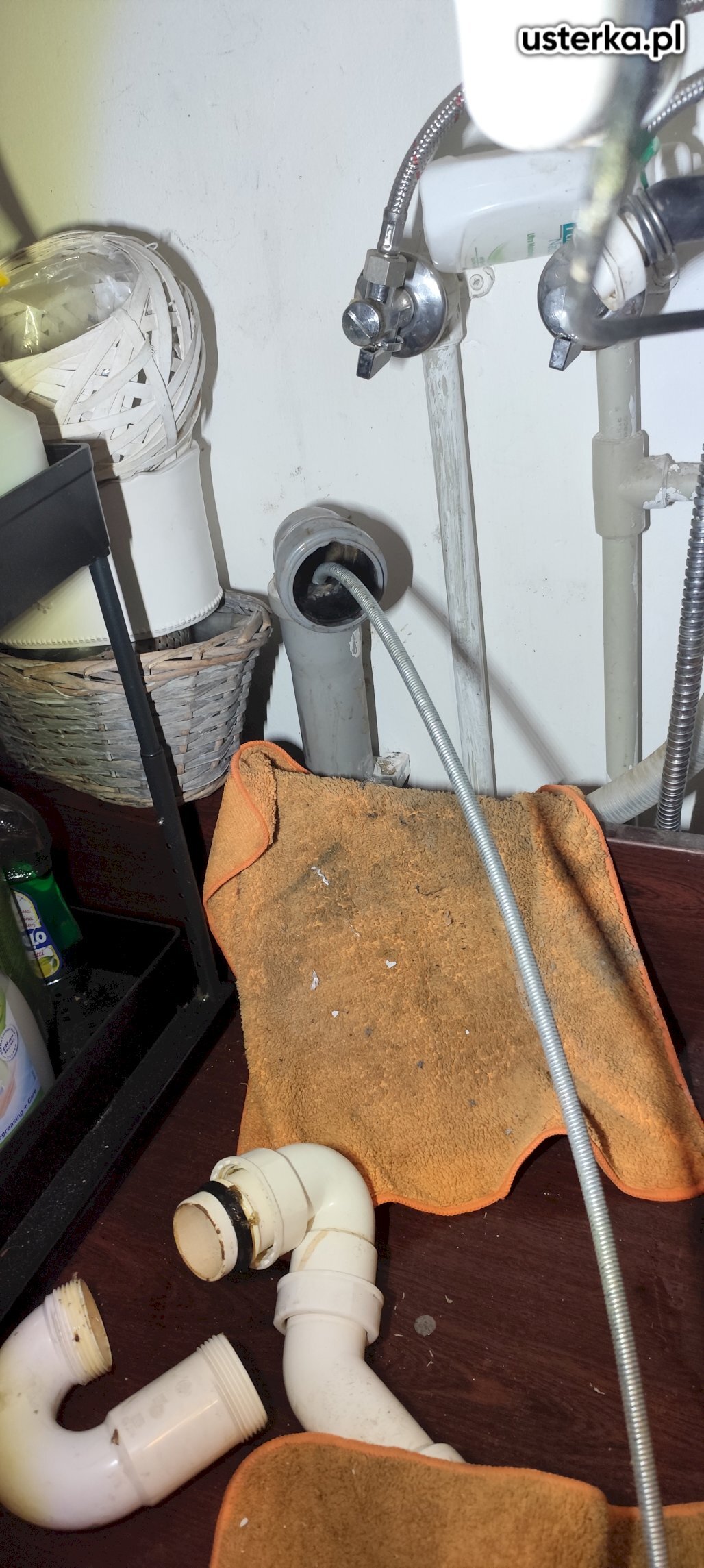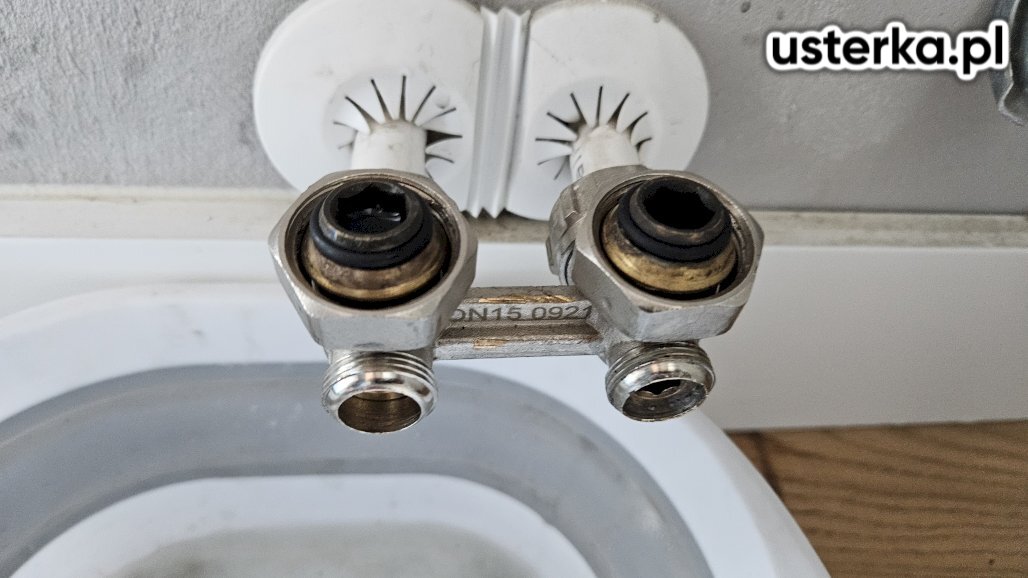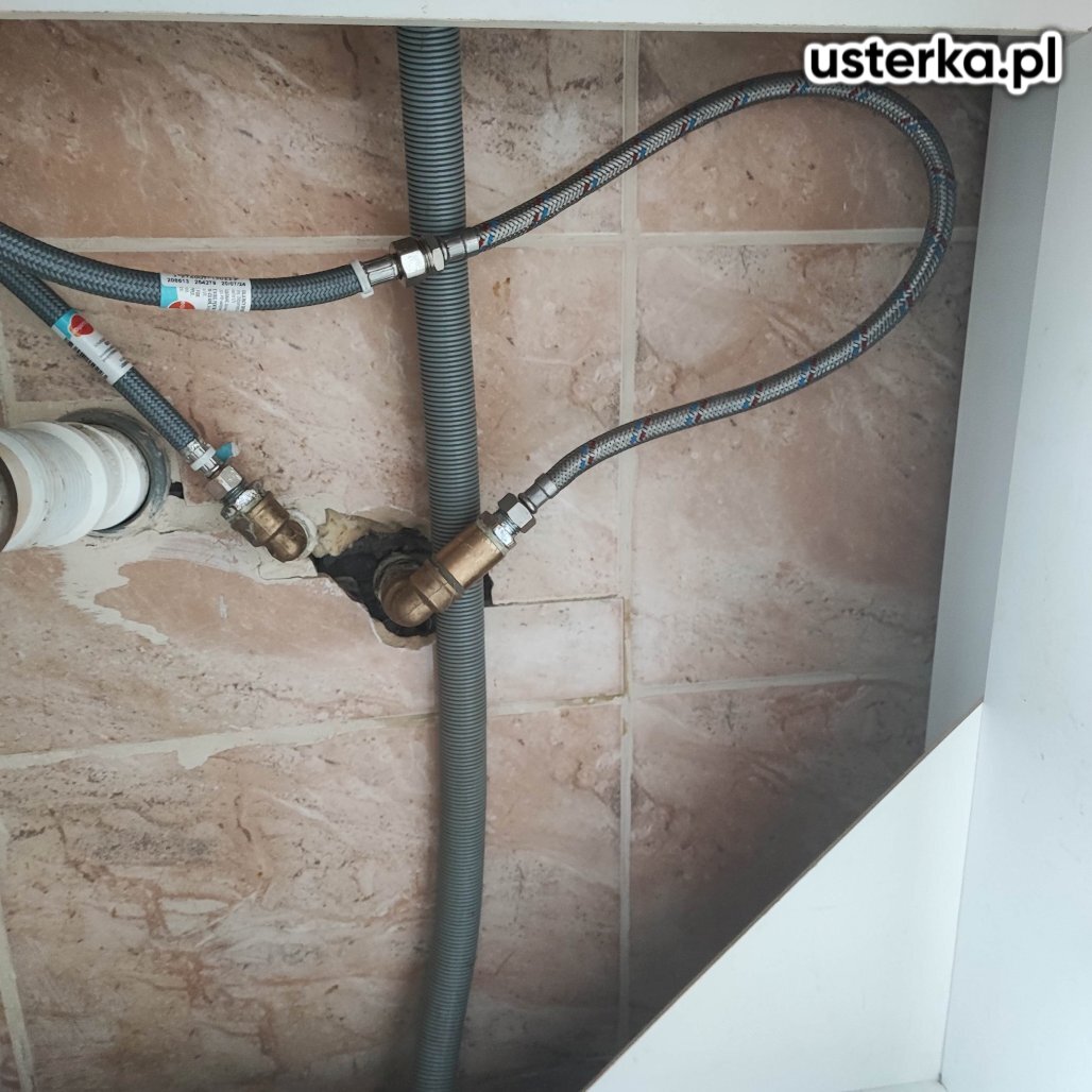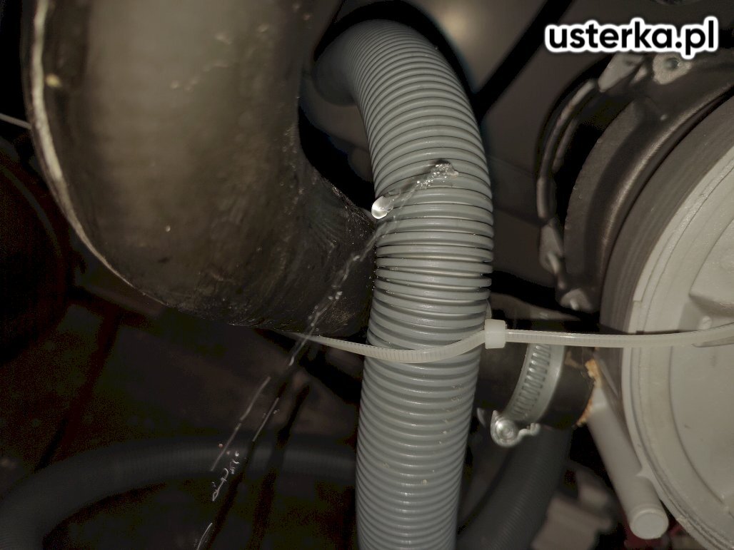 Usunięto prowizoryczne uszczelnienie z gumki recepturki oraz dokręcono wąż. Po wykonaniu naprawy nie stwierdzono wycieków.