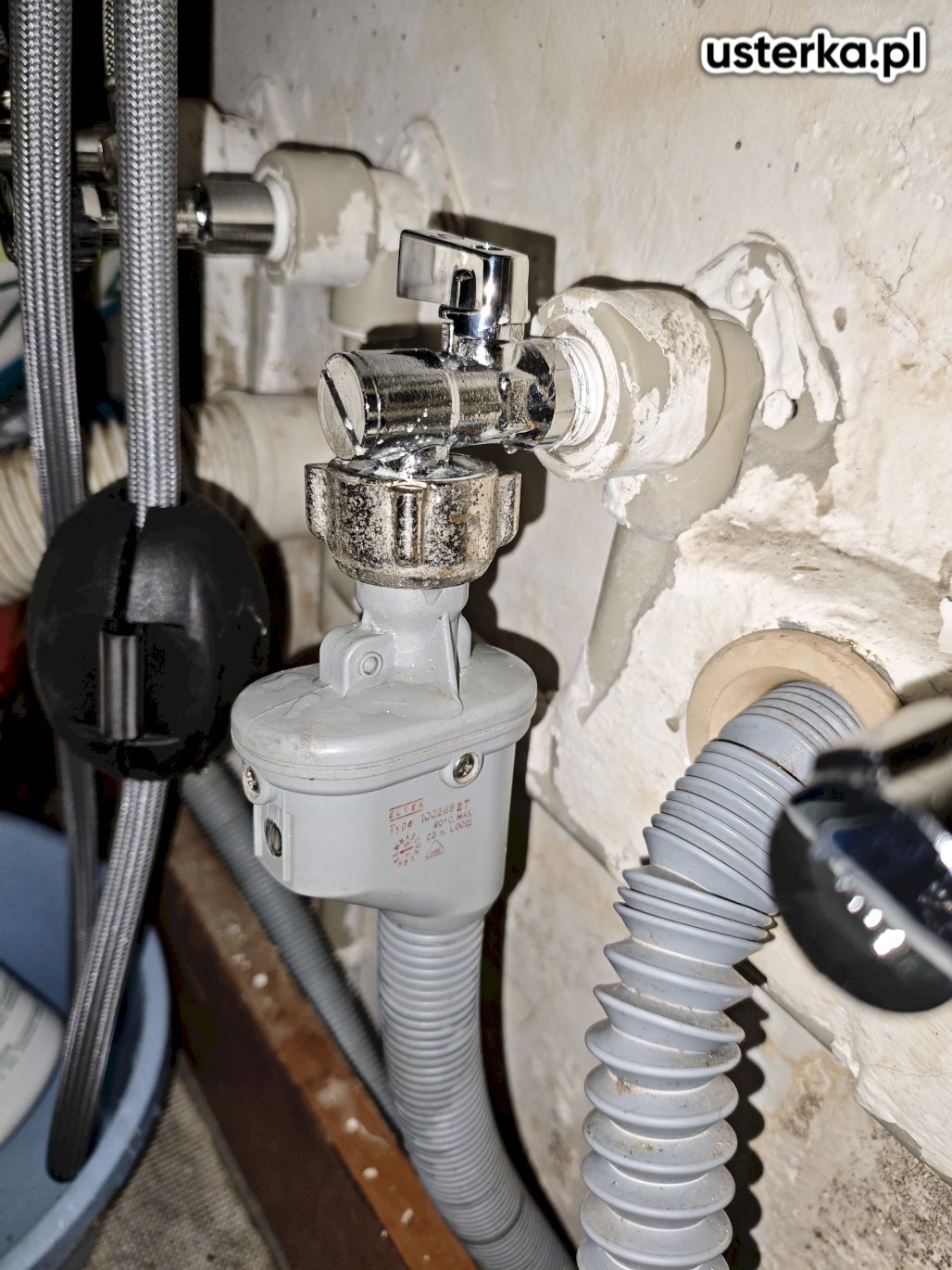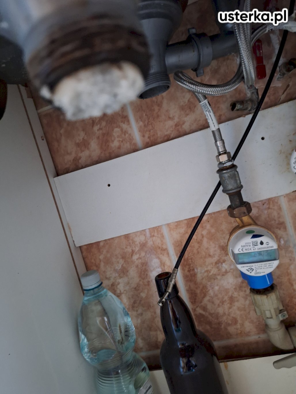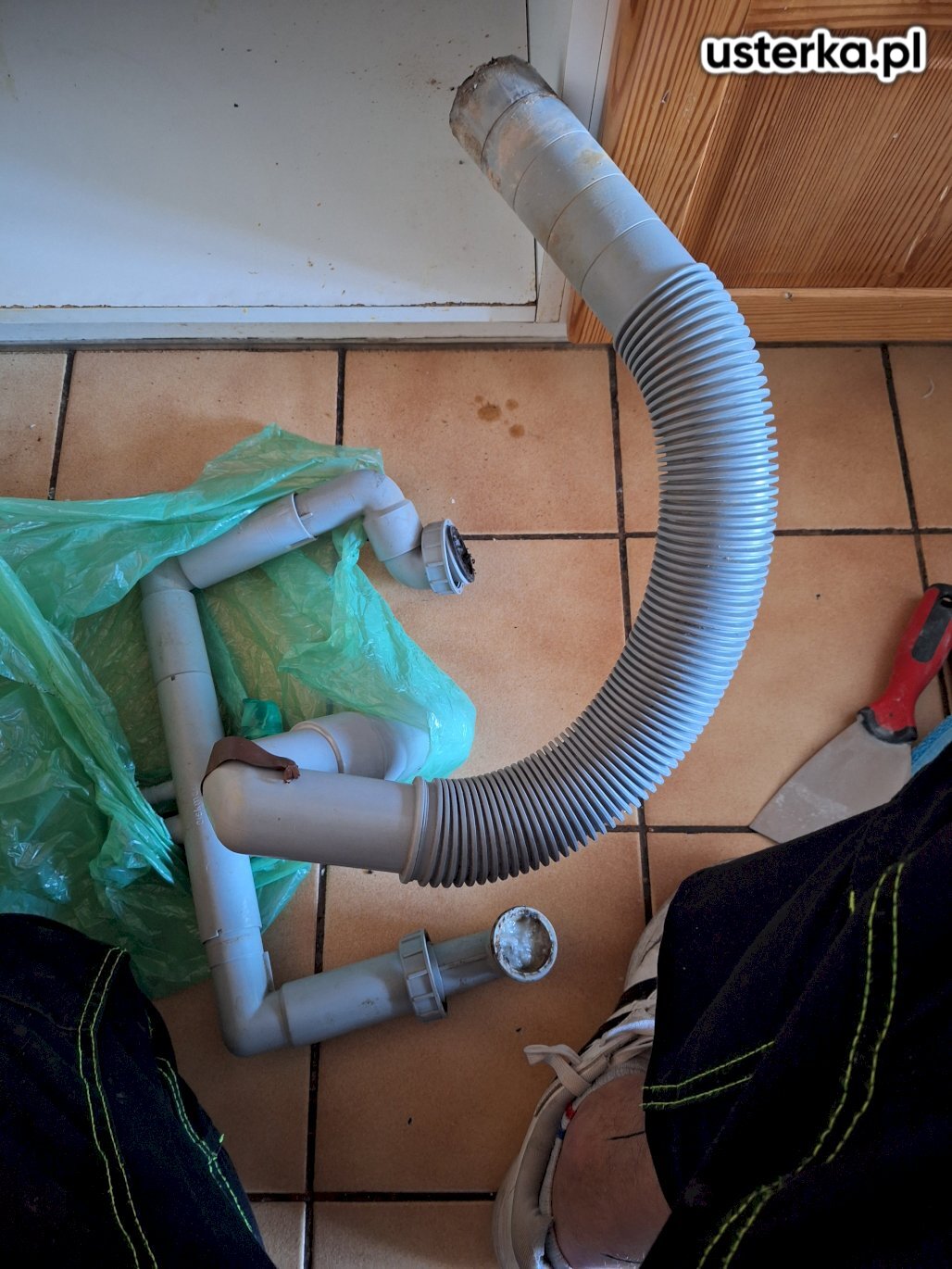 Usunięto prowizoryczne uszczelnienie z gumki recepturki oraz dokręcono wąż. Po wykonaniu naprawy nie stwierdzono wycieków.