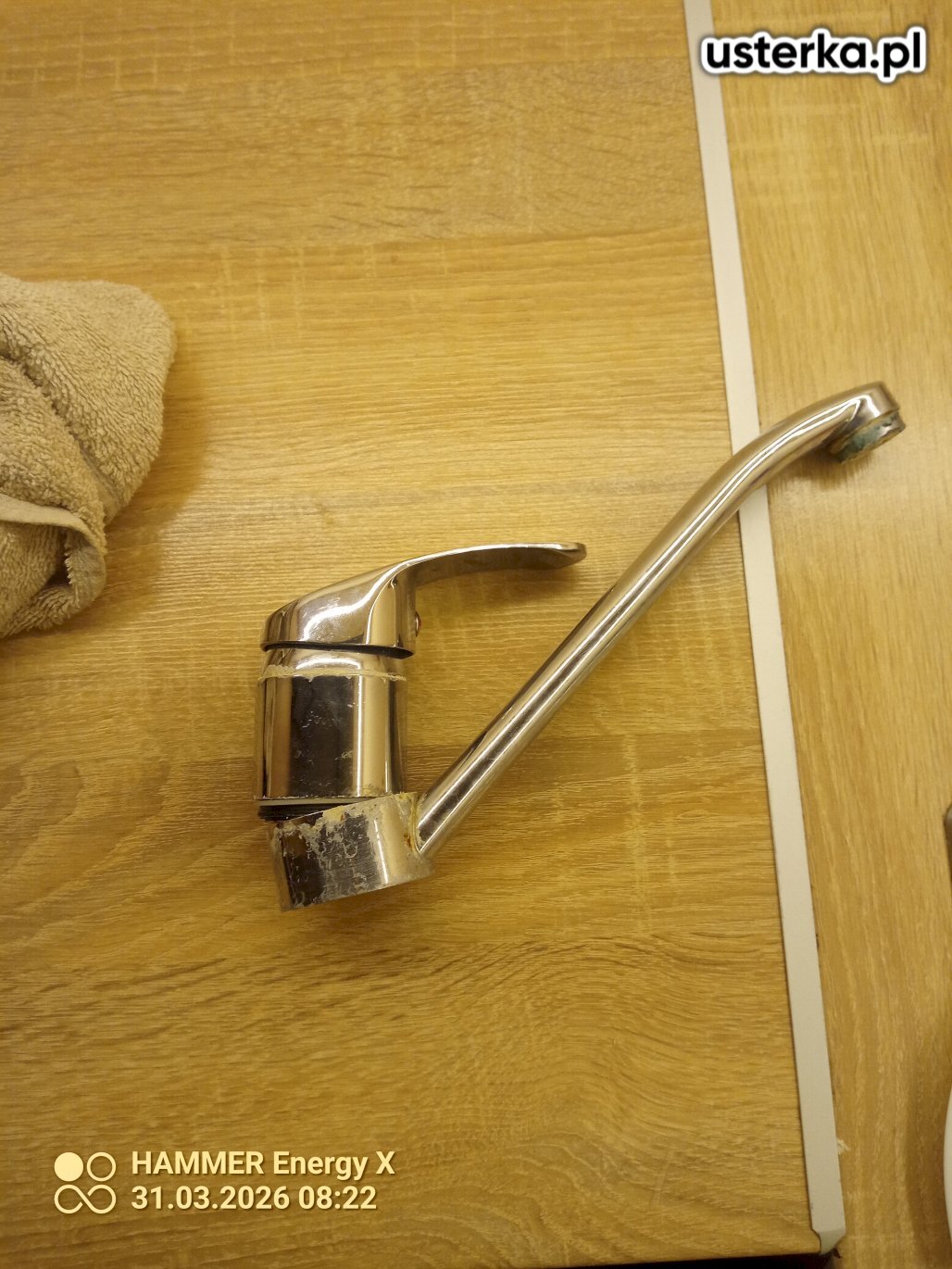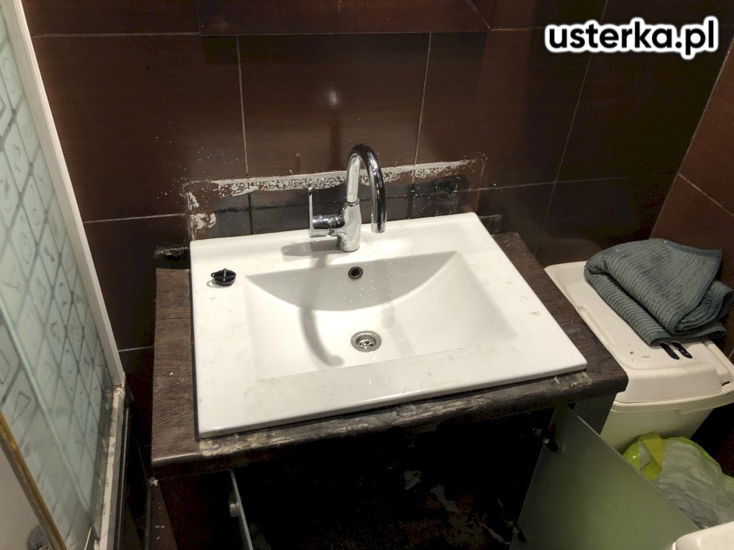 Wymiana uszkodzonej baterii kuchennej po awarii, która spowodowała zalanie mieszkania.