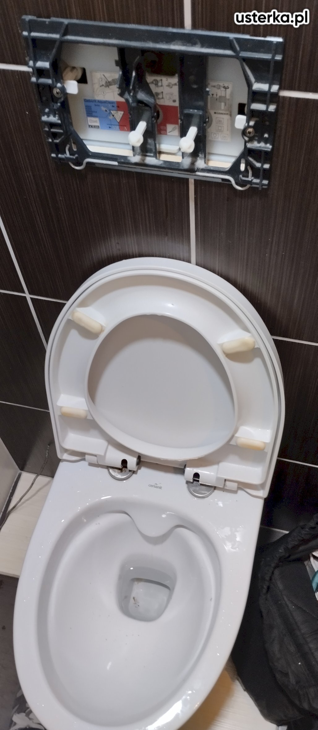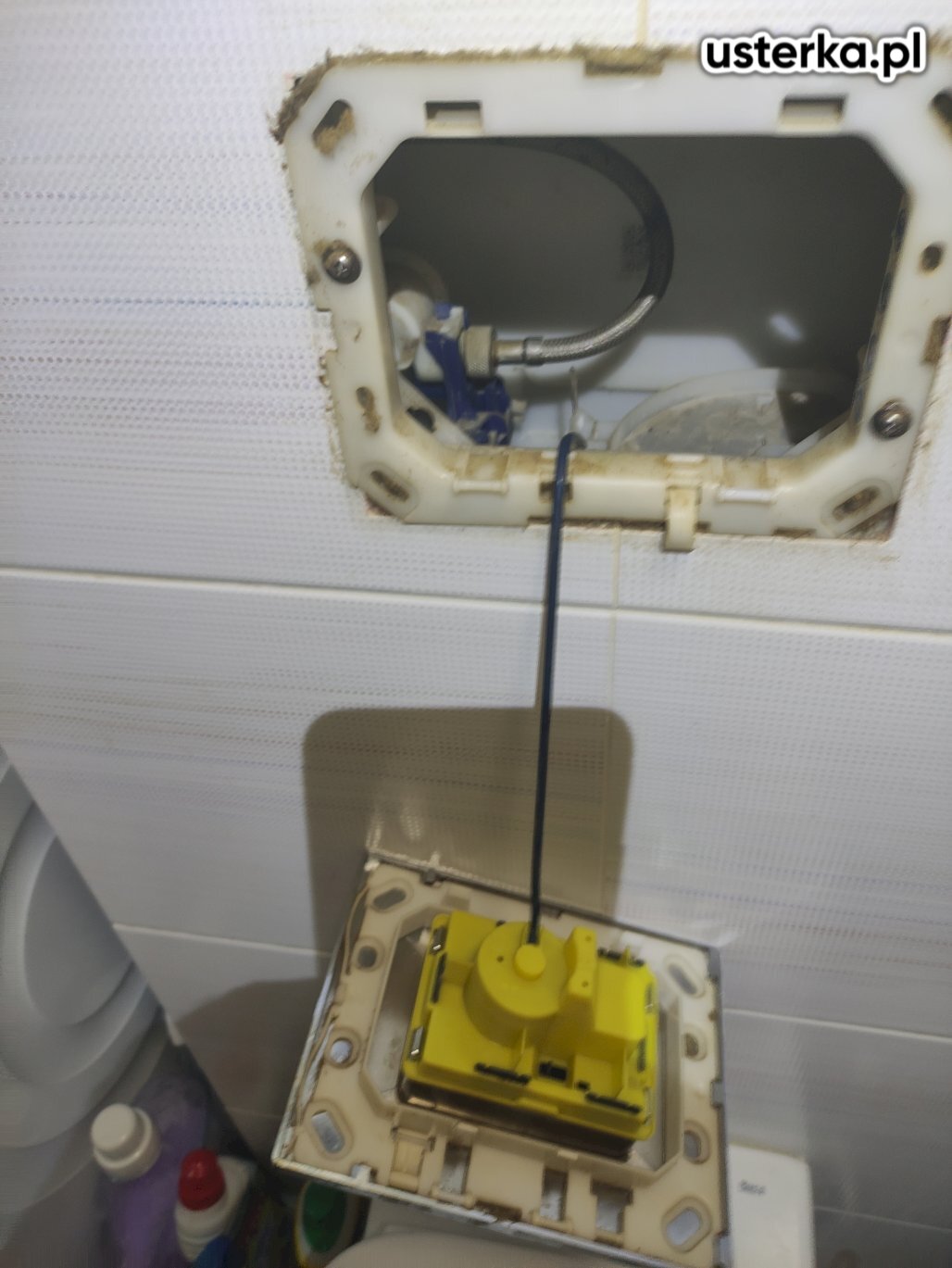 Wymieniono zawór doprowadzający wodę do zbiornika WC, aby usunąć problem z ciągłym przepływem wody do muszli po spłukaniu.