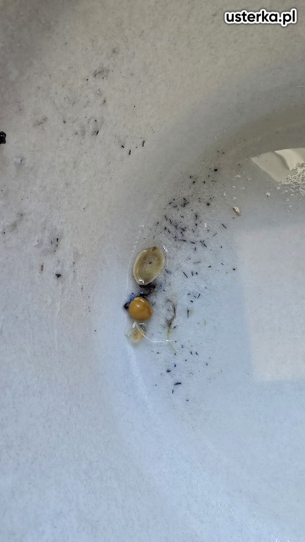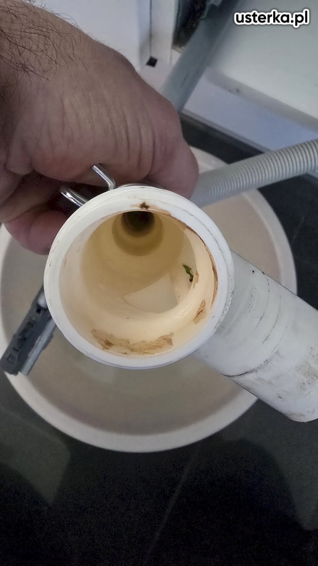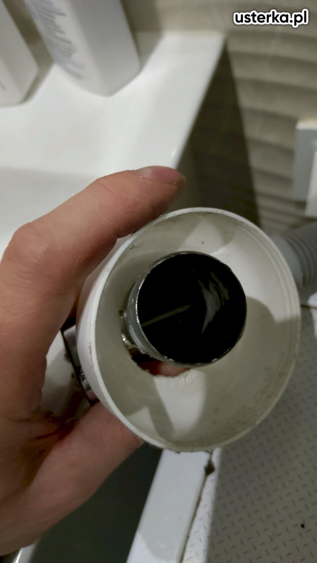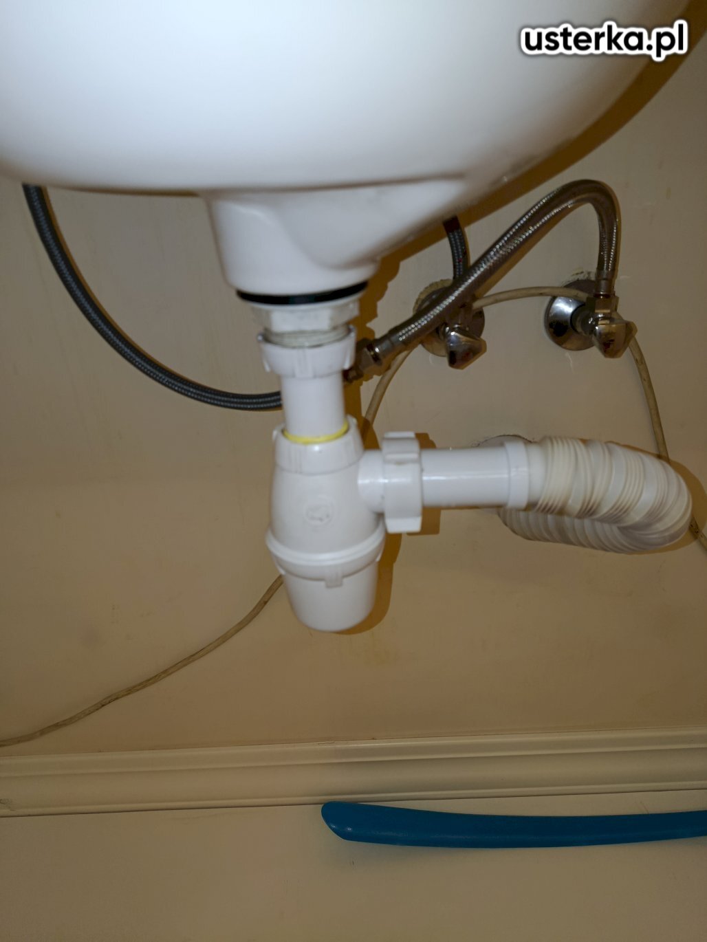 Przyczyną awarii była pęknięta śruba kielicha syfonu. Po jej wymianie instalacja działa prawidłowo i nie stwierdzono wycieków. Zwrócono również uwagę na niewłaściwy spadek instalacji, wynikający ze zbyt wysoko osadzonego odpływu kanalizacyjnego, co może powodować nieszczelności na kolankach z uszczelkami wargowymi.