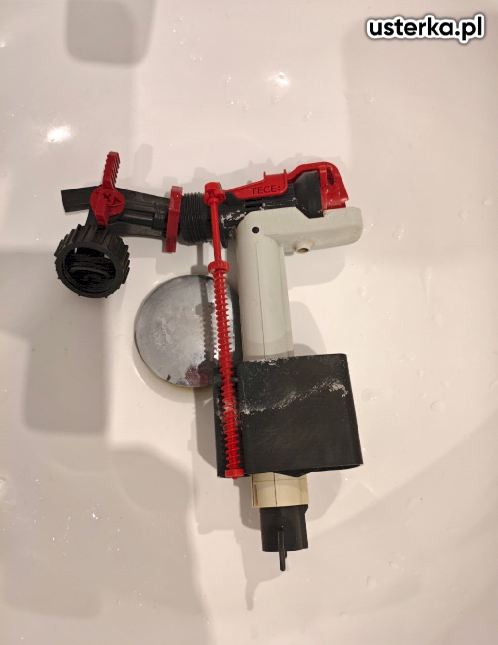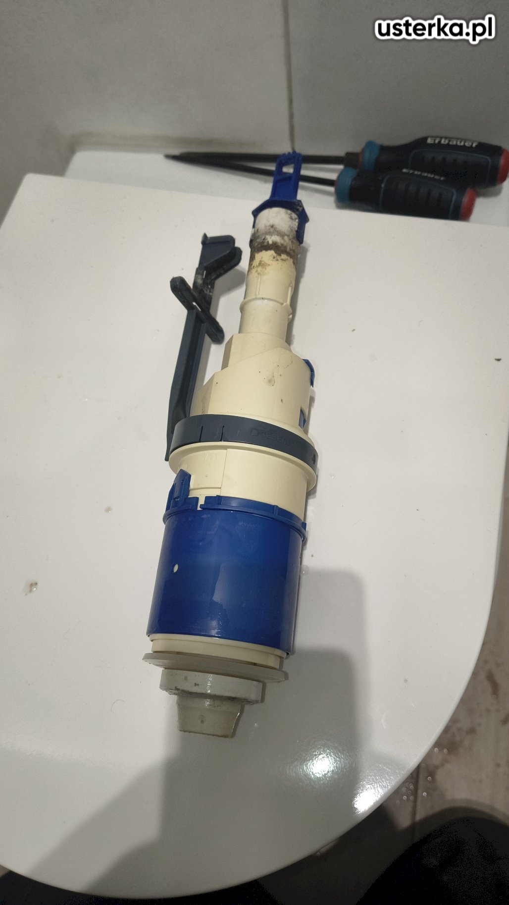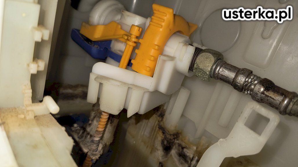 Zdemontowałem spłuczkę WC i prawidłowo zamontowałem nowy zawór napełniający oraz kolanko, mimo ograniczonej przestrzeni między ceramiką a ścianą.