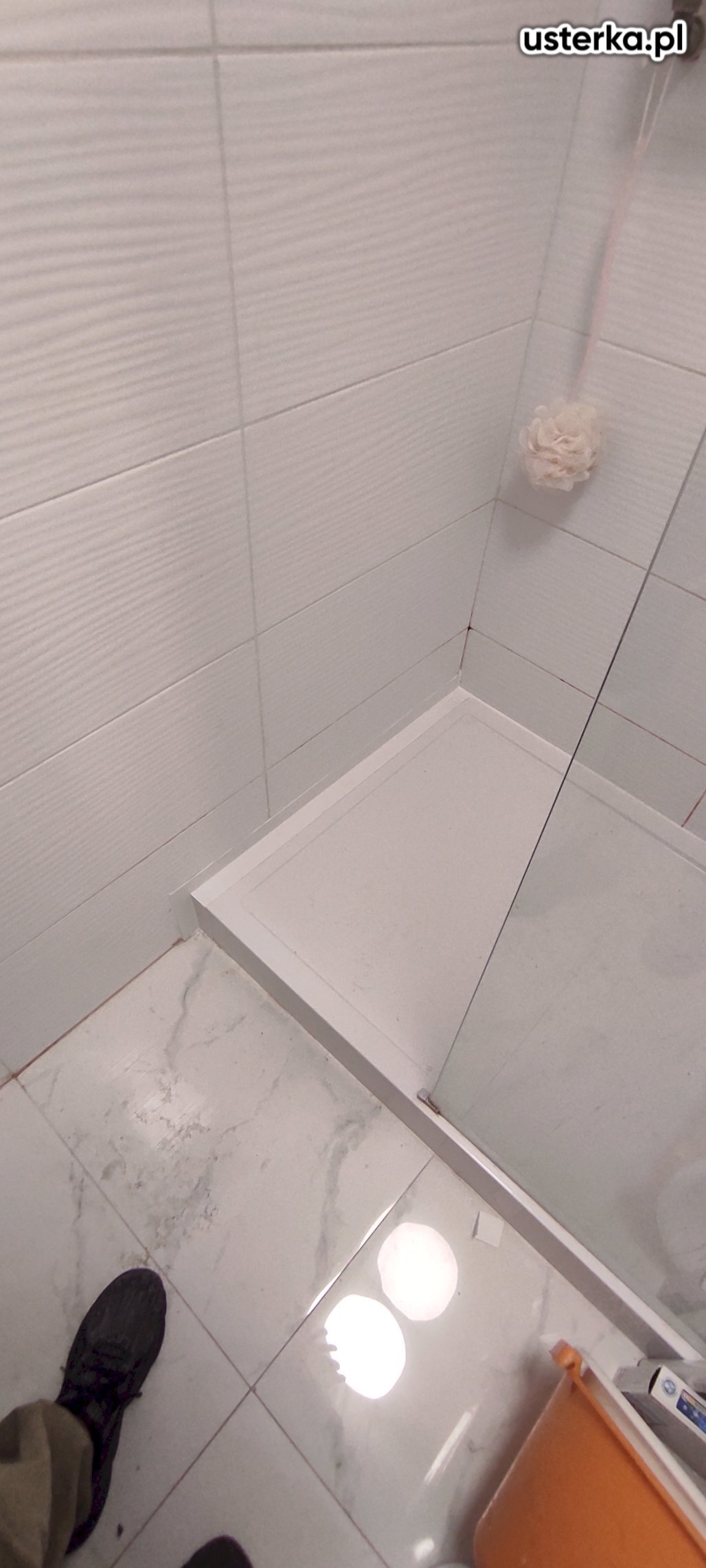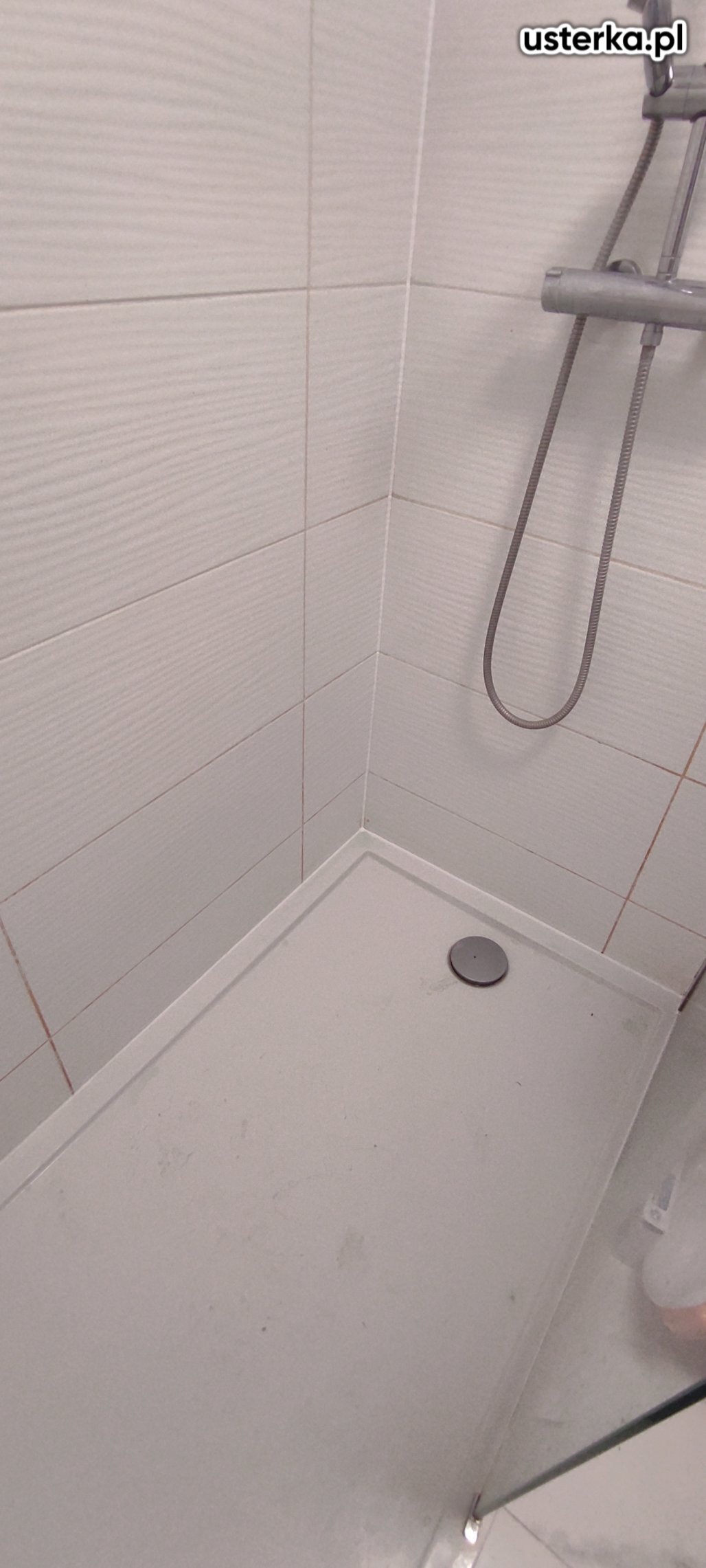 Po demontażu kabiny prysznicowej nie stwierdzono wycieków. Wymieniono kątownik i wykonano uszczelnienie silikonem.