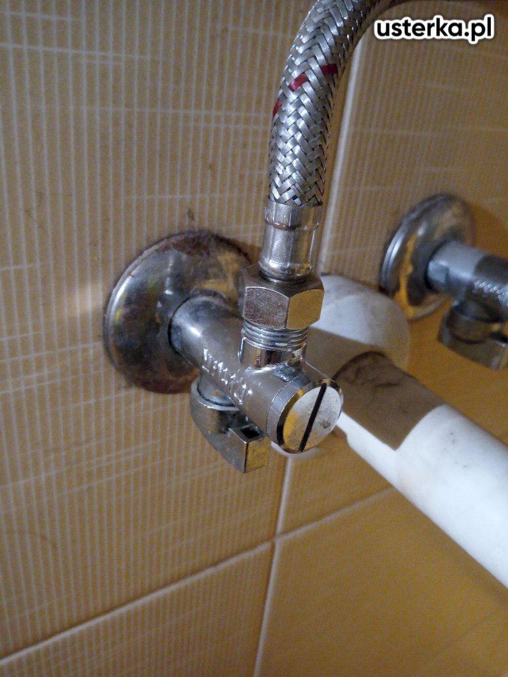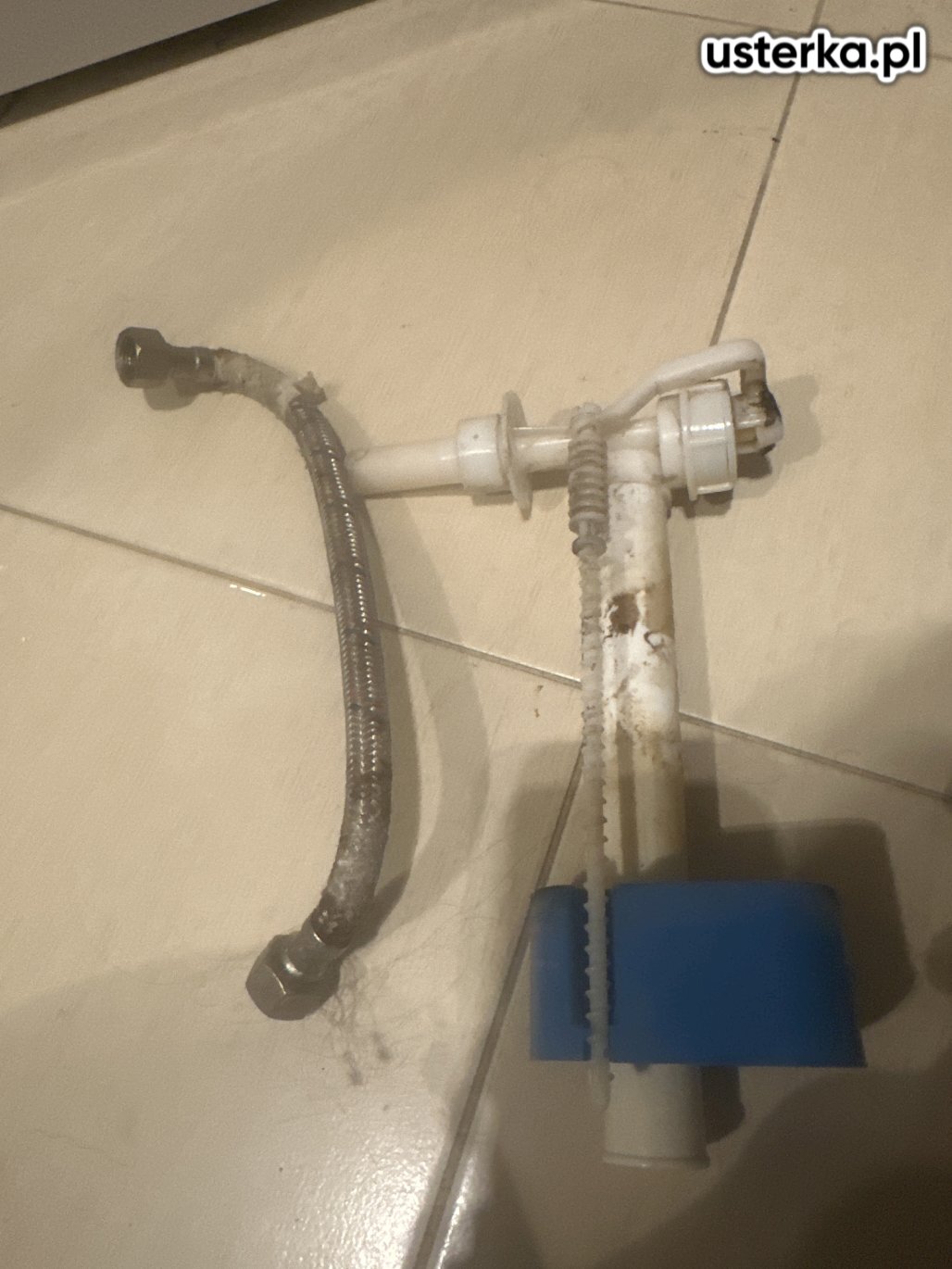 Wymieniono zawór przelotowy i wąż, co wyeliminowało przeciek wody do muszli.