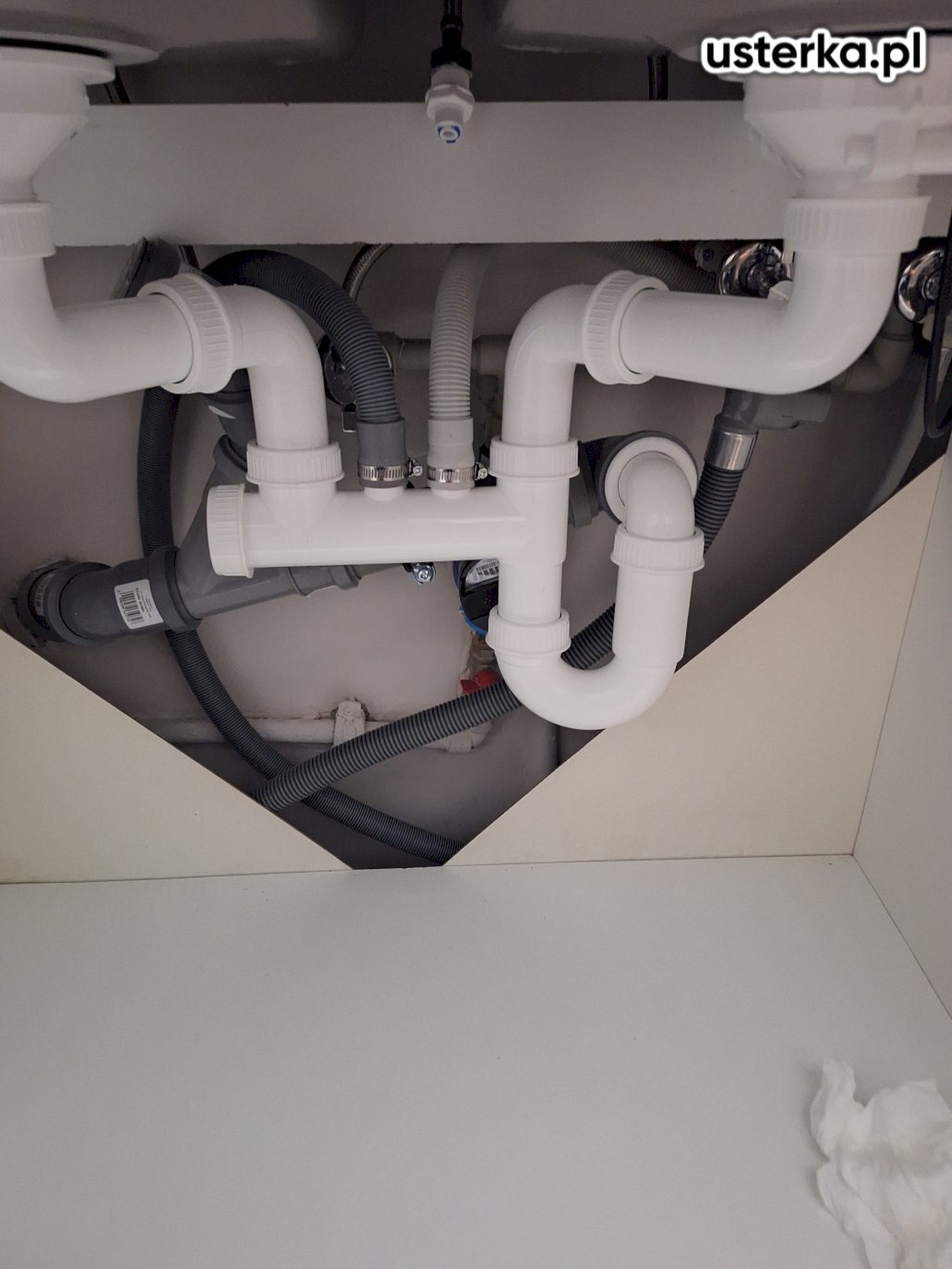 Woda stała w zlewozmywaku z powodu zapchanego syfonu. Na życzenie klienta wymieniono syfon na nowy, a przy okazji wyczyszczono rurę odpływową. Po wykonaniu prac odpływ działa prawidłowo.