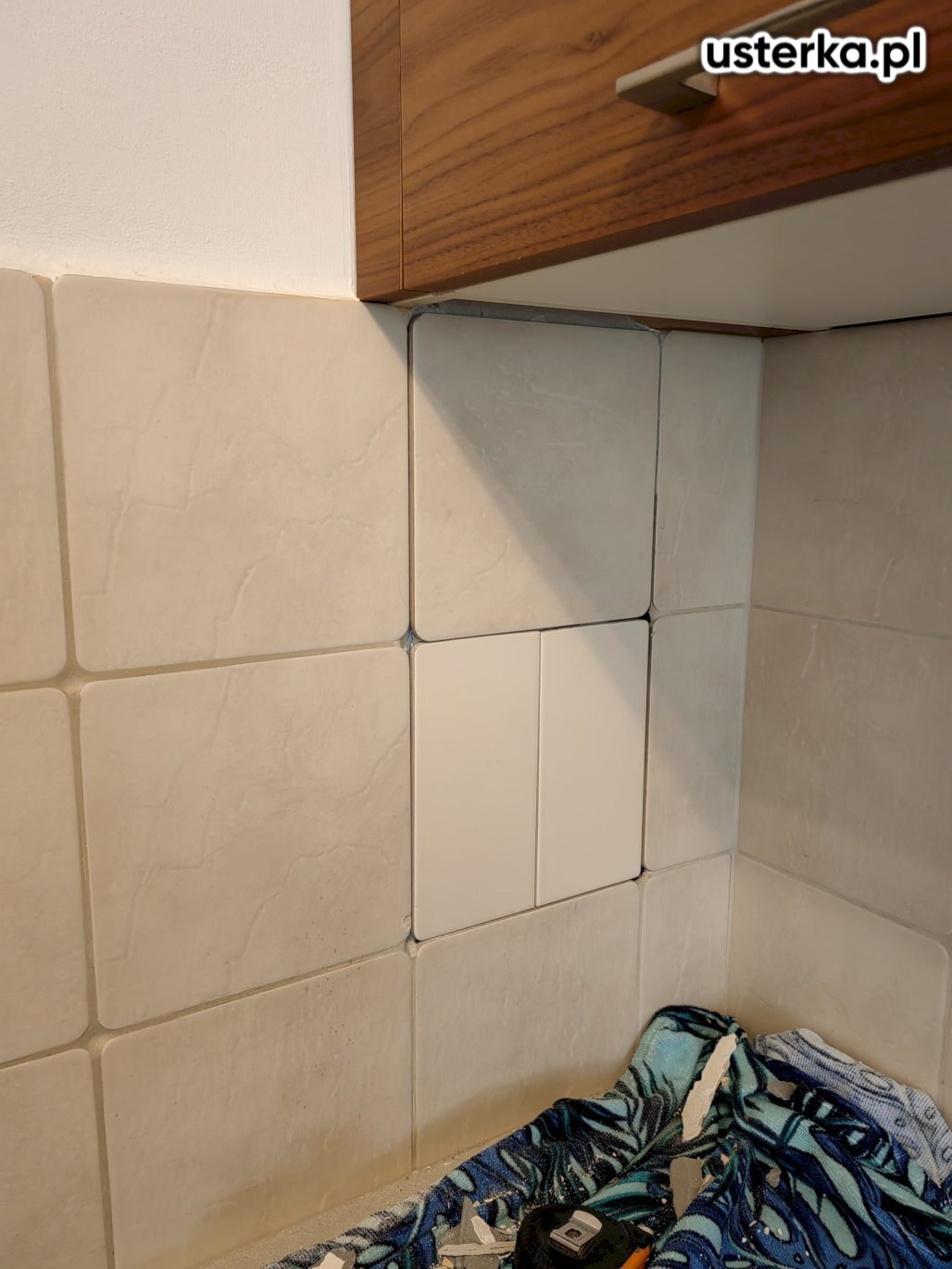 Wykonałem montaż magnesów w otworze rewizyjnym w kuchni oraz przygotowałem klapę rewizyjną z płytek.
