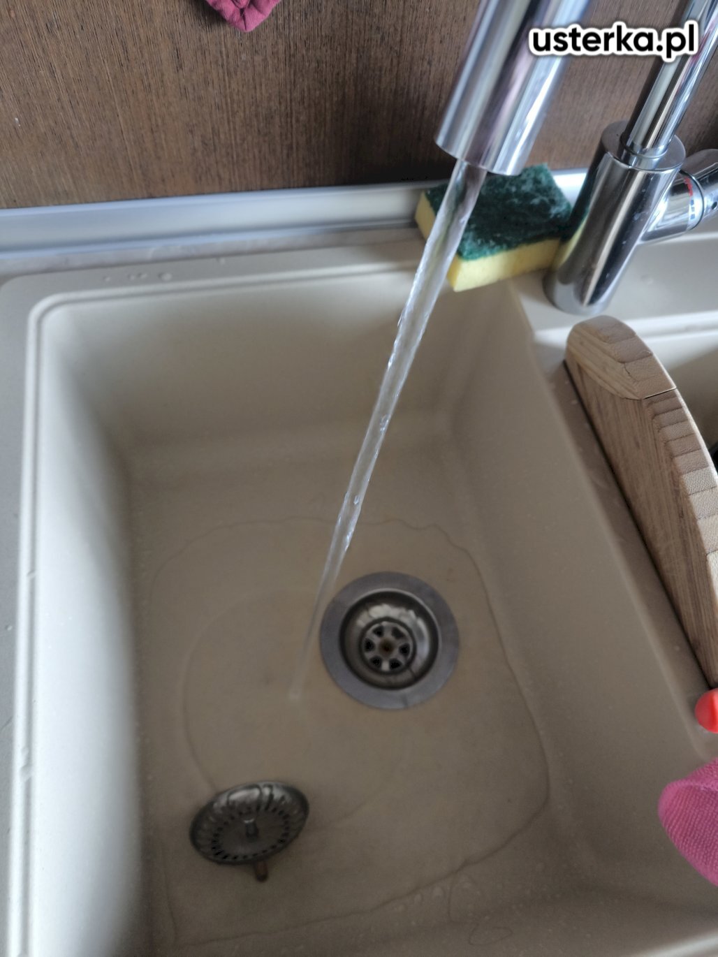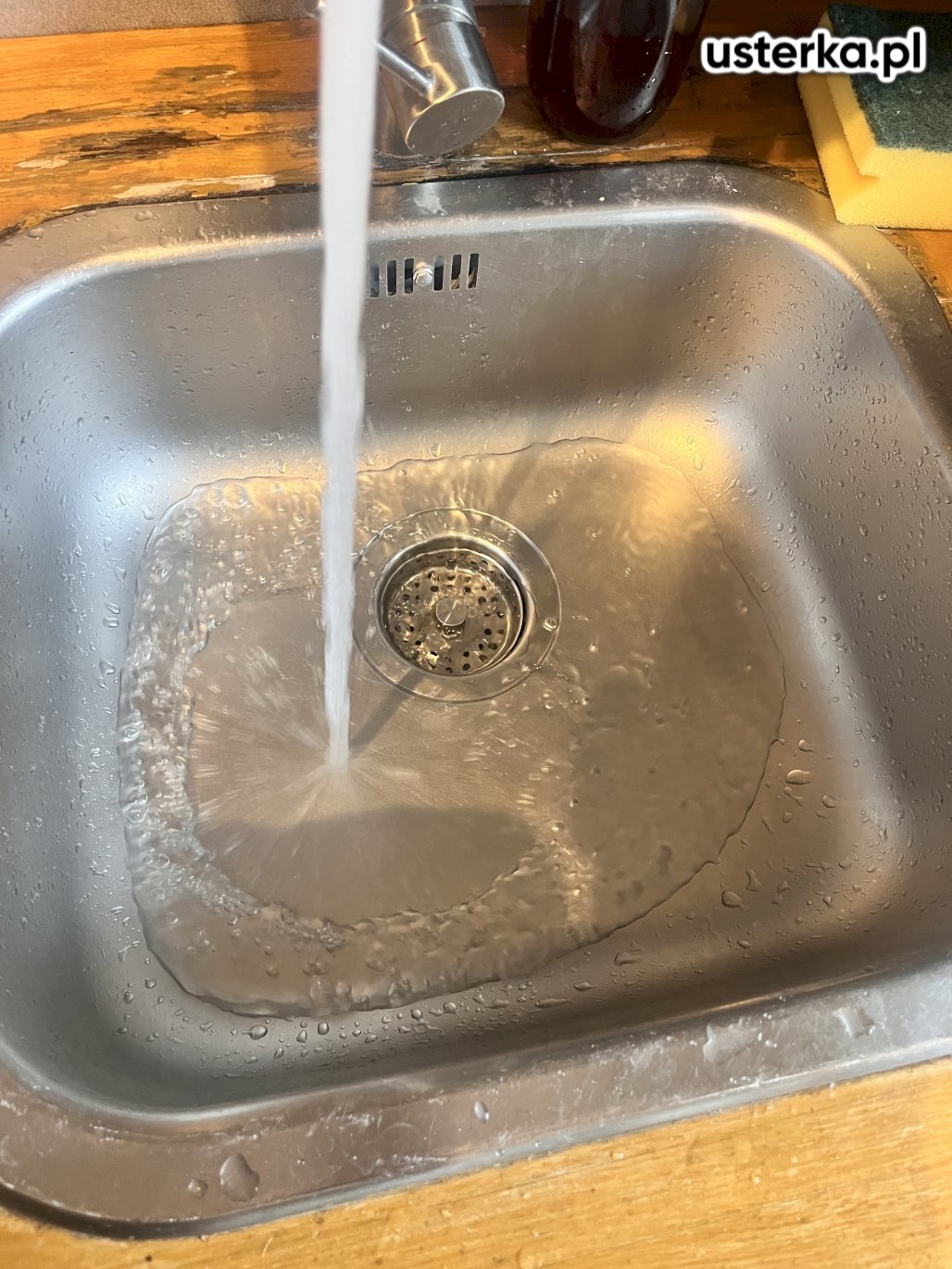 Udrożniono zatkany odpływ w kuchni, wyczyszczono instalację oraz wymieniono uszczelki i sitko na nowe, dostarczone przez klientkę.