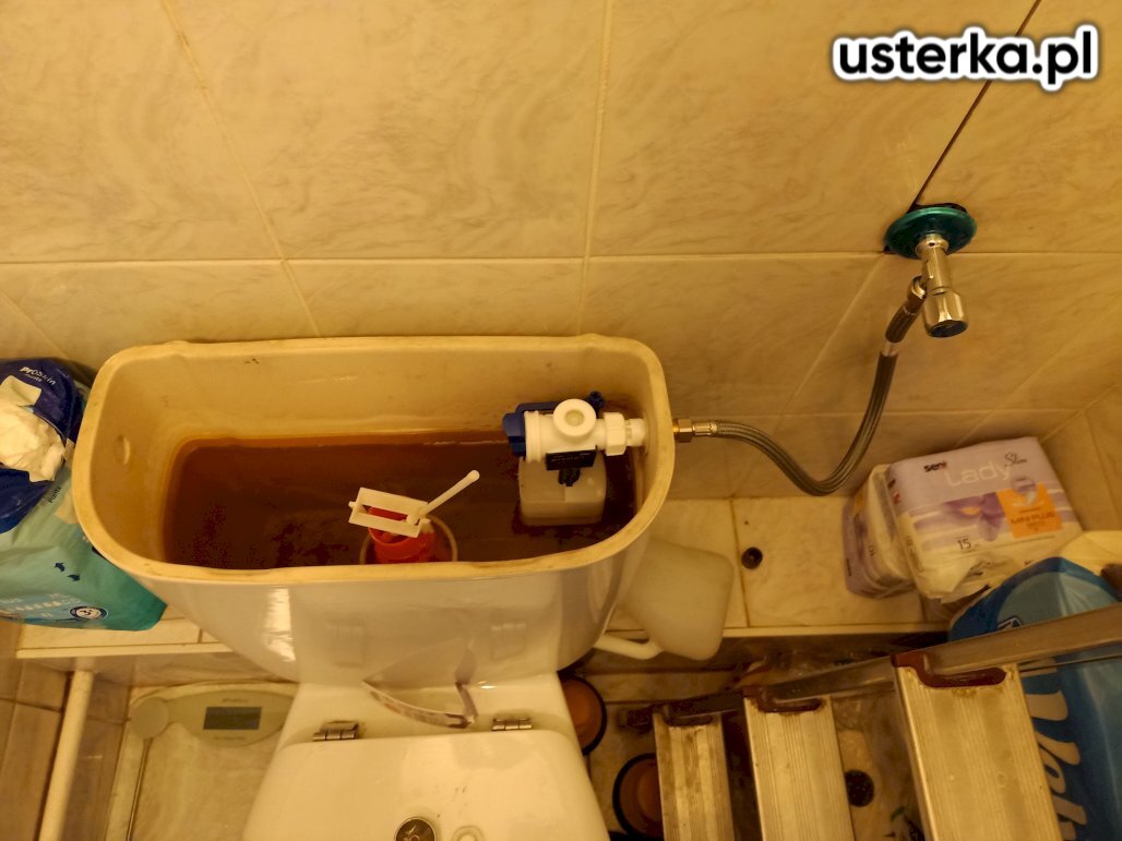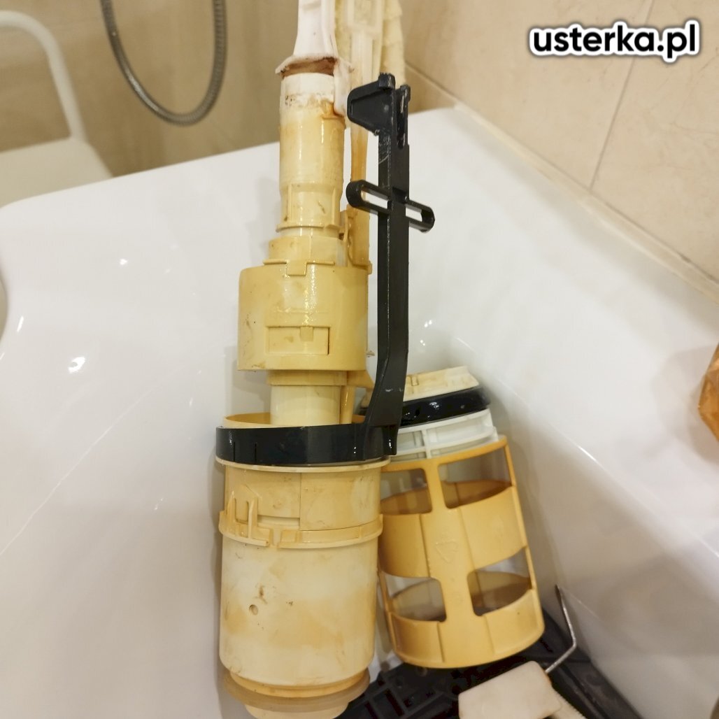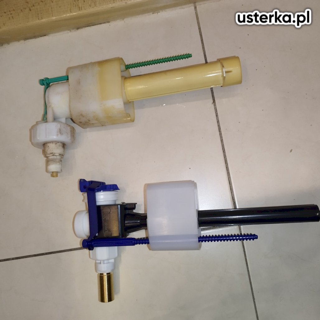 Wymieniono zawór napełniający i spustowy w spłuczce WC oraz zawór doprowadzający wodę.