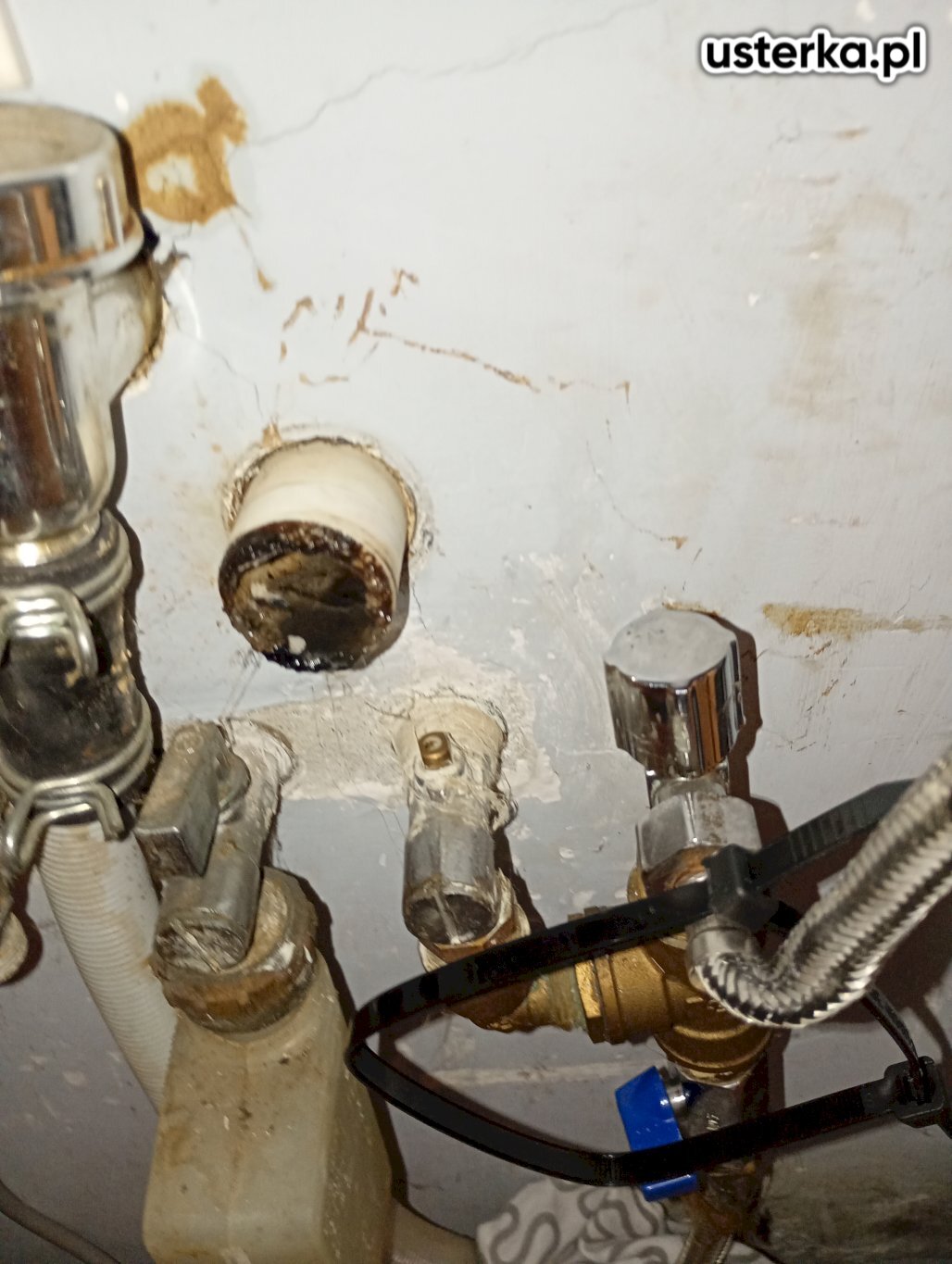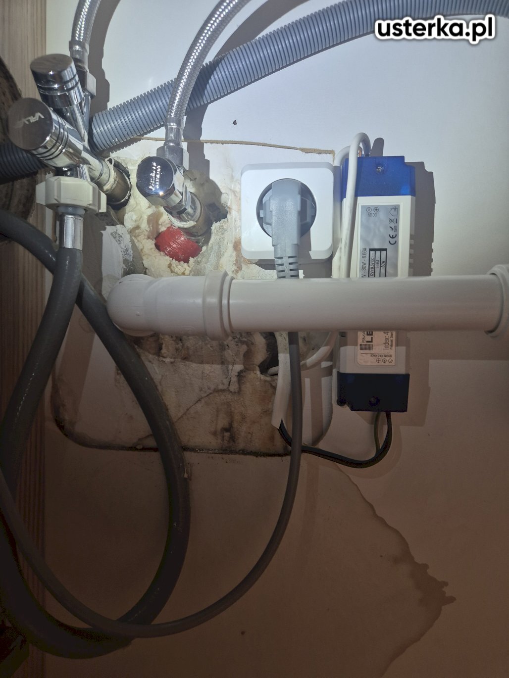 Stwierdzono, że woda przedostaje się do mieszkania pionem od sąsiadów z wyższej kondygnacji.