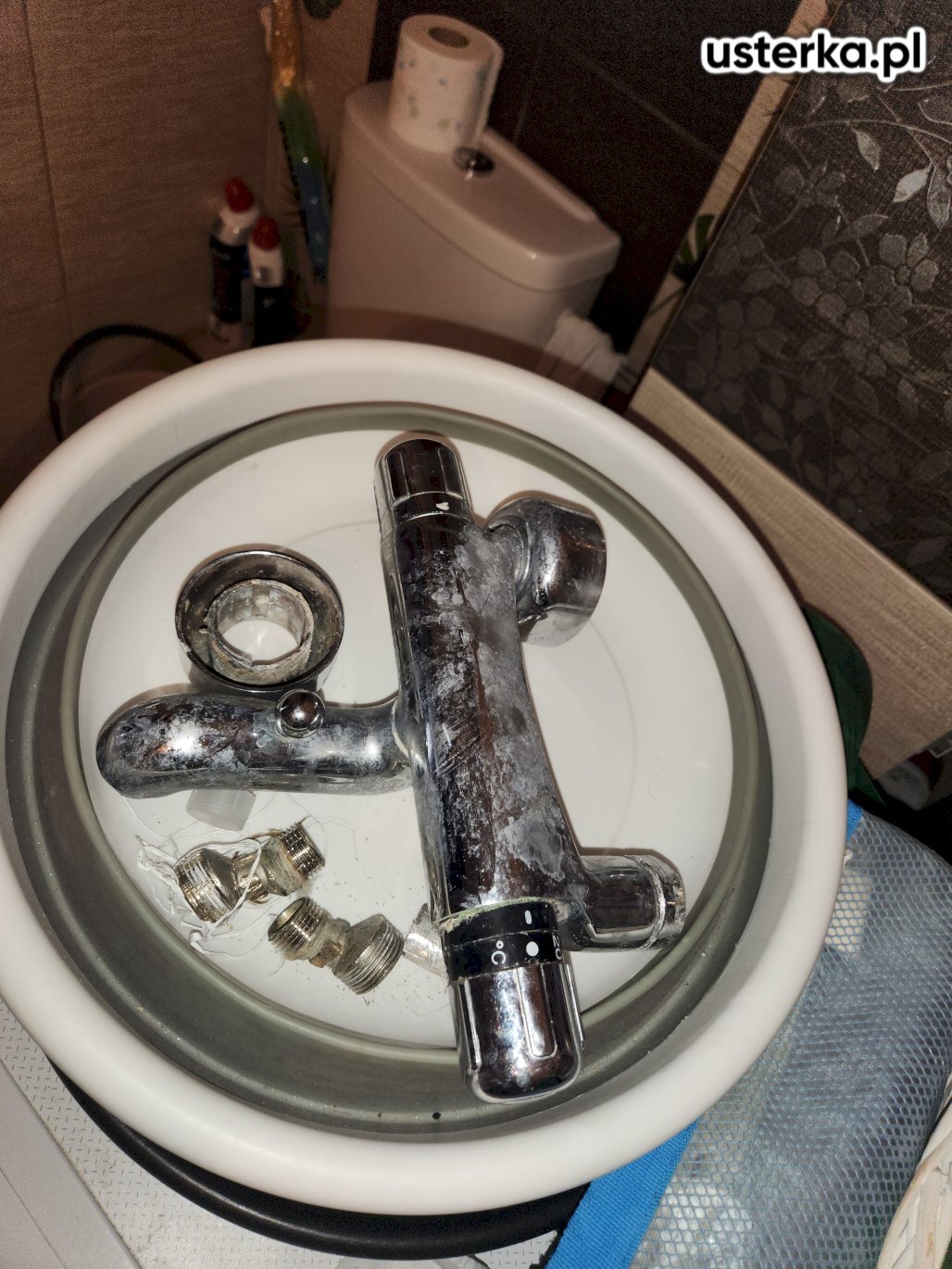 Wymiana baterii wannowej wraz z demontażem starych krzywek i montażem nowej baterii.