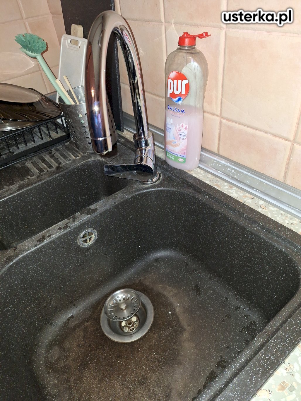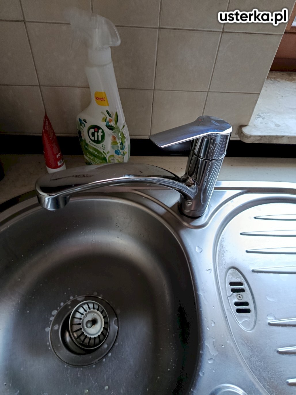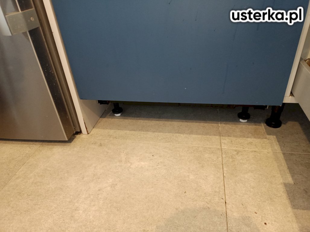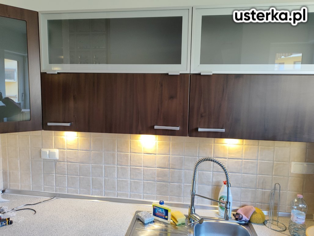 Usunięcie nieszczelności syfonu i baterii kuchennej, regulacja drzwi przesuwnych oraz silikonowanie szczeliny między blatem a ścianą.