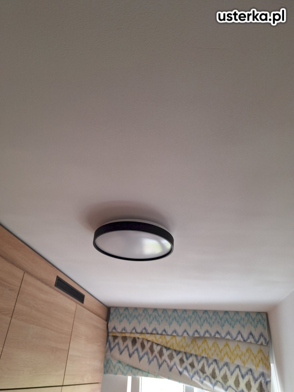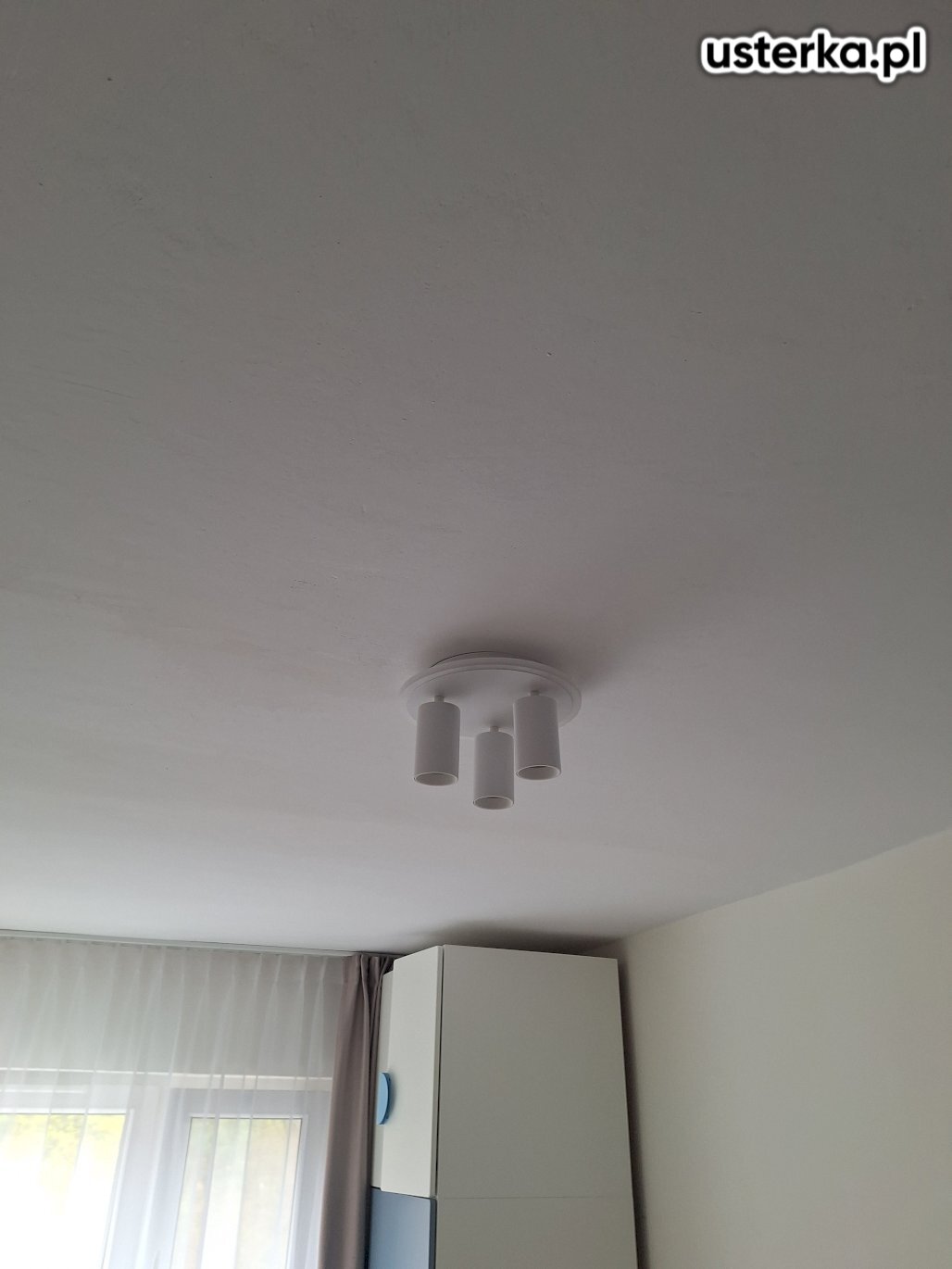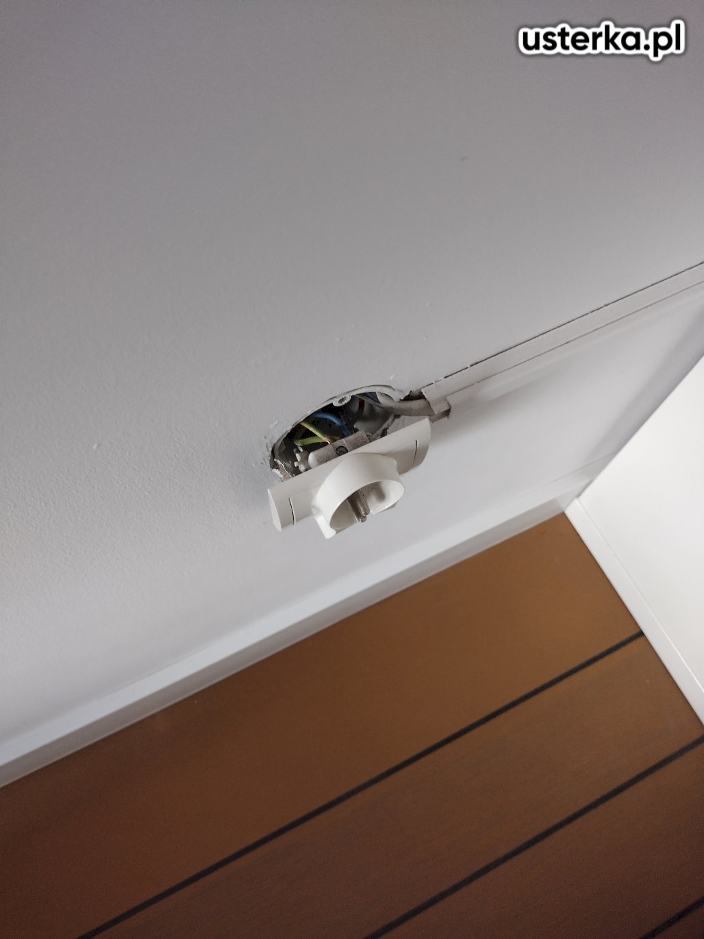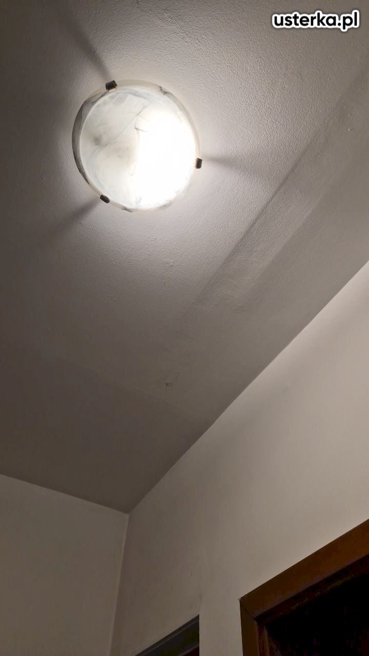 Uszkodzony transformator lampy sufitowej – usterki nie da się usunąć na miejscu. Zakupiono i wymieniono zawór napełniający w spłuczce podtynkowej.
