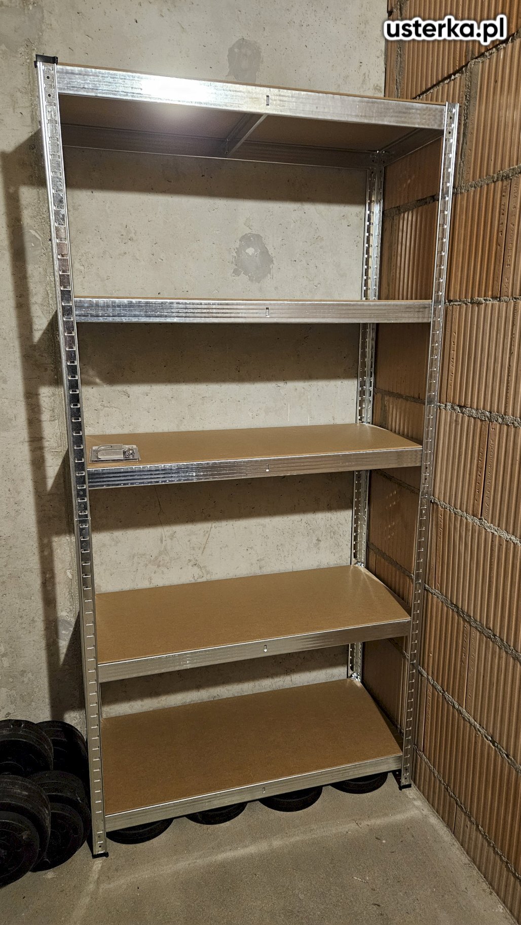 Wykonano montaż regału, zamocowano skobel do kłódki oraz przykręcono płytę wiórową do drzwi w piwnicy.