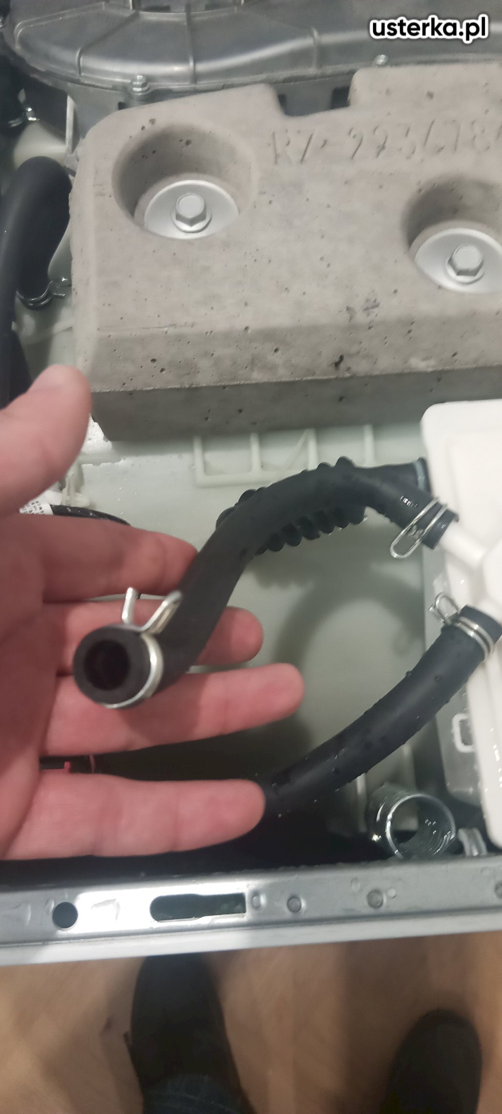 Wymiana nieszczelnego zaworu doprowadzającego wodę do pralki.