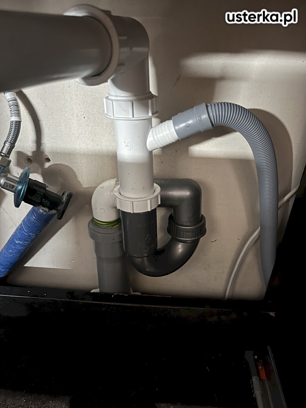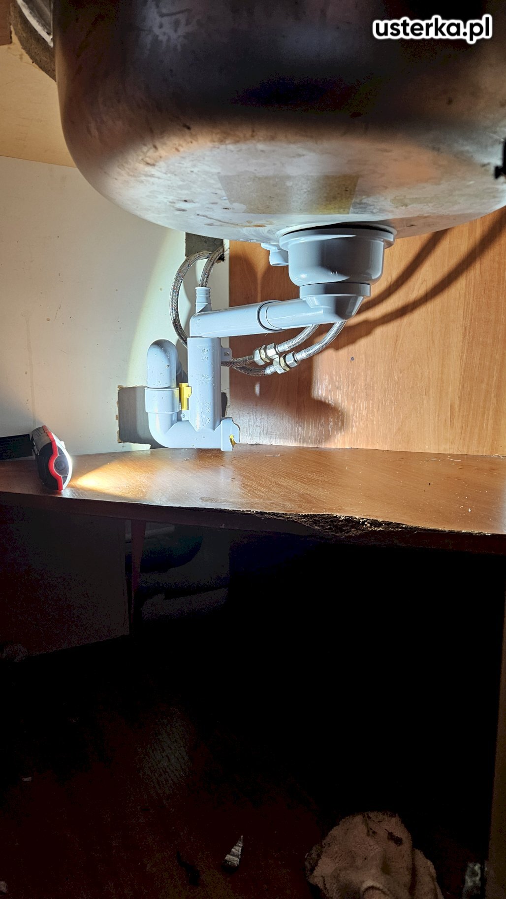 Zamontowałem zdemontowany syfon i dokładnie dokręciłem wszystkie połączenia, eliminując wyciek.