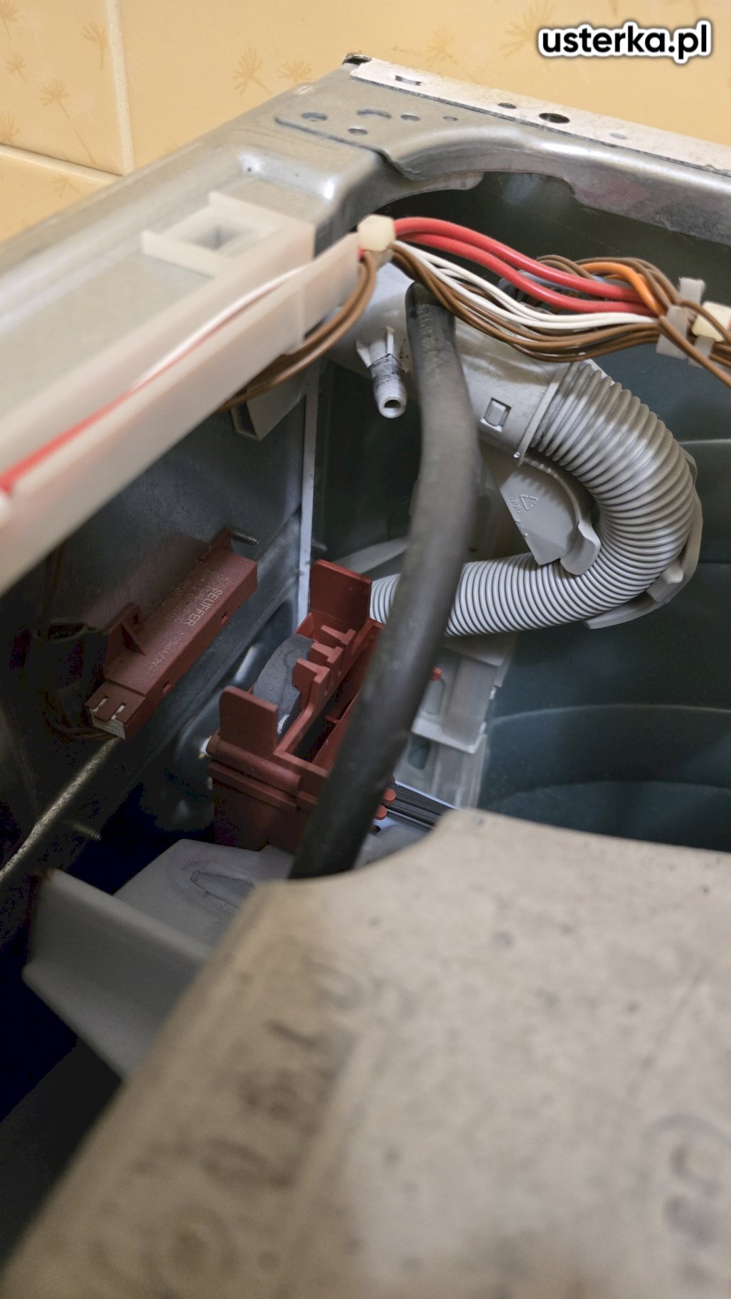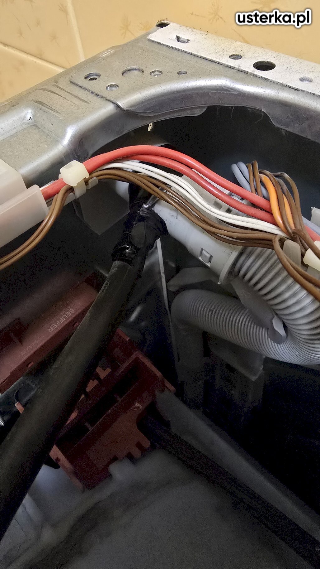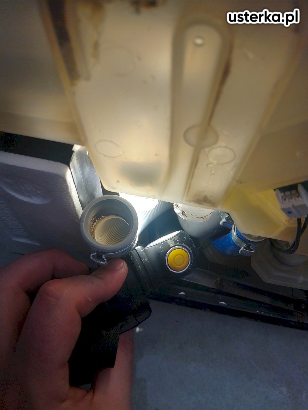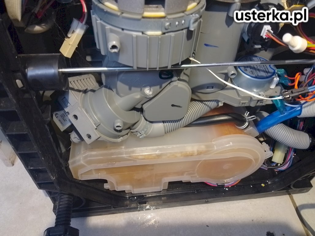 Montaż zaworu typu „kombajn” z redukcją oraz wymiana węża odpływowego w zmywarce Ariston.