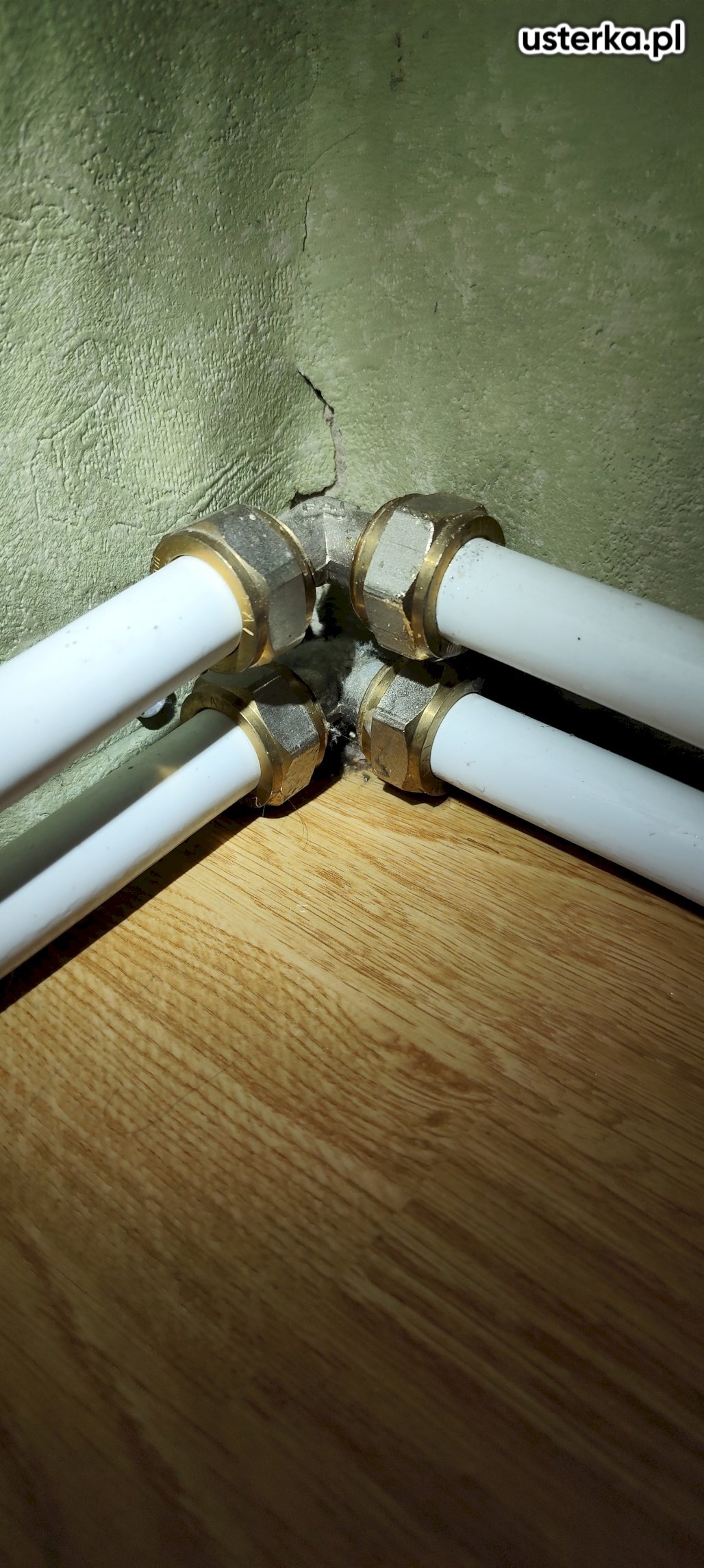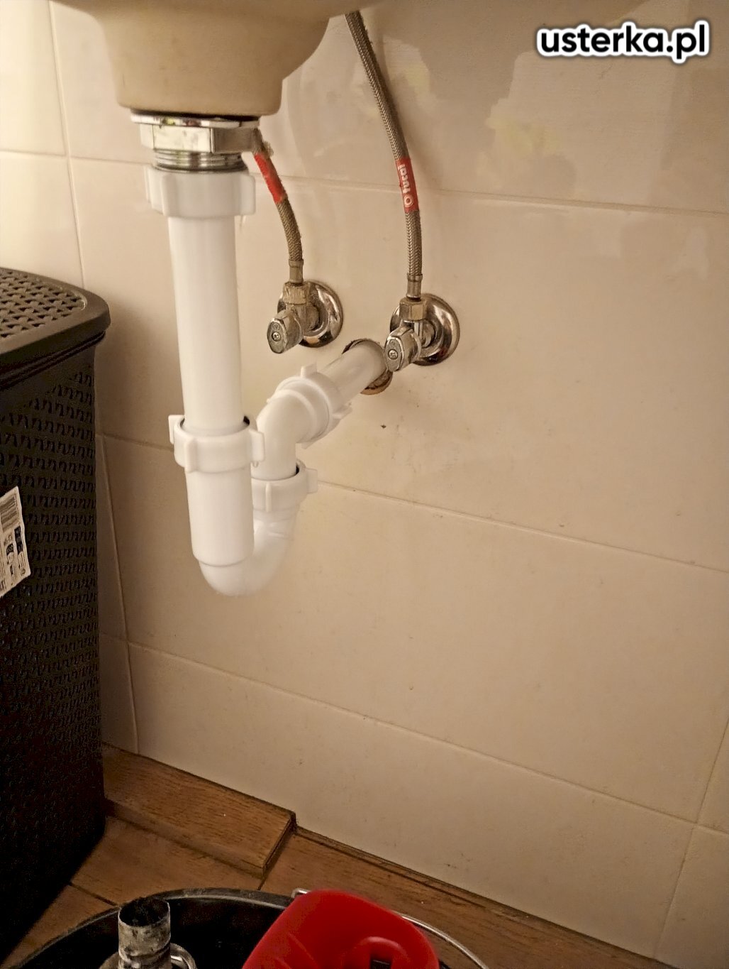 Podczas wymiany zaworów pod zlewem doszło do uszkodzenia rurki przy kolanku ściennym. Zamontowałem nowe kolanko, wymieniłem zawory i podłączyłem wężyki. Całość została sprawdzona — nie stwierdzono żadnych nieszczelności.