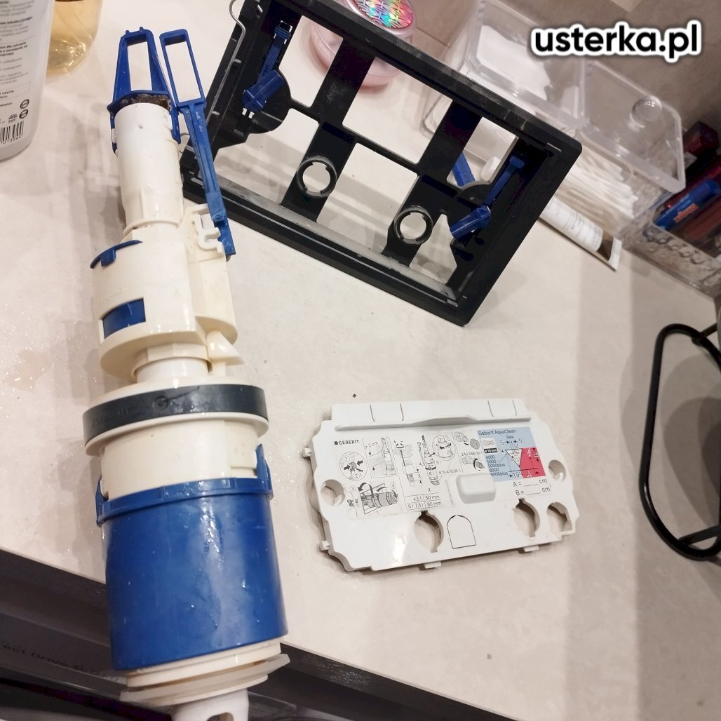 Wymieniono zawór napełniający w spłuczce podtynkowej, co wyeliminowało problem ciągłego przecieku wody do muszli.