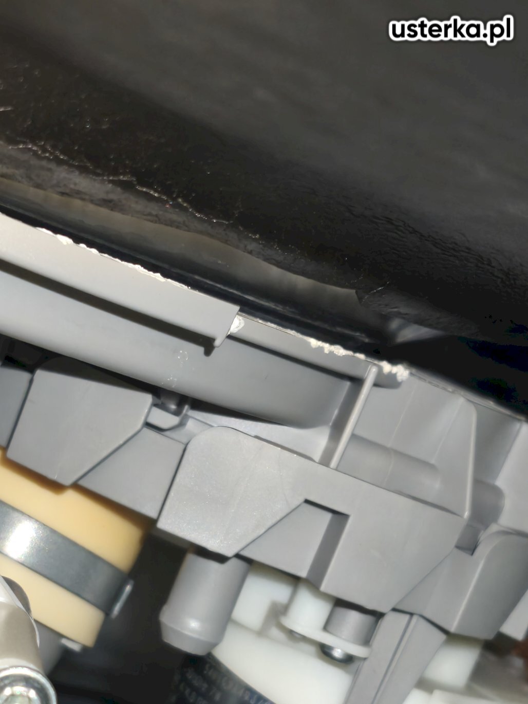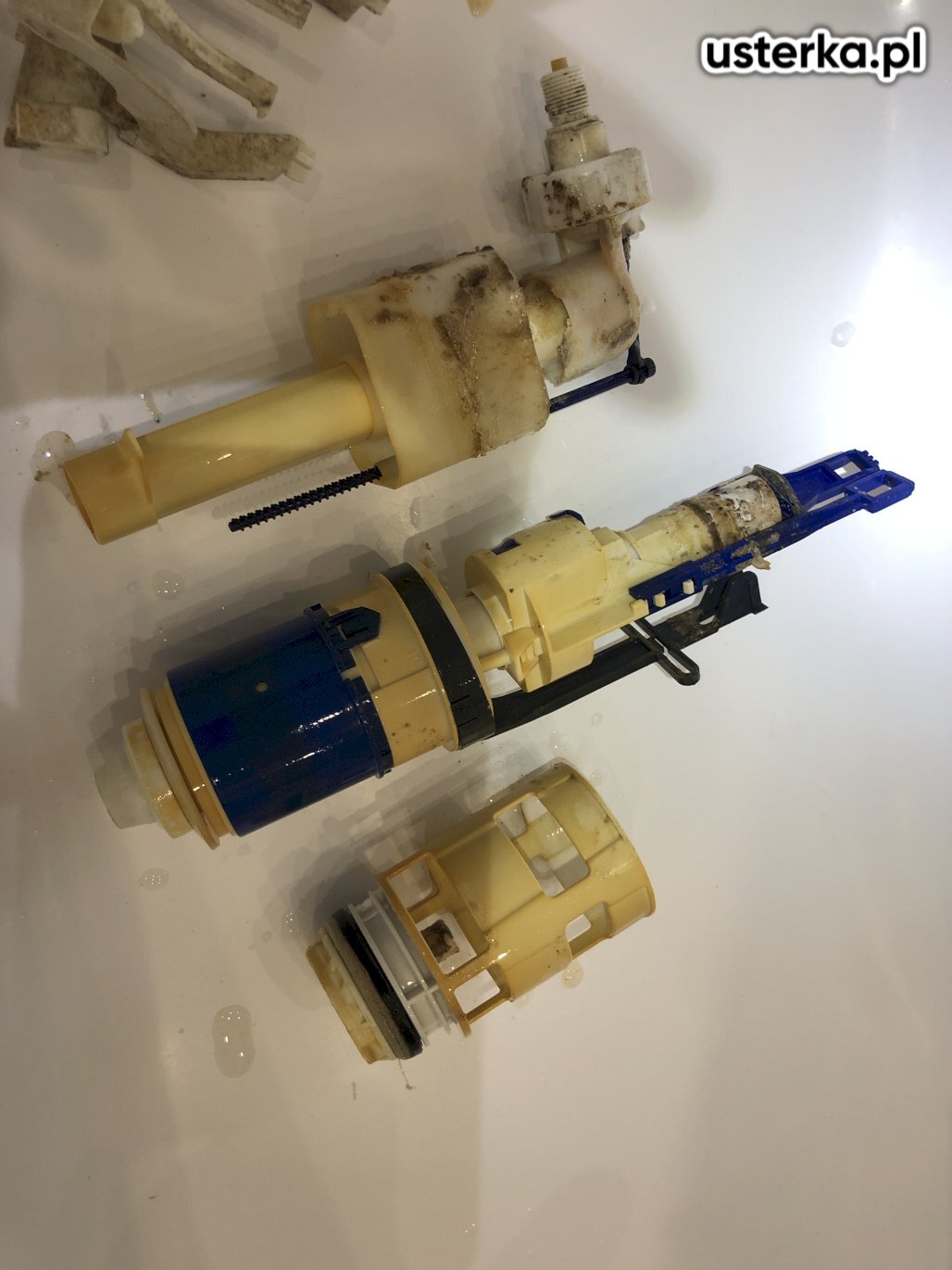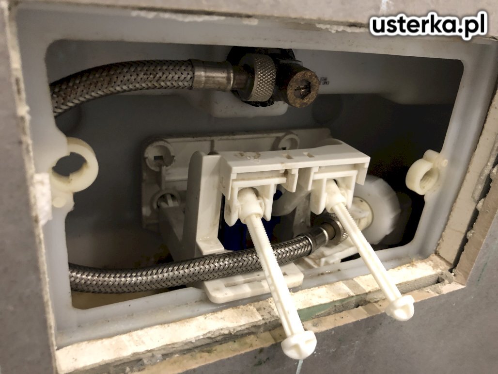 Wyczyszczono spłuczkę podtynkową Cersanit z osadów kamienia, usuwając przyczynę przecieku do muszli.