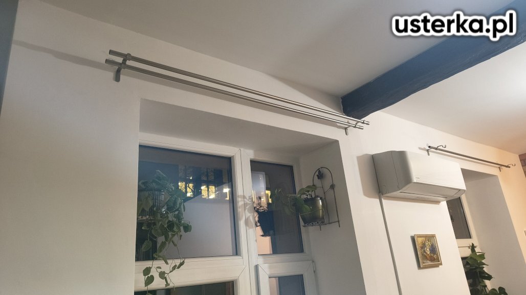 Montaż dwóch karniszy ściennych.
