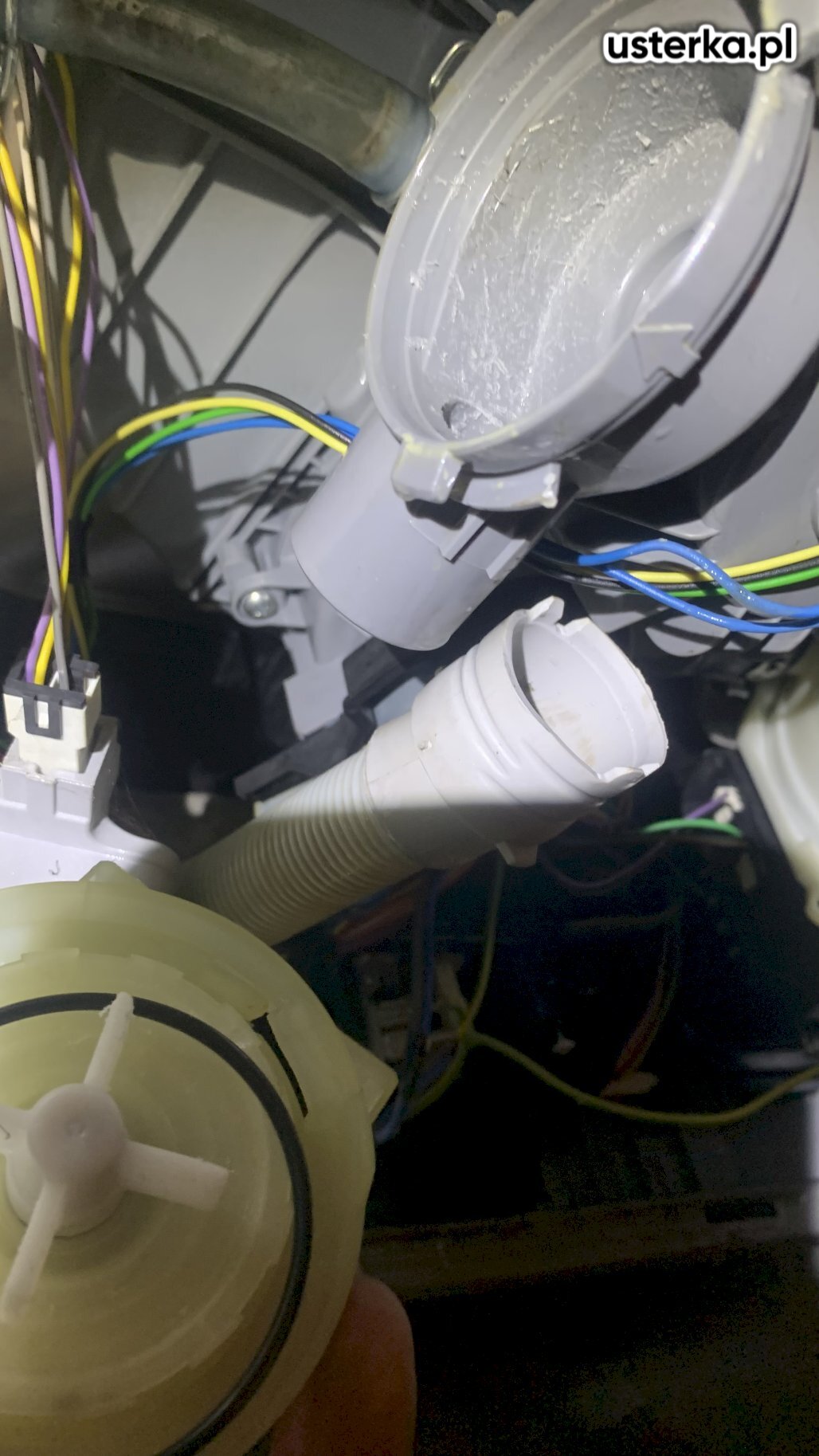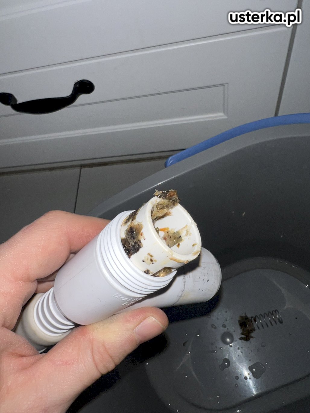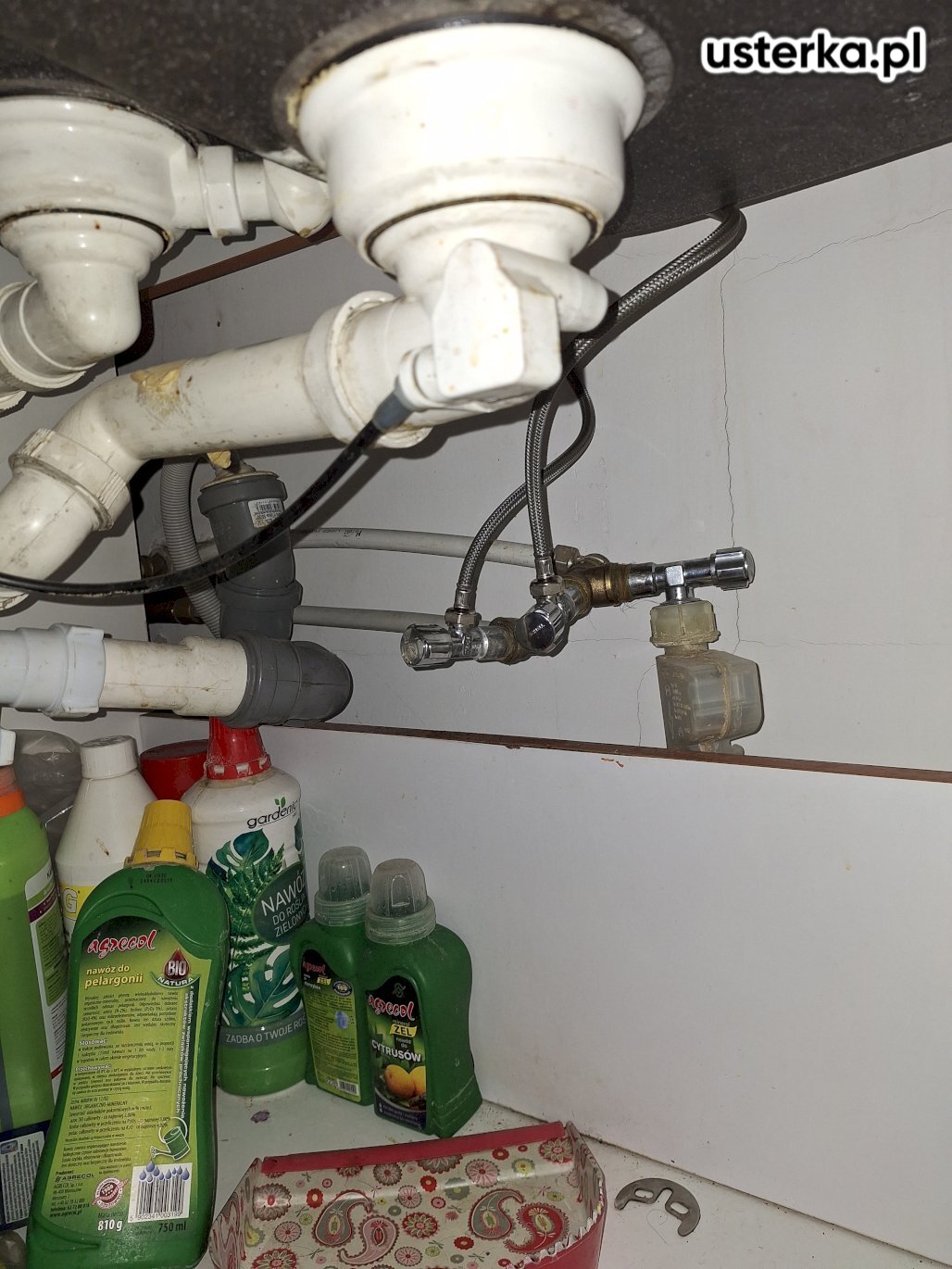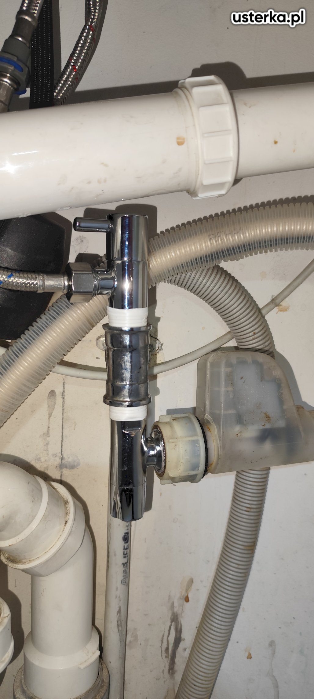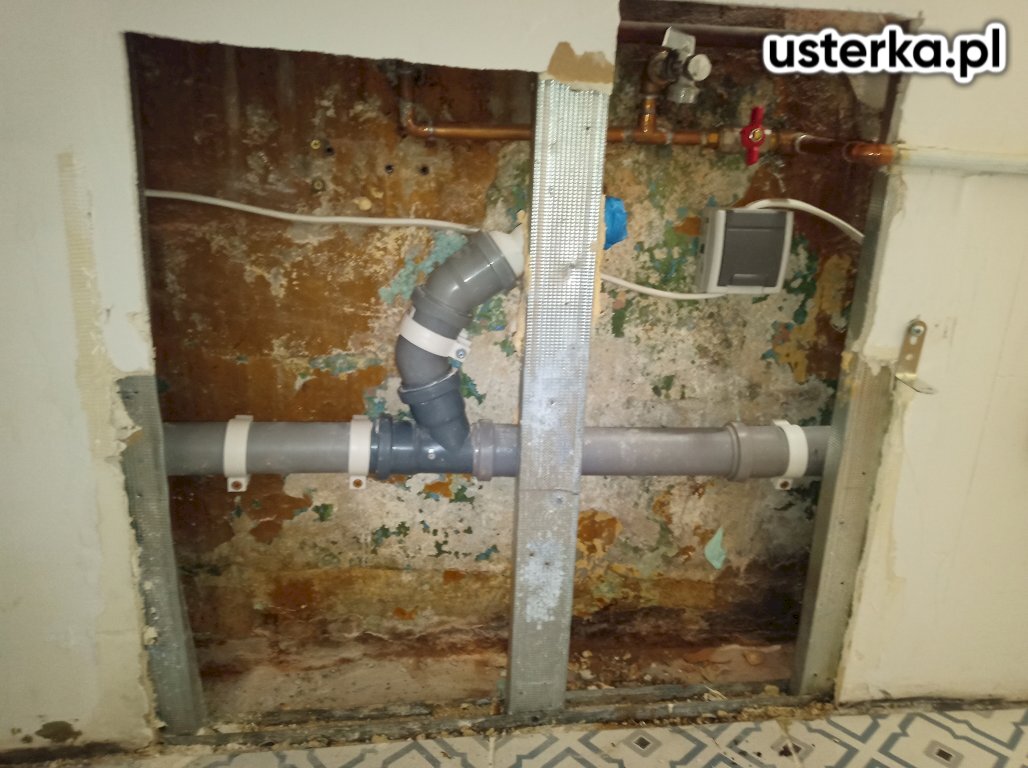 Wymieniłem mufę miski klozetowej i zawór napełniający spłuczkę oraz naprawiłem połączenie węża odpływowego pralki.