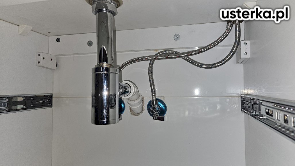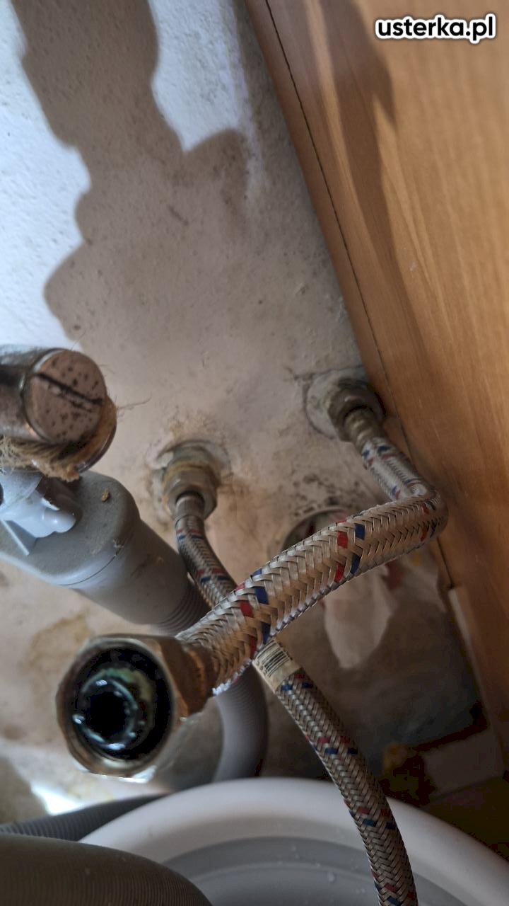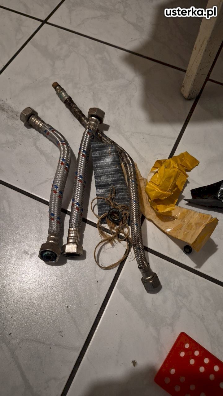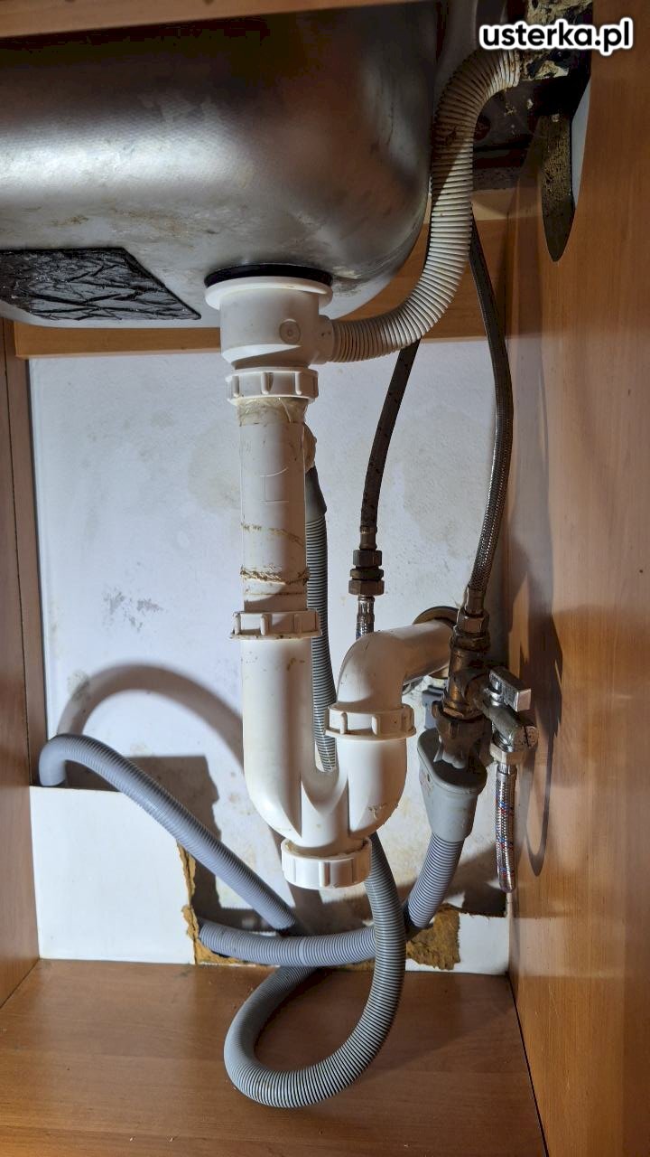 Pod zlewem w kuchni stwierdzono przeciekający zawór ciepłej wody oraz pęknięty wężyk. Oba elementy zostały wymienione na nowe. Po zakończeniu prac instalacja jest szczelna i działa prawidłowo.
