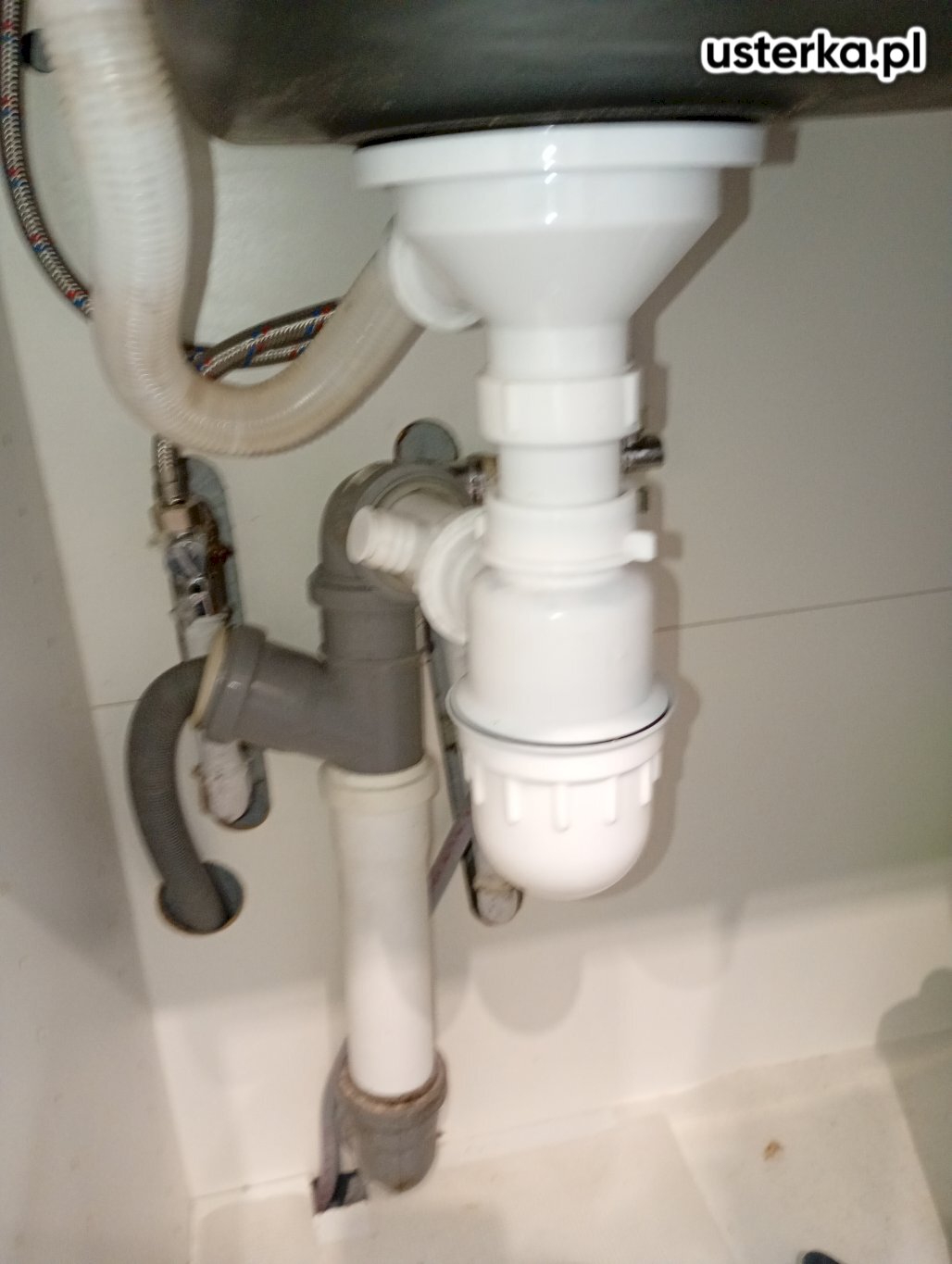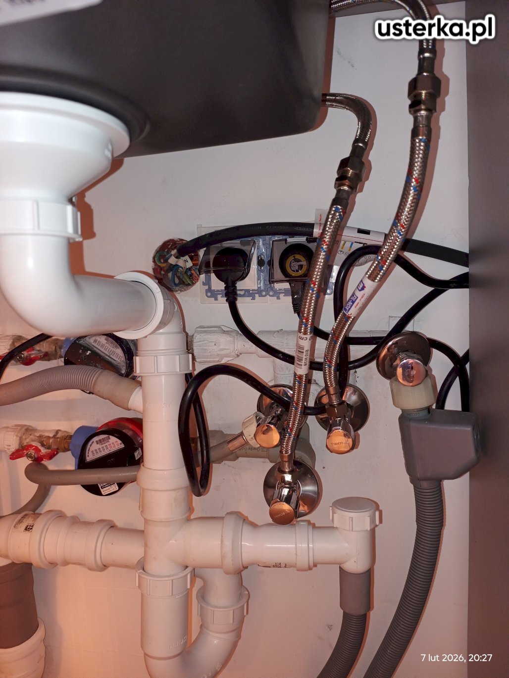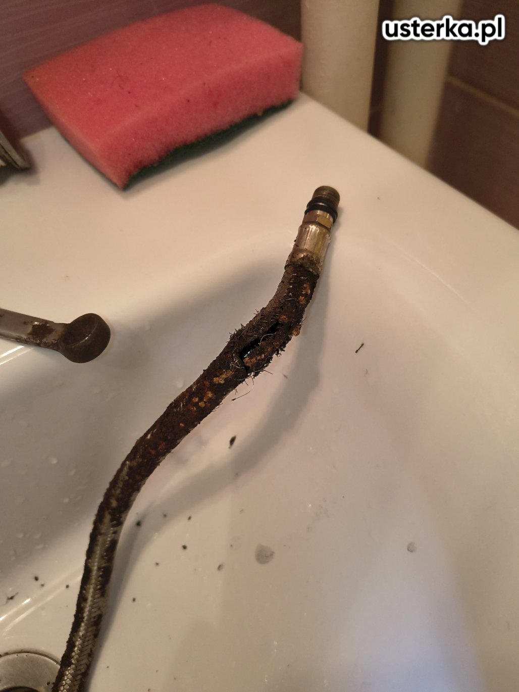Pod zlewem w kuchni stwierdzono przeciekający zawór ciepłej wody oraz pęknięty wężyk. Oba elementy zostały wymienione na nowe. Po zakończeniu prac instalacja jest szczelna i działa prawidłowo.