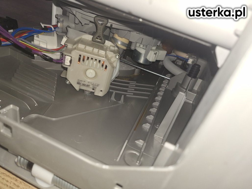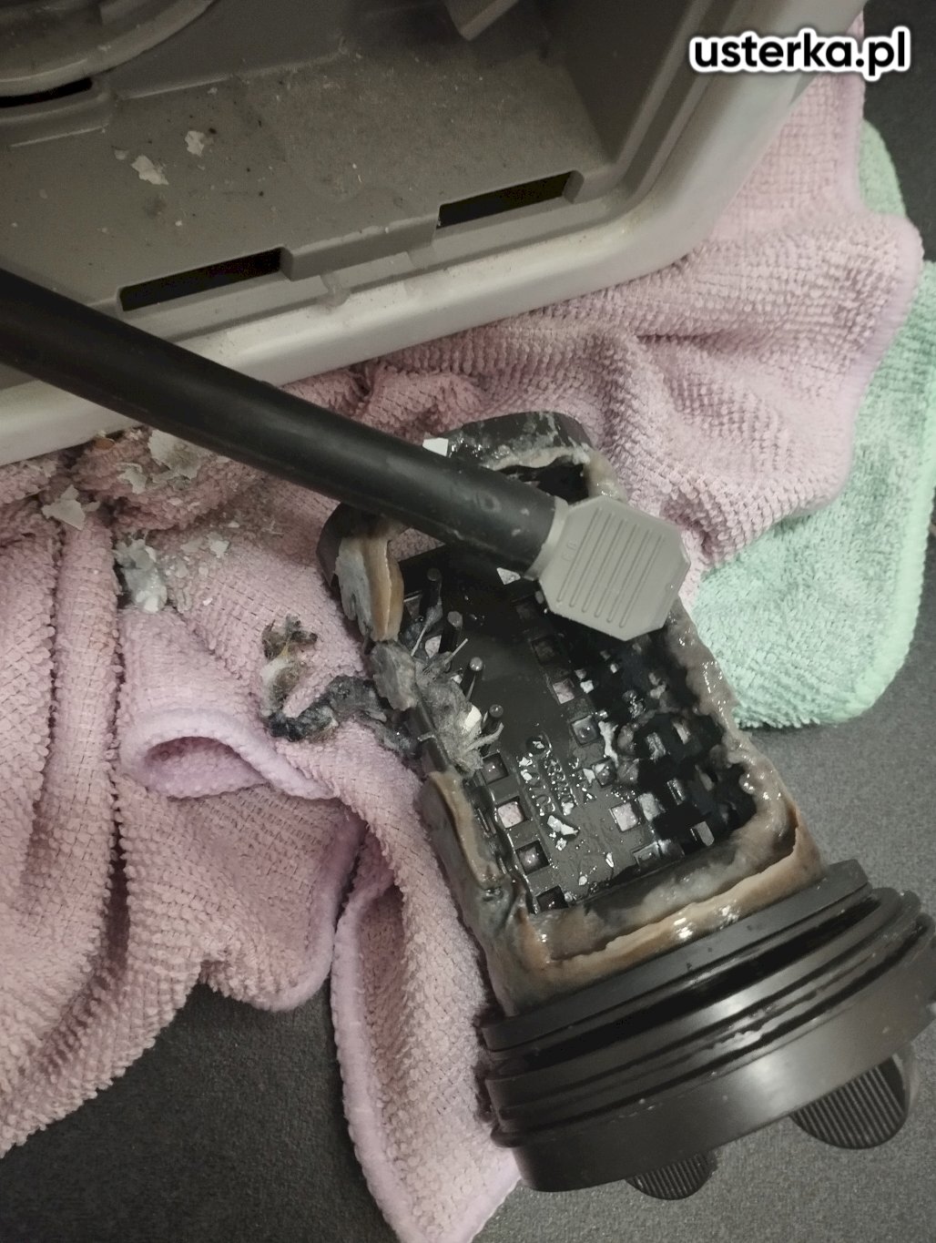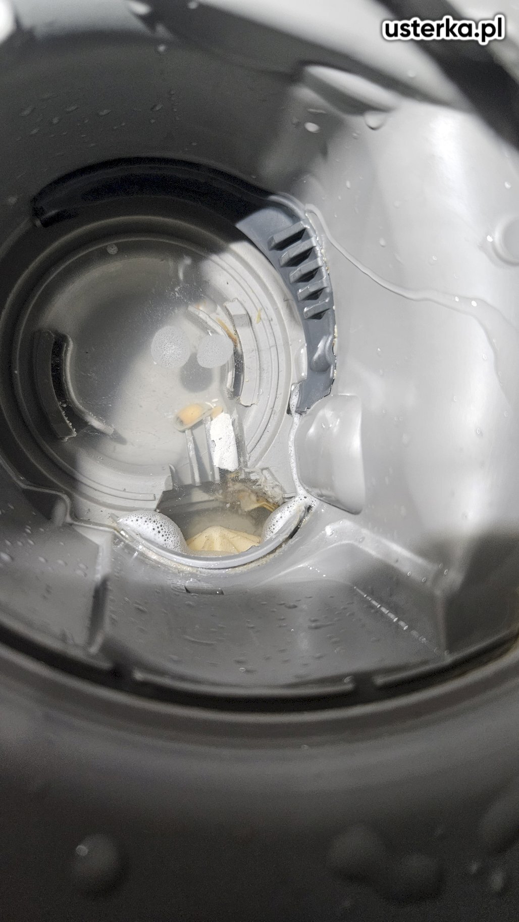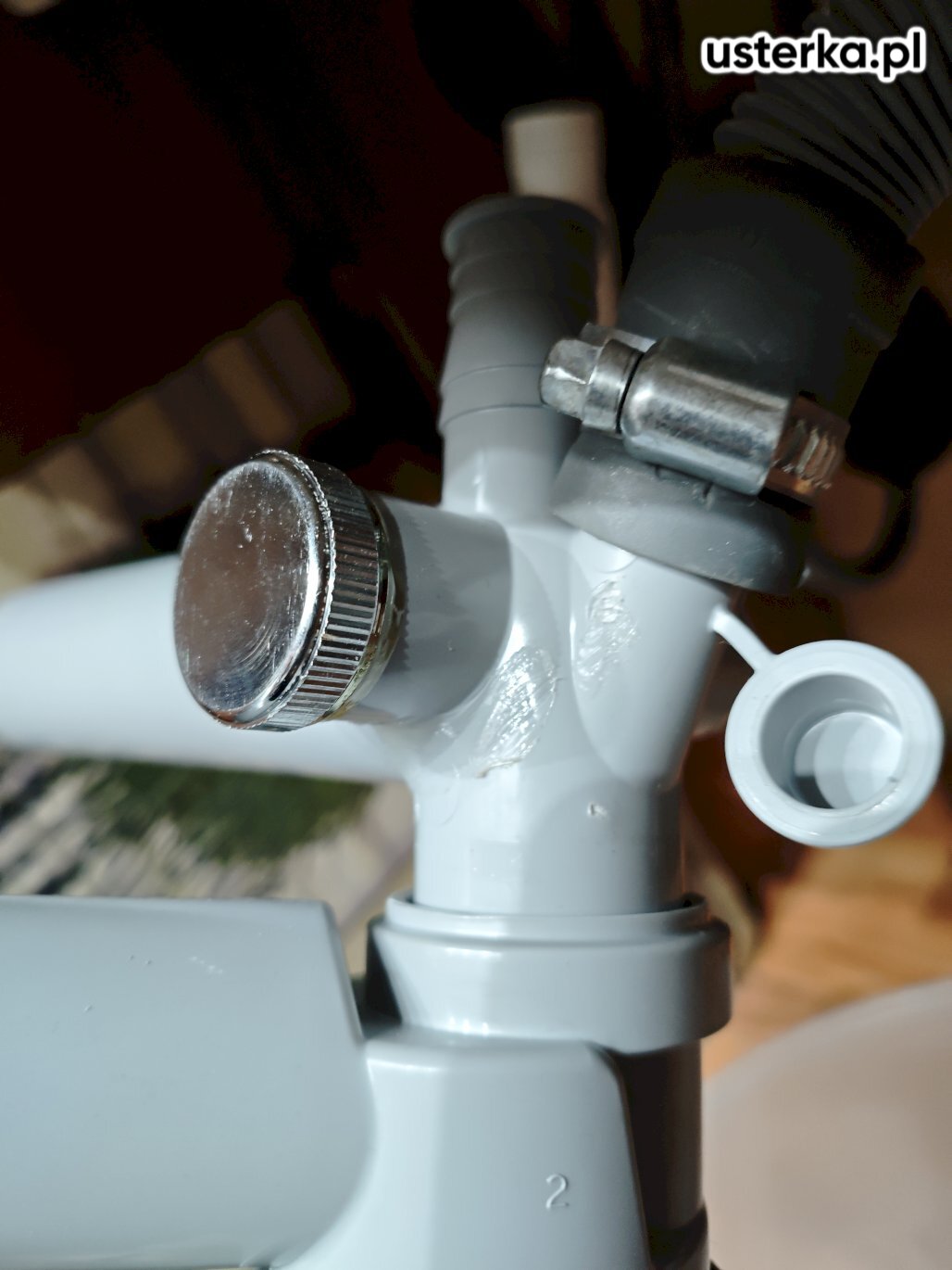 Podczas diagnozy zdemontowano syfon i stwierdzono obecność niezaślepionego króćca, przez który wyciekała woda. Na wskazanym elemencie zamontowano korek z uszczelką, a następnie ponownie złożono syfon.