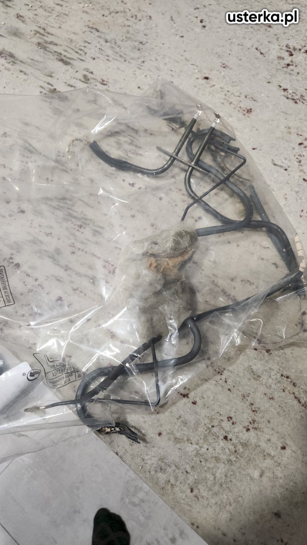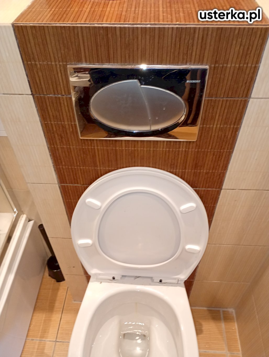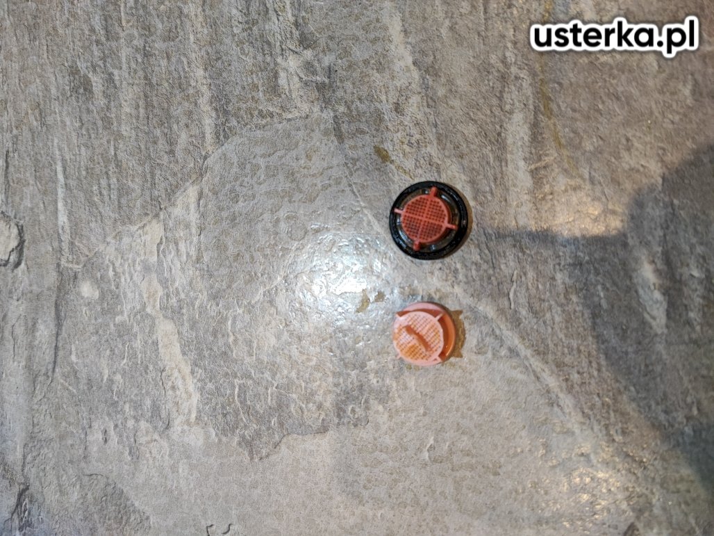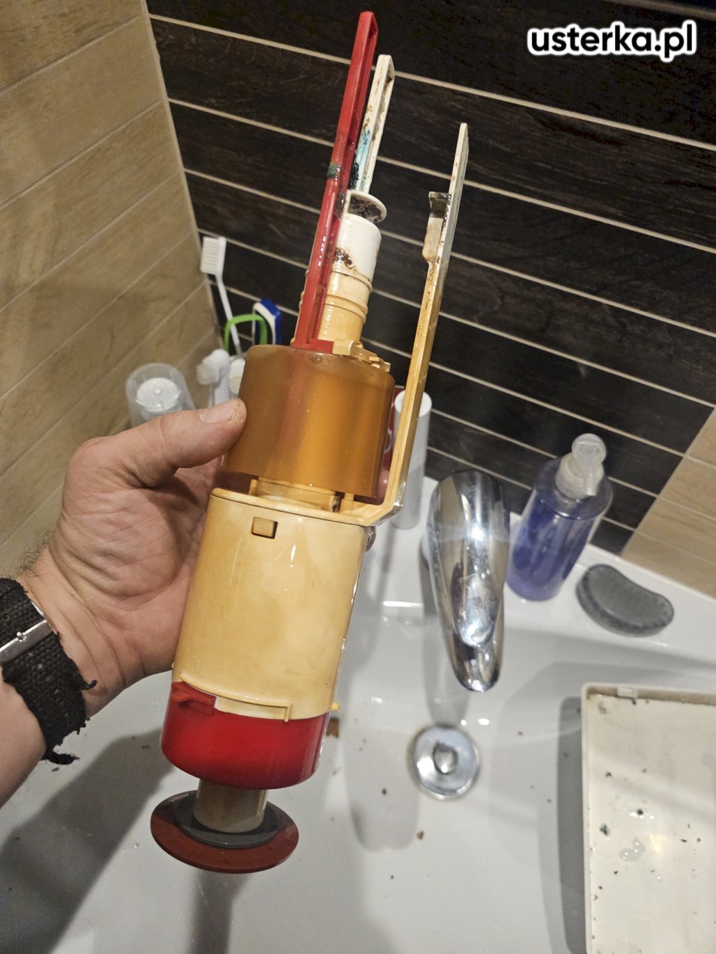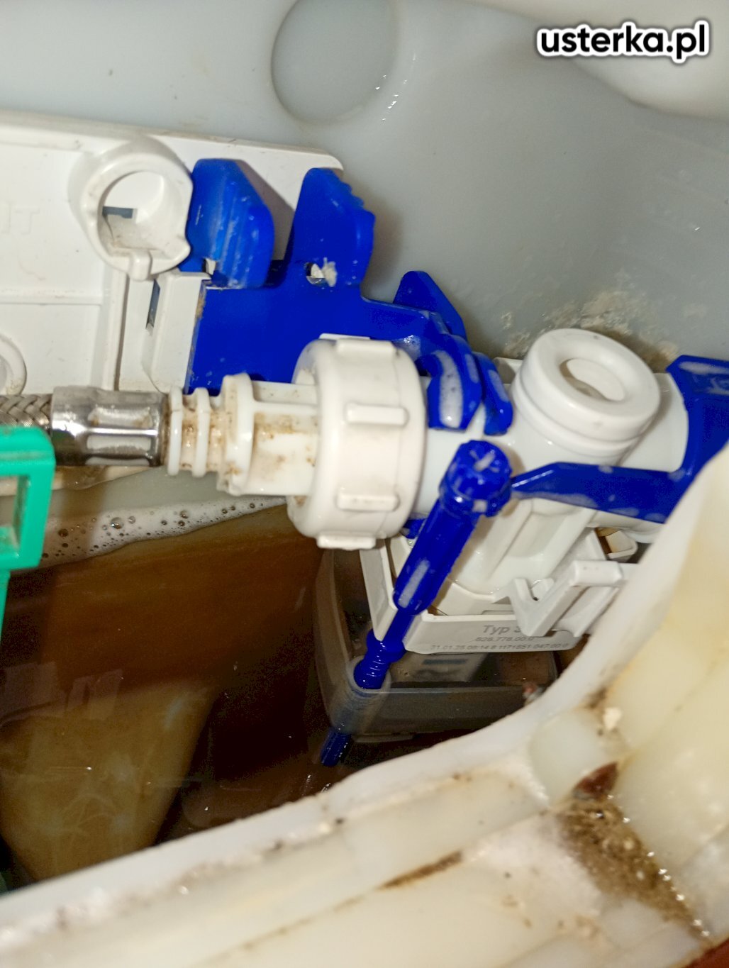 Wymieniono zawór napełniający w spłuczce oraz baterię umywalkową. Do montażu użyto wężyków z poprzedniej baterii, ponieważ nowe okazały się za krótkie. Wężyki były w dobrym stanie, gdyż wcześniejsza wymiana baterii wynikała z uszkodzenia mechanicznego rączki, a nie zużycia.