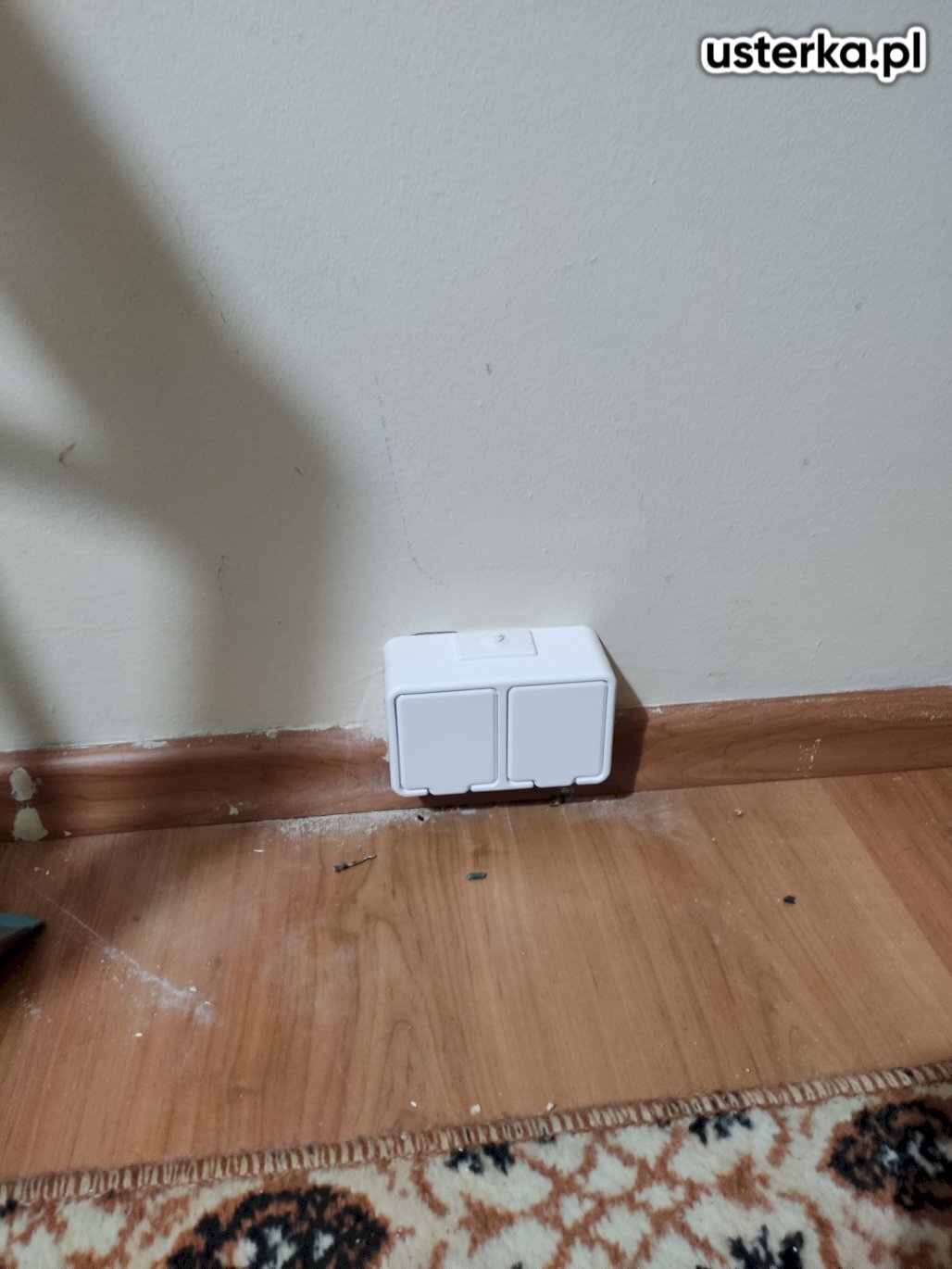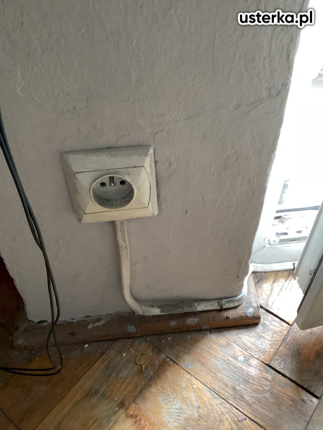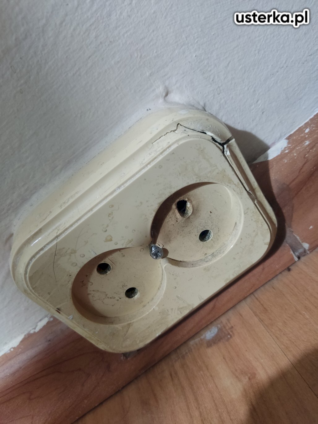 Zdemontowano stare, uszkodzone gniazdka i zamontowano nowe. Dodatkowo podłączono uziemienie do bolców ochronnych, które wcześniej nie było wykonane.