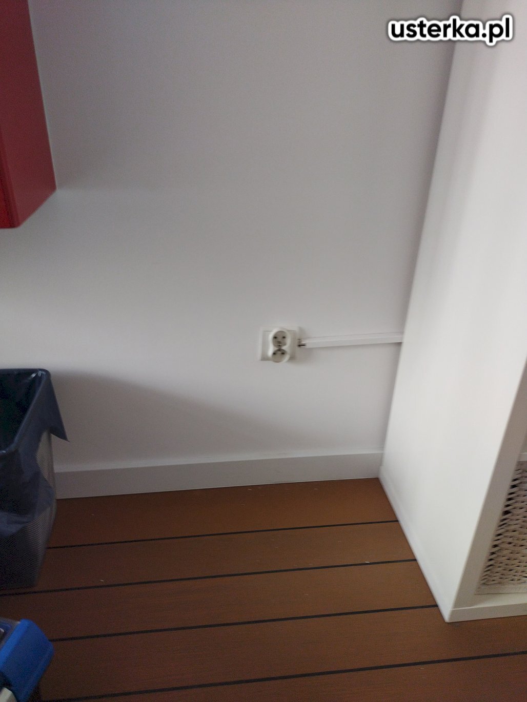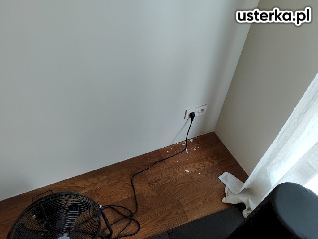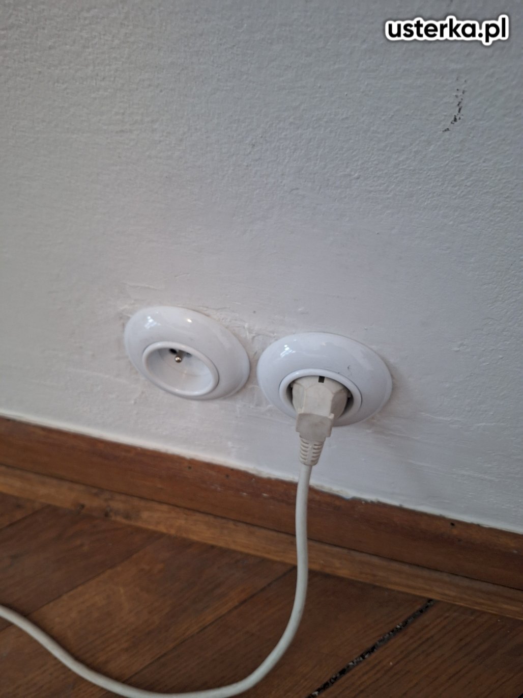 Zdemontowano stare, uszkodzone gniazdka i zamontowano nowe. Dodatkowo podłączono uziemienie do bolców ochronnych, które wcześniej nie było wykonane.