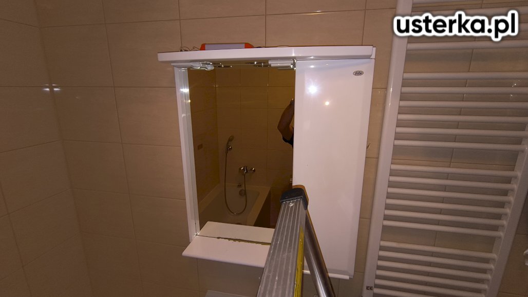 W ramach wizyty zamontowałem szafkę na ścianie oraz sprawdziłem działanie gniazdka i dostęp wody w łazience.