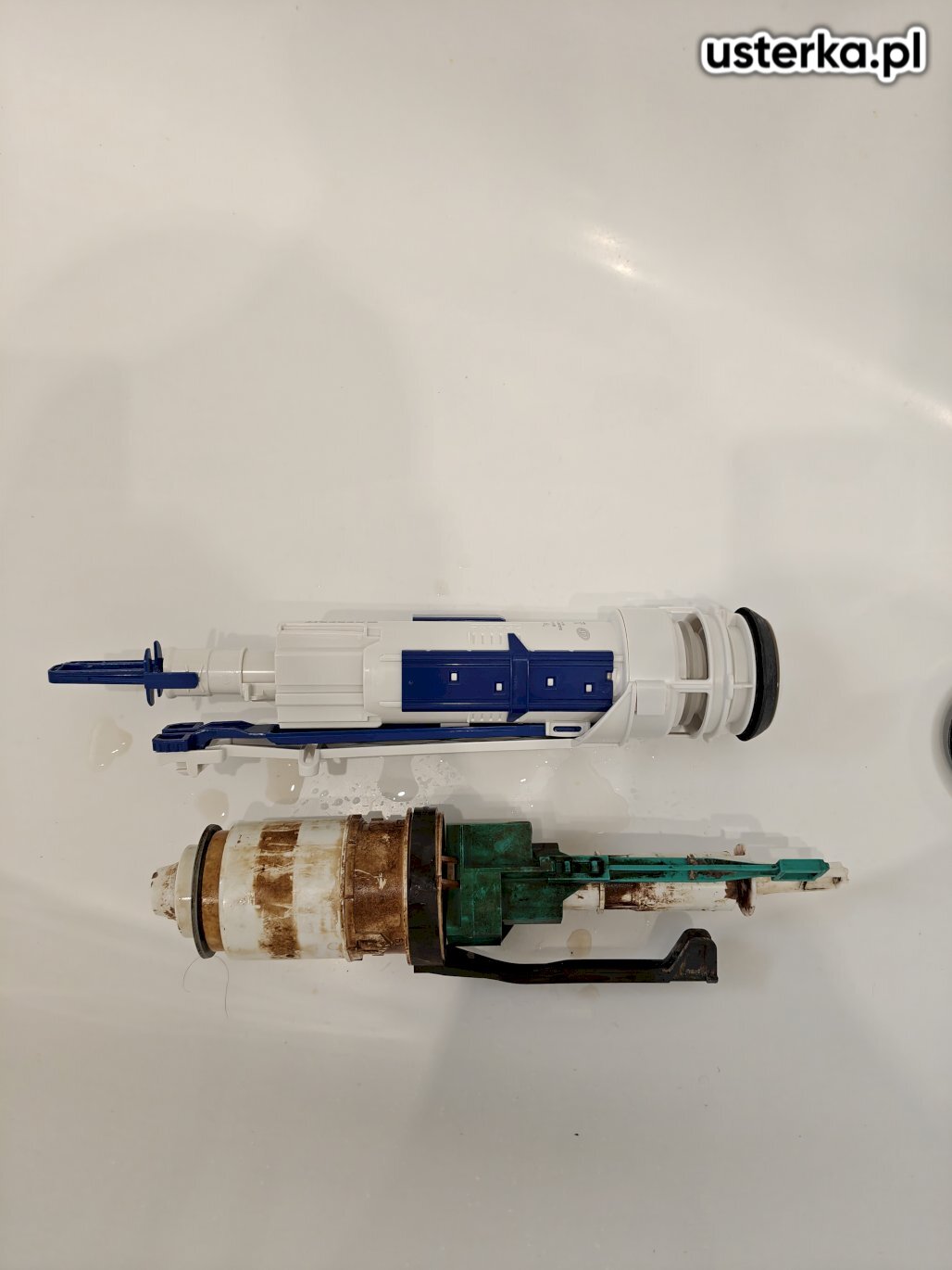 Wymieniono zawór spustowy w spłuczce kompaktowej. Zamknięto dopływ wody, opróżniono zbiornik i zdemontowano zużyty zawór wraz z uszczelkami. Oczyszczono miejsce montażu z osadu i kamienia, a następnie zamontowano nowy zawór, prawidłowo go uszczelniono i wyregulowano mechanizm spłukiwania. Po ponownym uruchomieniu instalacji sprawdzono szczelność oraz poprawność działania spłuczki.