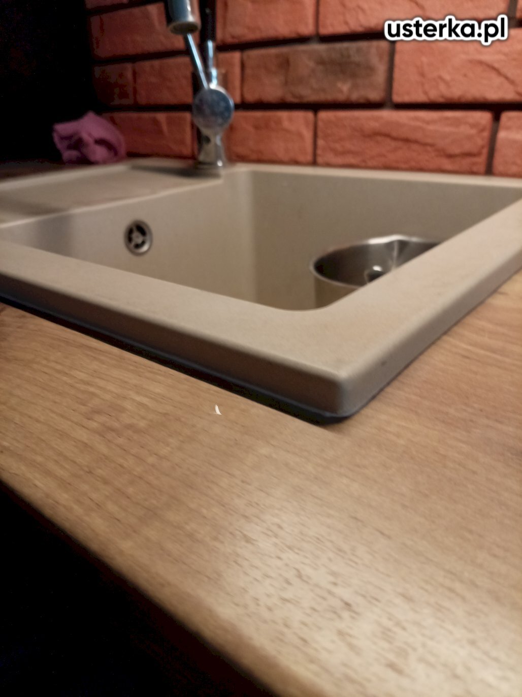 Wykonano ponowny montaż zlewozmywaka oraz prawidłowo osadzono go w blacie. Po montażu zabezpieczono krawędzie silikonem, aby zapobiec przeciekaniu i przenikaniu wilgoci. Sprawdzono stabilność oraz szczelność połączeń. Zlewozmywak został solidnie zamocowany i jest gotowy do użytkowania.