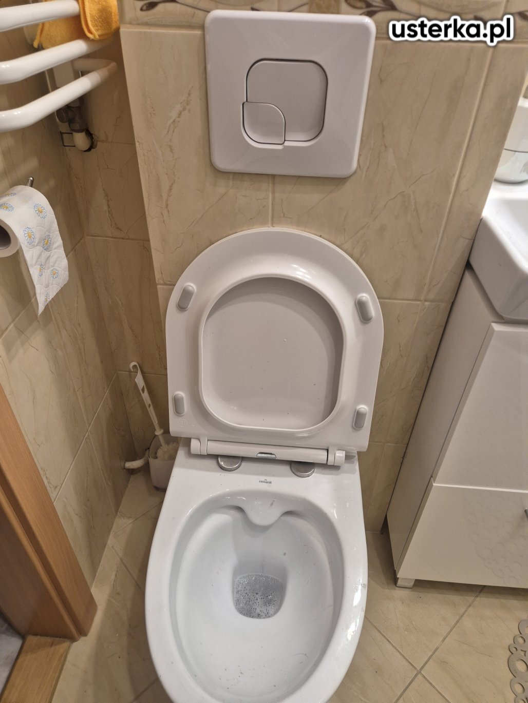 Wymieniono zużyty odpływ oraz uszczelkę mechanizmu spustowego w spłuczce kompaktowej. Układ został sprawdzony — jest szczelny i działa prawidłowo.
